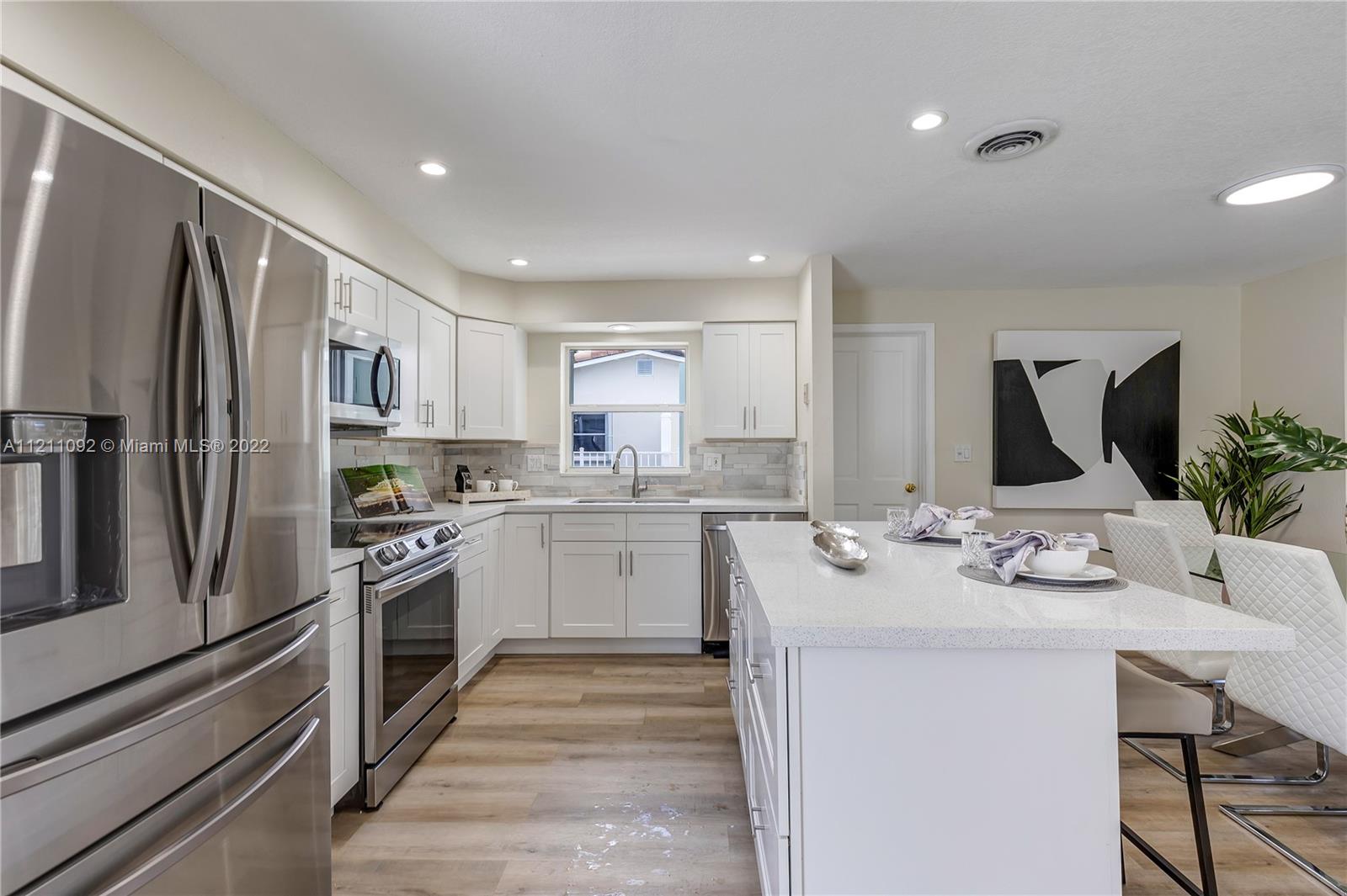 *BACK ON MARKET* Newly renovated 3 bedroom, 2 bath waterfront home. The property features new flooring, a modern kitchen with an island, quartz countertops, and stainless steel appliances, and renovated bathrooms. Freshly painted throughout. New landscaping with irrigation system in place. Property has a 4 ton A/C unit from 2017. Metal roof from 2005. Hurricane shutters included. Separate laundry room. Large sliding glass doors lead out to a big outdoor pool and deck area. The property is located on an approx. 160 ft wide canal with intercoastal and ocean access.