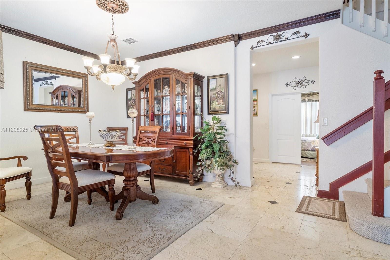 Two-story home with 5 bedrooms and 3 bathrooms in oversized lot with plenty of space for a pool. Located in gated community Nautica in West Miramar. One bedroom and full bathroom are located on 1st floor. Master bedroom w/ seating area. This home features formal dining and living rooms, marble floors throughout the 1st floor, and carpet on the 2nd floor; Kitchen with wood cabinets, granite countertops, and stain steel appliances with a separate breakfast area. Spacious family room and covered area in the backyard, perfect for entertaining. Large laundry room and 3-car garage. Resort-style amenities include 24-hour security, pools, clubhouse, gym, party room, tennis and basketball courts and jogging trails. Close to I-75, shopping, restaurants, parks and the Memorial Hospital. A+ Schools.