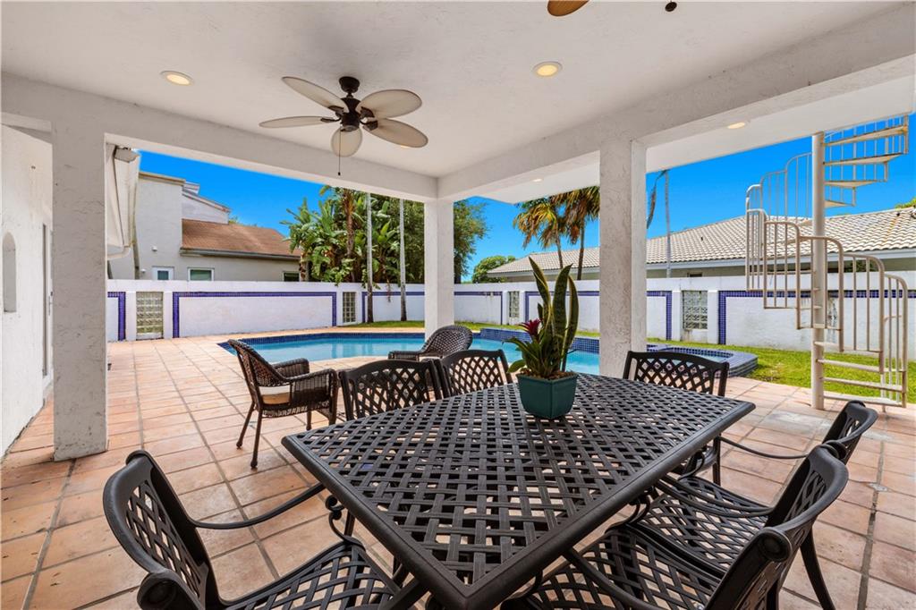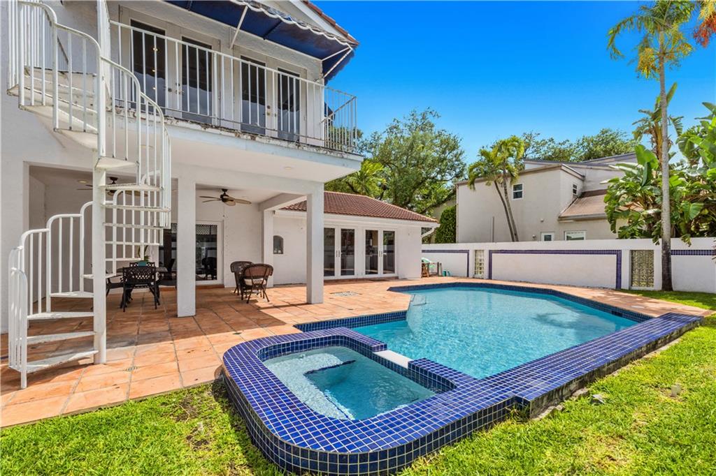 This beautiful home in the highly sought-after community, Lakes of Emerald Hills, is situated on a corner lot and welcomes you with a charming country French/ Mediterranean architecture. Incredible vaulted ceilings and many windows bringing in ample natural light! The country-style gourmet kitchen leads you to the tranquil fenced-in backyard with a private heated pool/ spa. Downstairs primary bedroom with seating area and walk-in closet. Spacious bedrooms. Upstairs office and large 4th bedroom with spiral staircase off balcony leading to the pool. Converted garage - now a large bonus room with bar. Shed on side yard and tool workbench area off of bonus room. Hurricane impact windows/ doors and shutters. 3 Zone A/C. Large driveway. Steps from the community park, playground, and dog park.