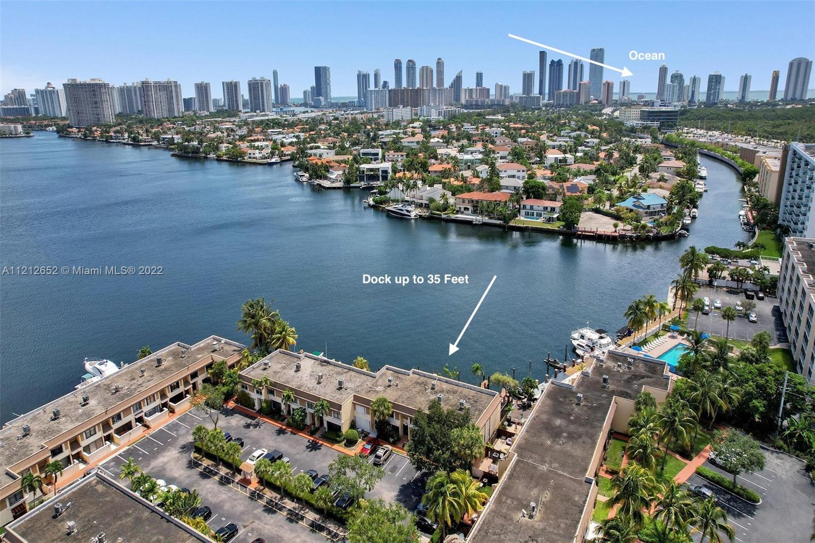 Eastern Shores Located directly on Maule Lake - connects to the Intracoastal Waterway and has Ocean Access with no fixed bridges. Only 41 units in this community. Unit is very spacious - 1710 sq feet. Very large walk in closets. All new appliances. Dock can accommodate a boat of up to a 35 ft boat. Unit is in clean and move in condition. Eastern Shores is centrally located - 20 minutes to Miami International Airport and 20 minutes to Fort Lauderdale Airport. Close to Aventura Mall or Bal Harbor Shoppes. Walking distance to restaurants, shopping and Oleta Park