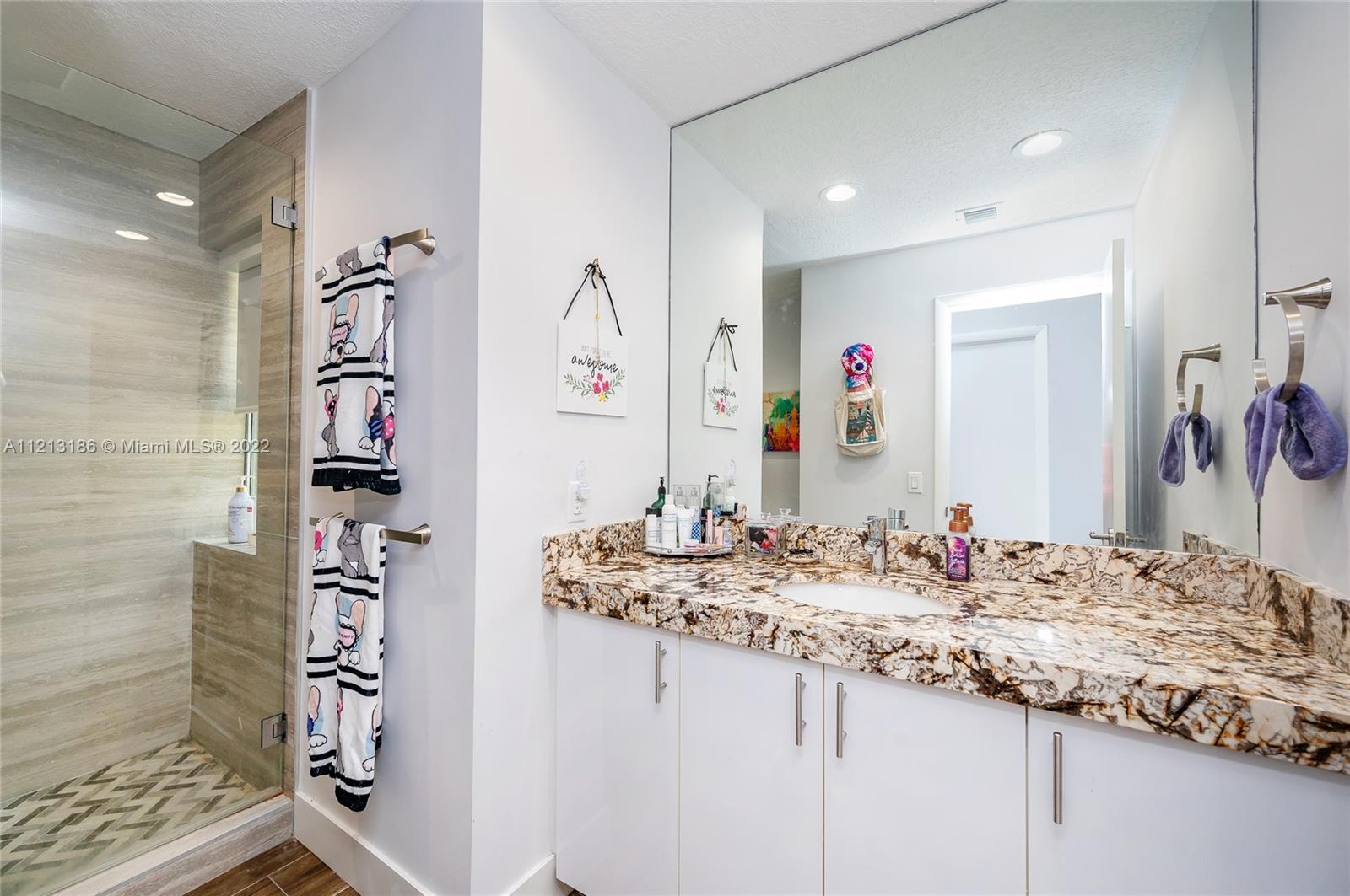 Gorgeous house in Chelsea at Ivanhoe, Davie, FL. 4 bed / 2.5 Bath. 2 car garage. Renovated two story home. Modern glass railing in stairs. Remodeled kitchen and bathrooms. Marble and Ceramic floors. Den downstairs perfect for private home office. Open layout kitchen, granite thick slab countertops, white modern cabinetry and SS appliances. Double height sunbathed bright living room. Renovated bathrooms with separate oval tub and shower in master bathroom. Large Master Bedroom. Walk-in closet. All 4 bedrooms upstairs. Hurricane accordion shutters throughout. Corner Lot, private large fenced yard perfect for BBQ and outdoor space. Gated community with pool. Excellent A graded school district. 2 minutes from Publix grocery, gas station, shopping plaza. 3 minutes to I-75 hwy. Best location.