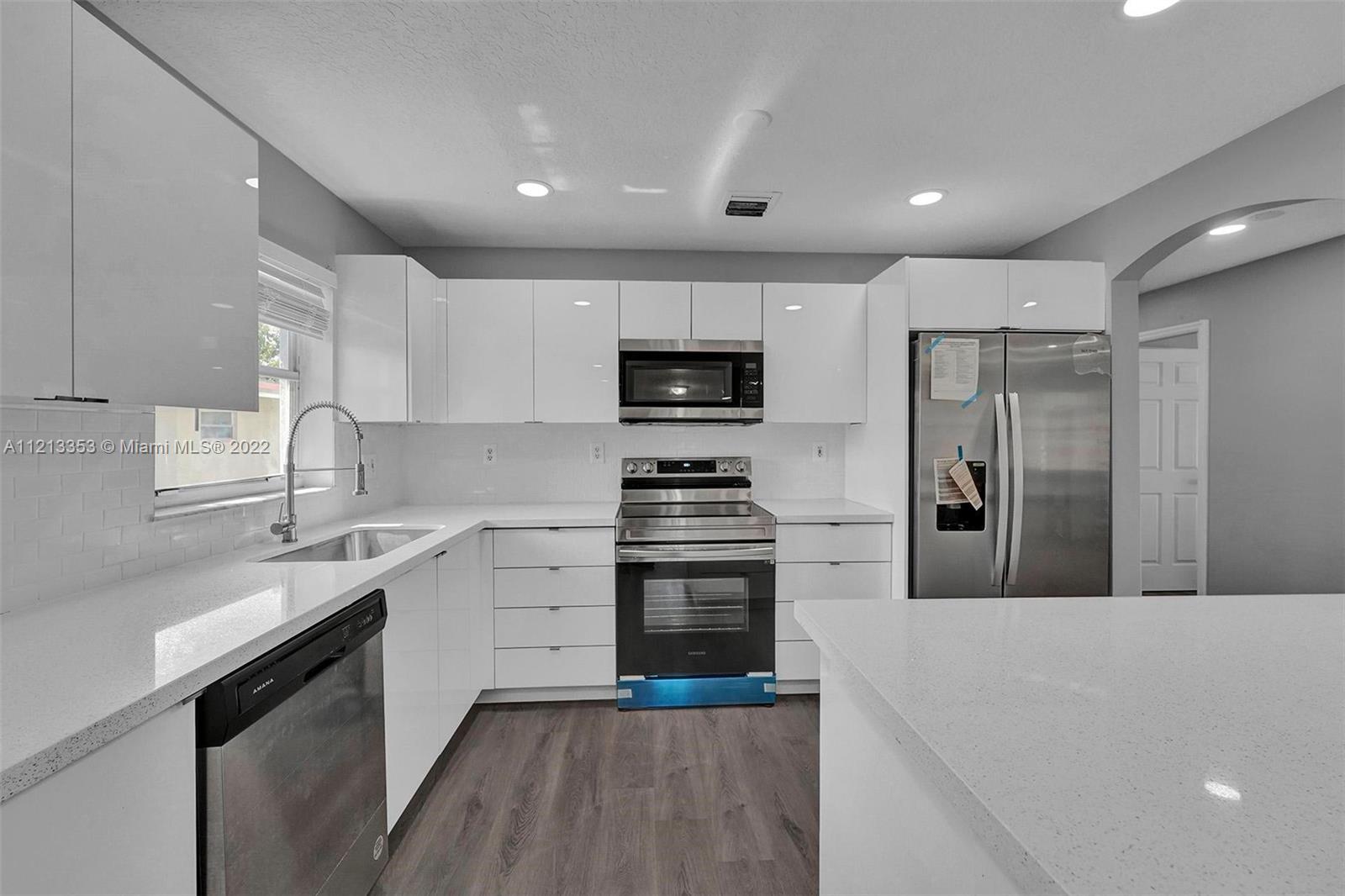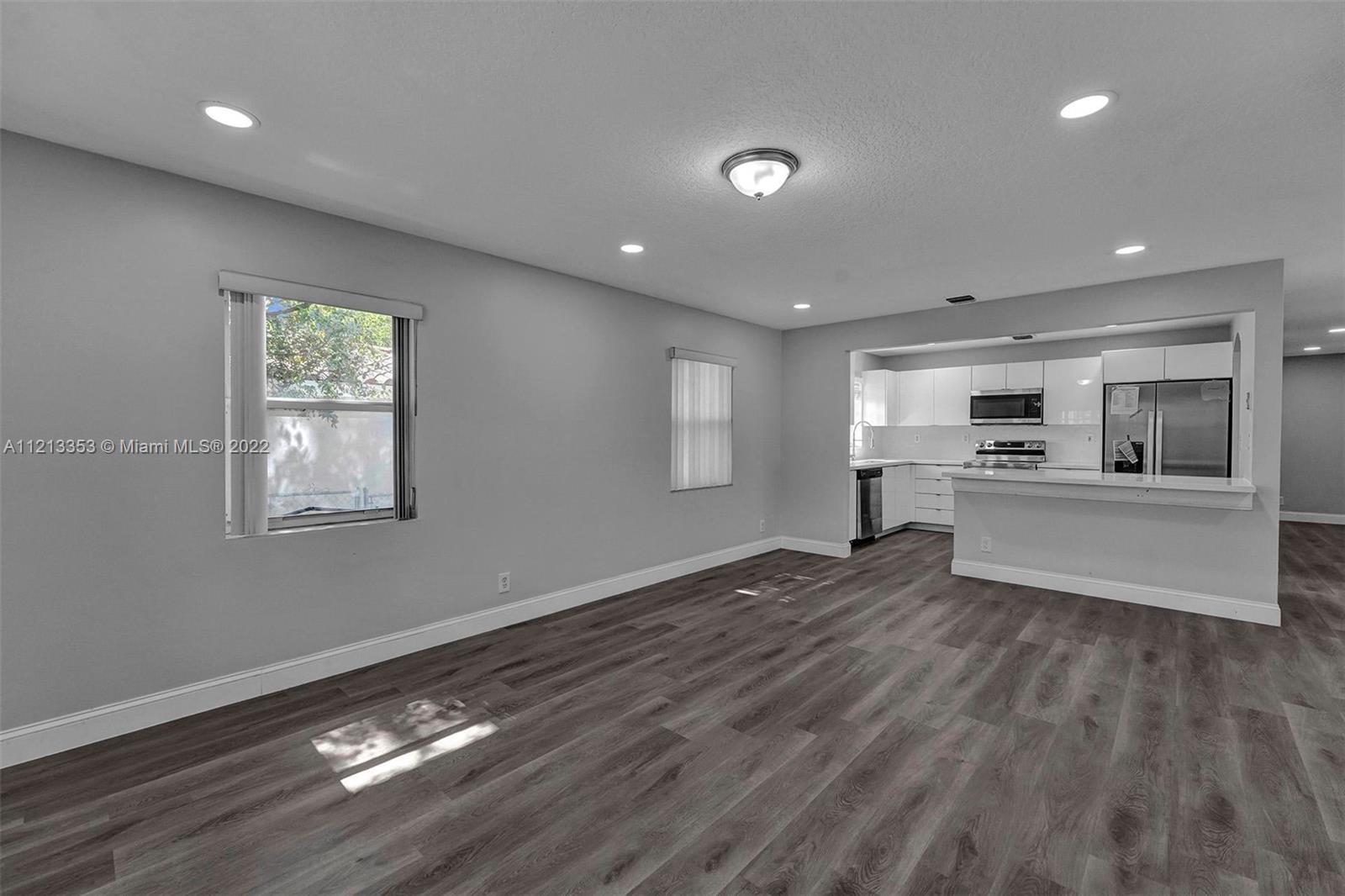 Beautiful house in the heart of Hallandale Beach, over 1500 sf Three bedroom, two full baths with sperate laundry room. This house is fully renovated with open kitchen stainless steel appliance, dinning rom area, open living room space, new hardwood floor, renovated bath's, hardwood floors. Master bedroom have full bath with shower and huge closet with access to huge back yard. This house close to all shopping area, restaurants and great schools.