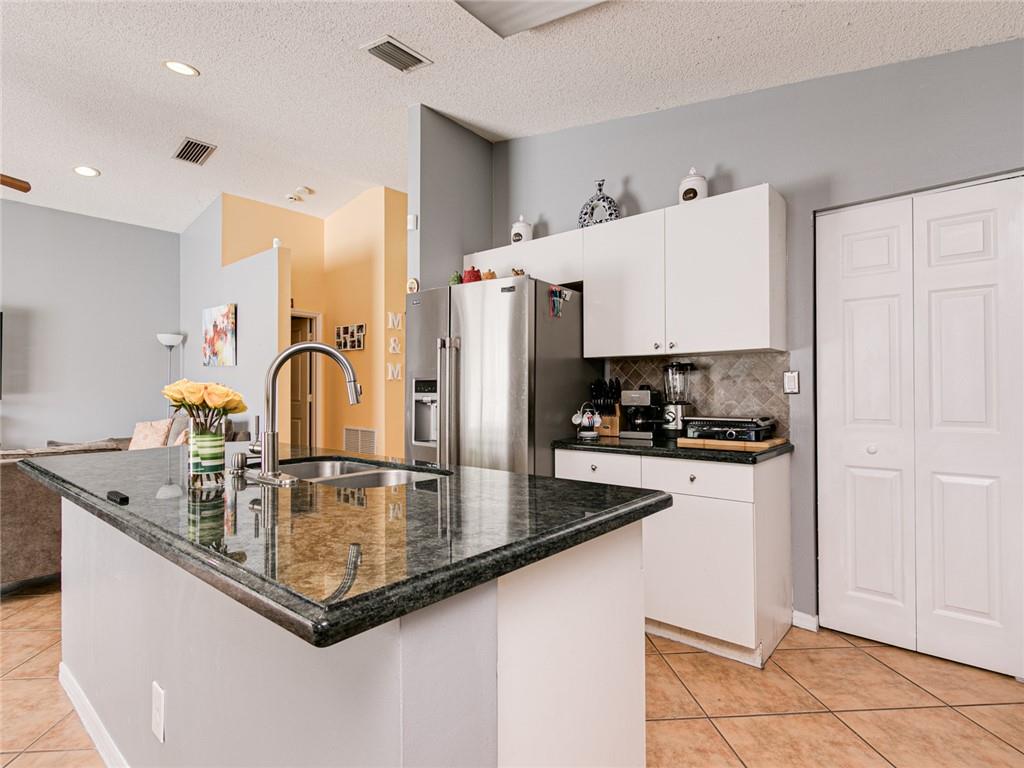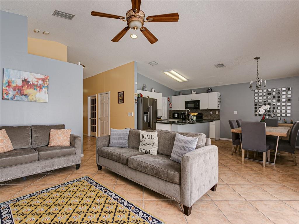 Tranquil lake views & stunning sunsets in this 3 bed/2 bath pool home! Located in the highly desirable gated community of Avalon. Features: Spacious open floorplan, vaulted ceilings, island kitchen w/ granite countertops, newer SS refrigerator & dishwasher, tile flooring in living areas, wood laminate floors in bedrooms, master suite has spa like bath w/ separate soaking tub & shower, 1 year new tankless H2O heater & accordion shutters, paver driveway. Fully fenced backyard features free form pool w/ baby fence/gate, long lake views, fruit trees & tropical landscape. Part of garage converted to playroom/den which still provides for ample garage storage for bikes, toys, etc – would be easy for buyer to convert back. Low HOA fee – community features manned guard gate & community pool.