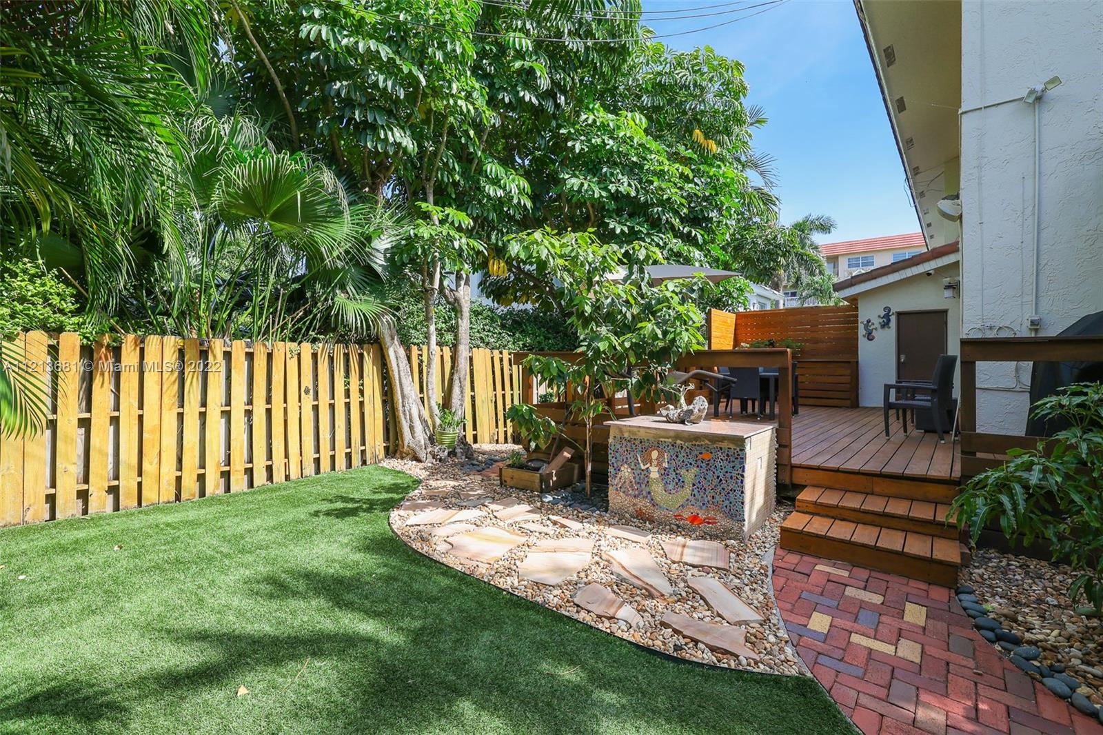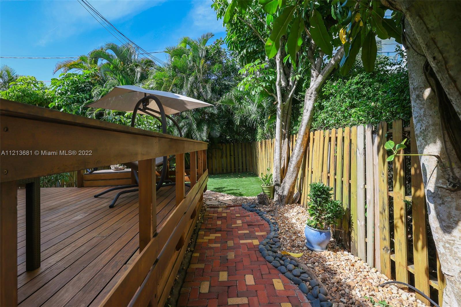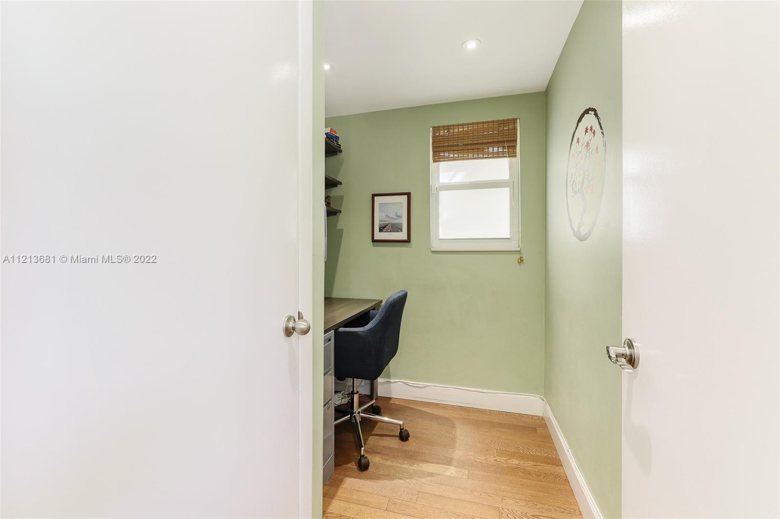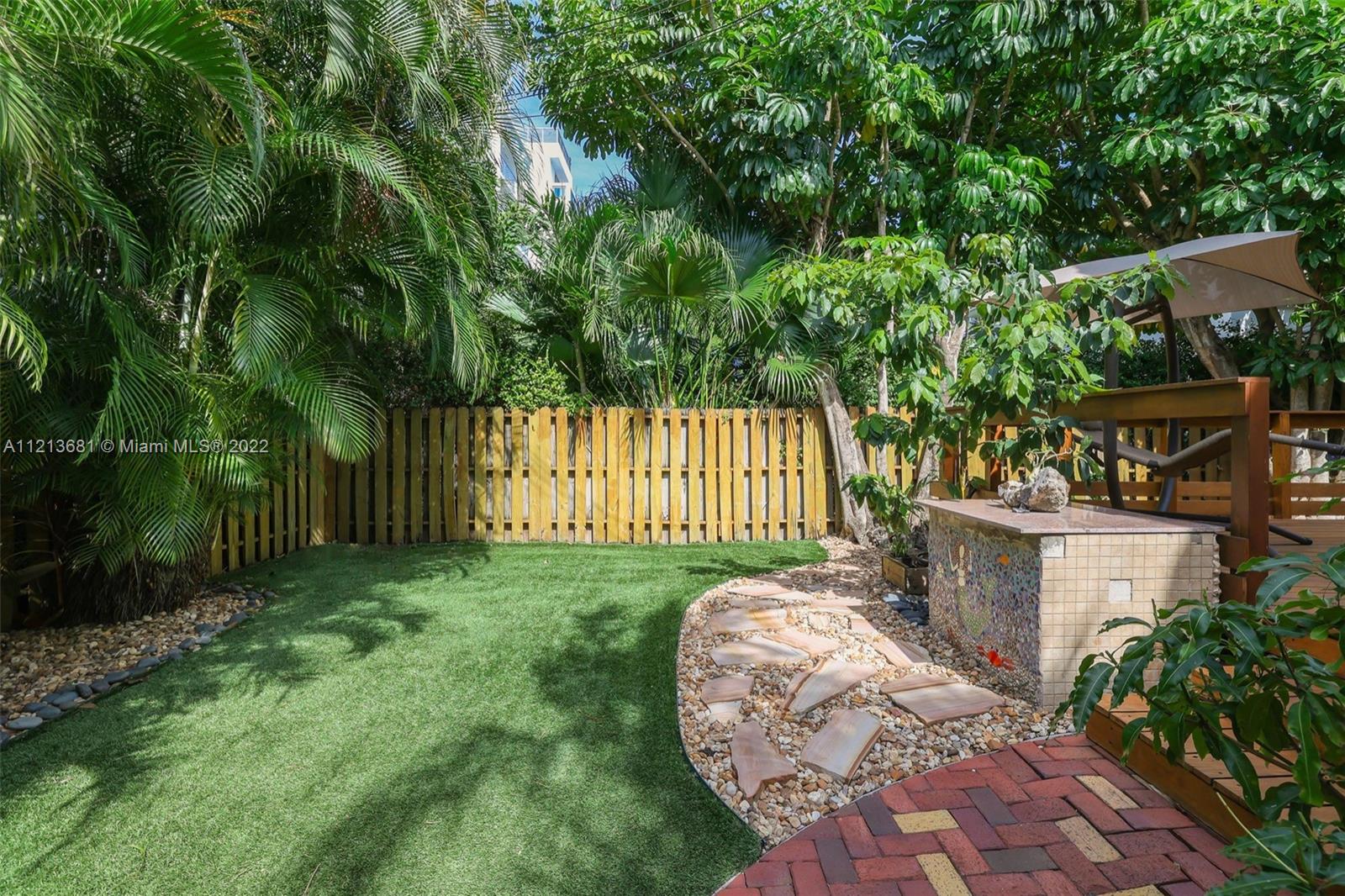 ONE OF A KIND, RARE FIND in highly desirable neighborhood. BACK CORNER away from street. Large 3 bedroom/2.5 bath/small office. Spacious 2 story floor plan. NOT multi-level vertical living. Windows and skylights provide lots of natural light. All hurricane impact windows & doors. Private backyard with direct access to heated pool. Patio features hard wood deck with serene open space and fruit trees. Abundant storage and walk-in closets; including large attic storage. 2 private parking spaces in spacious parking lot, directly in front of each unit with plenty of extra parking for guests and/or additional cars (unique for this area). Only 8 townhouses on entire 3 lot property. Short walk to beaches, places of worship (Young Israel/The Shul) restaurants, park, A-rated K-8 school and more.