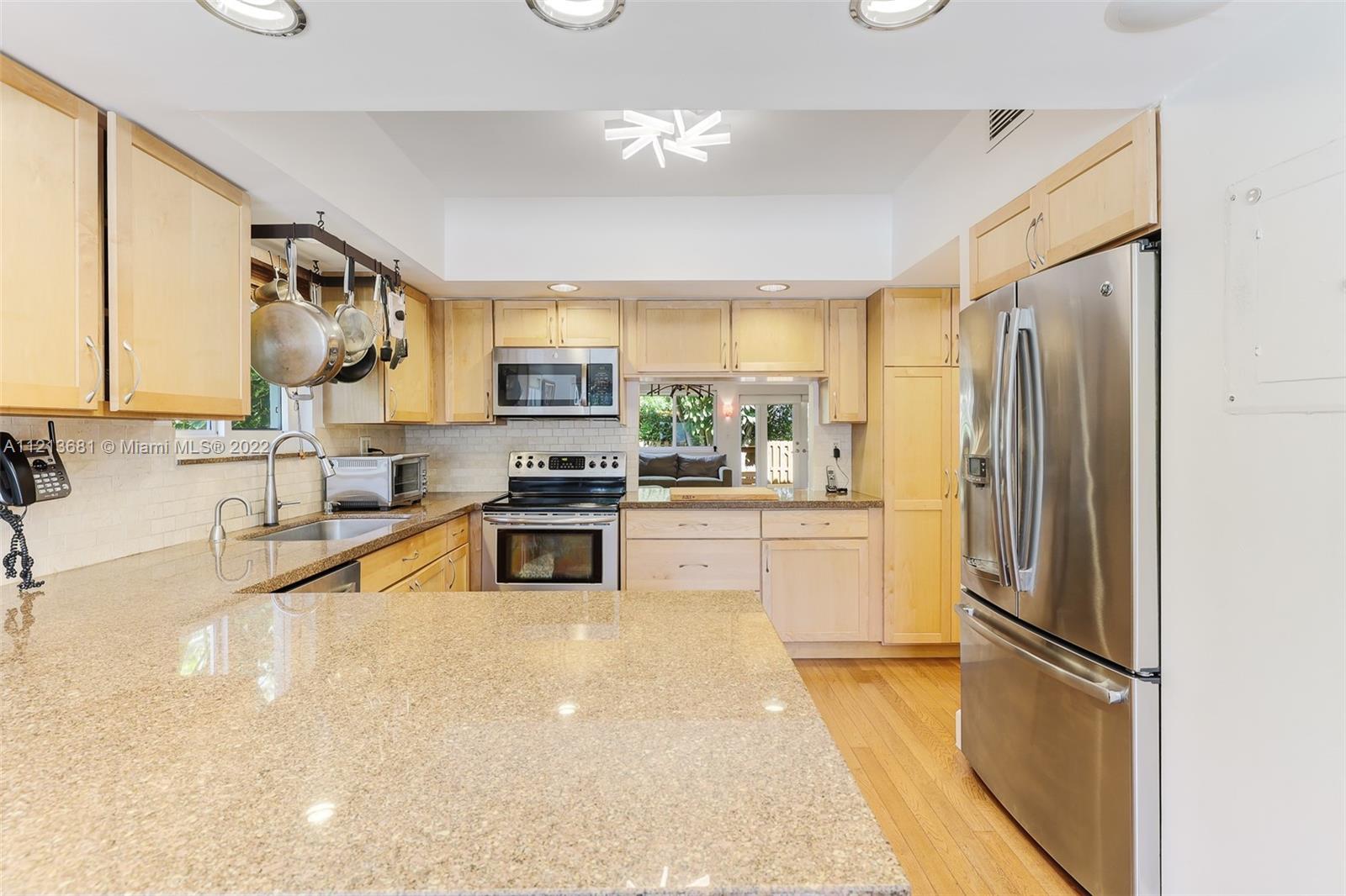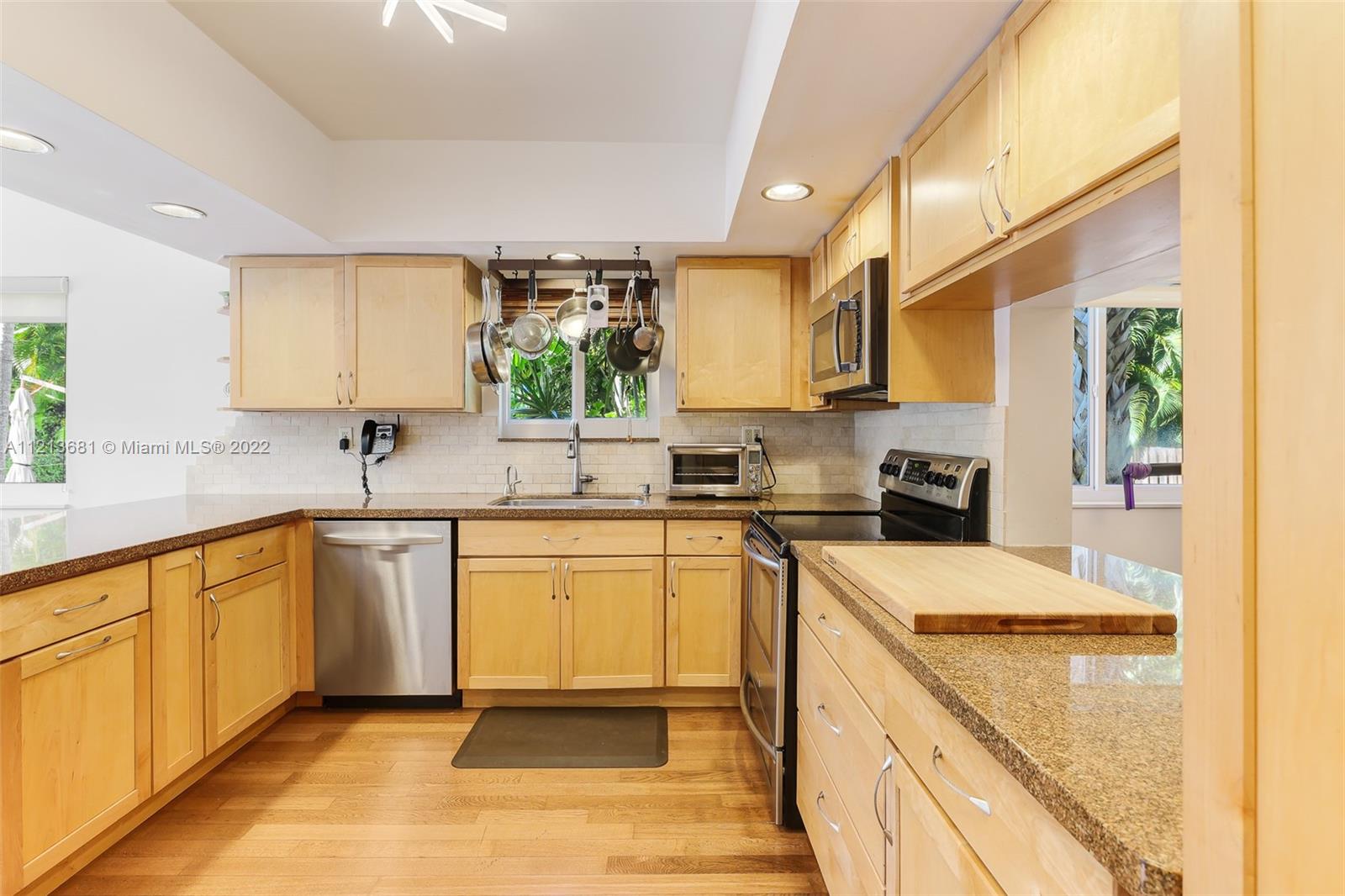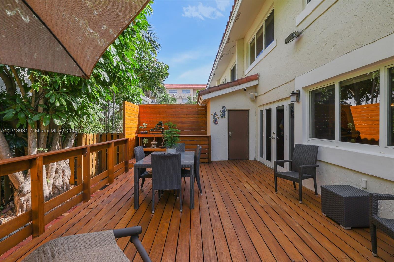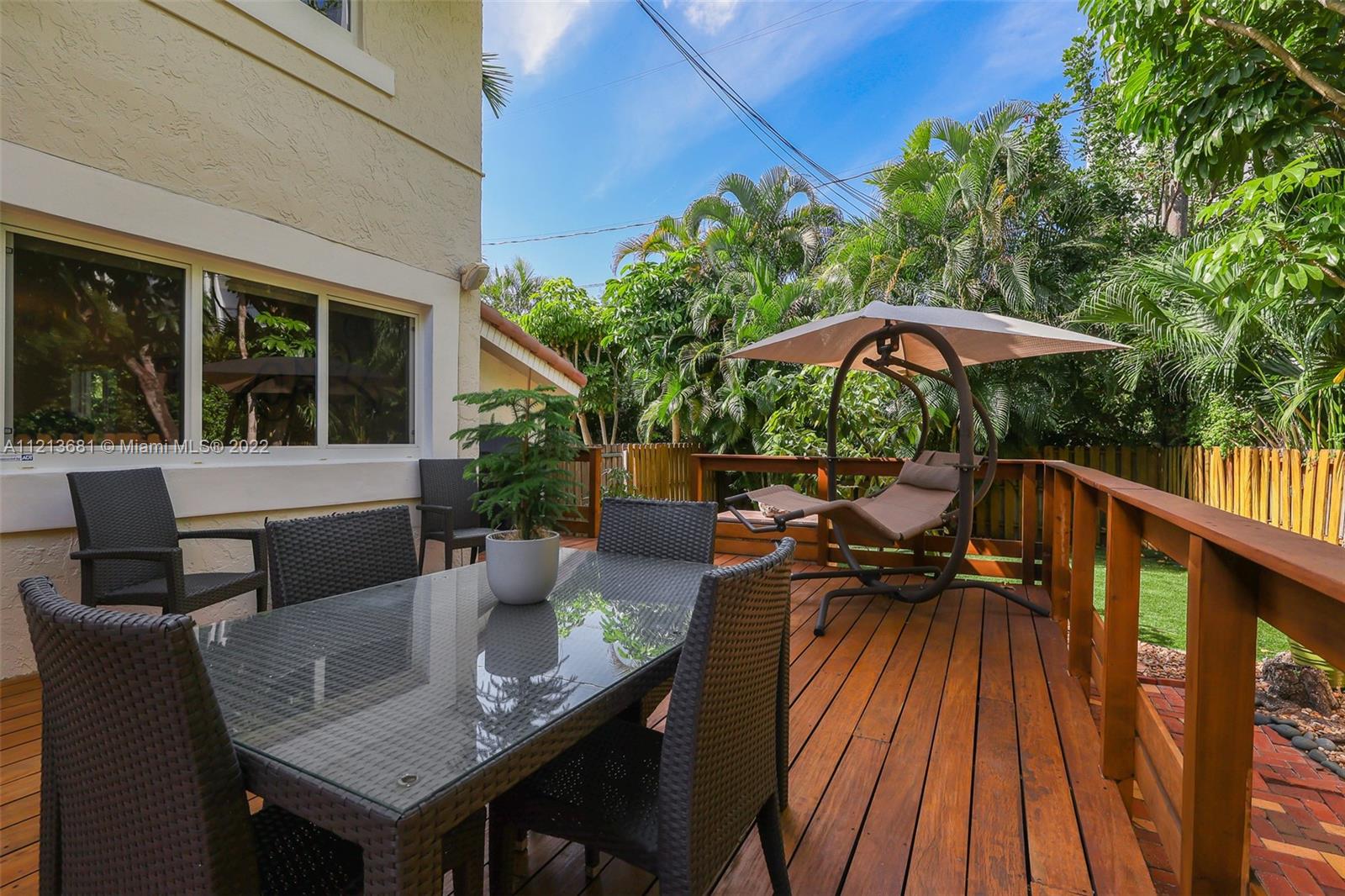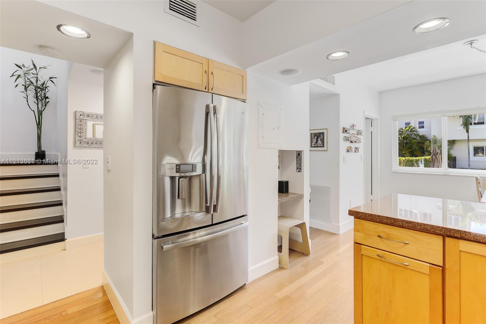 ONE OF A KIND, RARE FIND in highly desirable neighborhood. BACK CORNER away from street. Large 3 bedroom/2.5 bath/small office. Spacious 2 story floor plan. NOT multi-level vertical living. Windows and skylights provide lots of natural light. All hurricane impact windows & doors. Private backyard with direct access to heated pool. Patio features hard wood deck with serene open space and fruit trees. Abundant storage and walk-in closets; including large attic storage. 2 private parking spaces in spacious parking lot, directly in front of each unit with plenty of extra parking for guests and/or additional cars (unique for this area). Only 8 townhouses on entire 3 lot property. Short walk to beaches, places of worship (Young Israel/The Shul) restaurants, park, A-rated K-8 school and more.