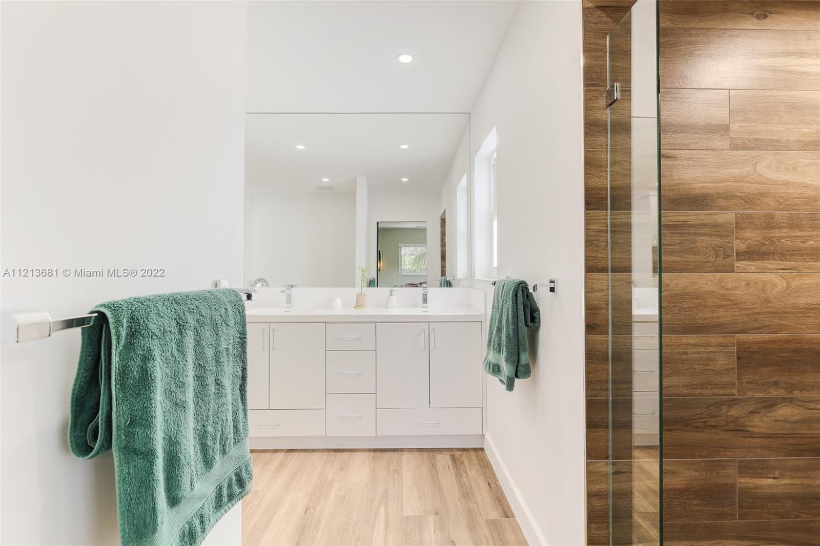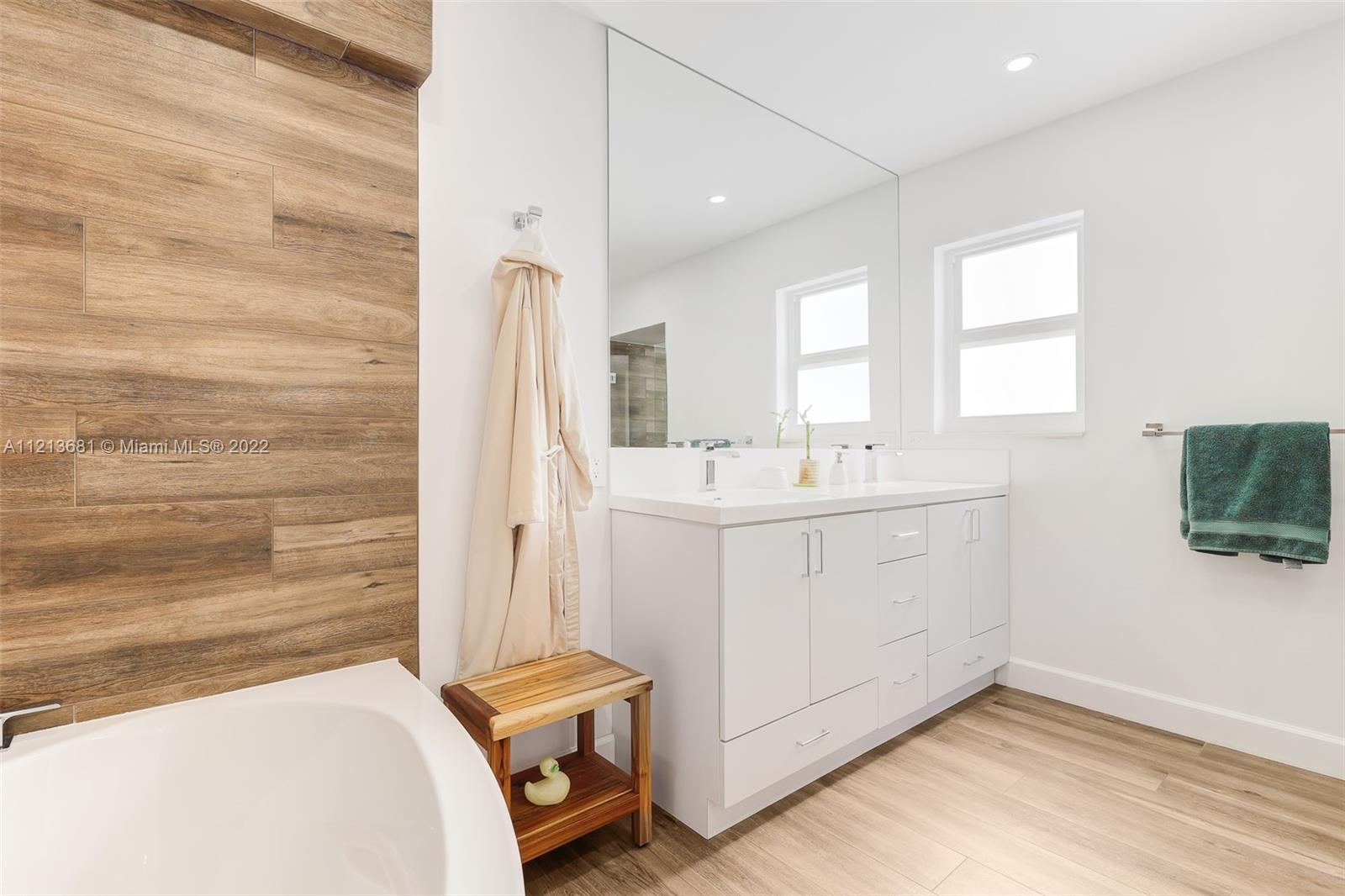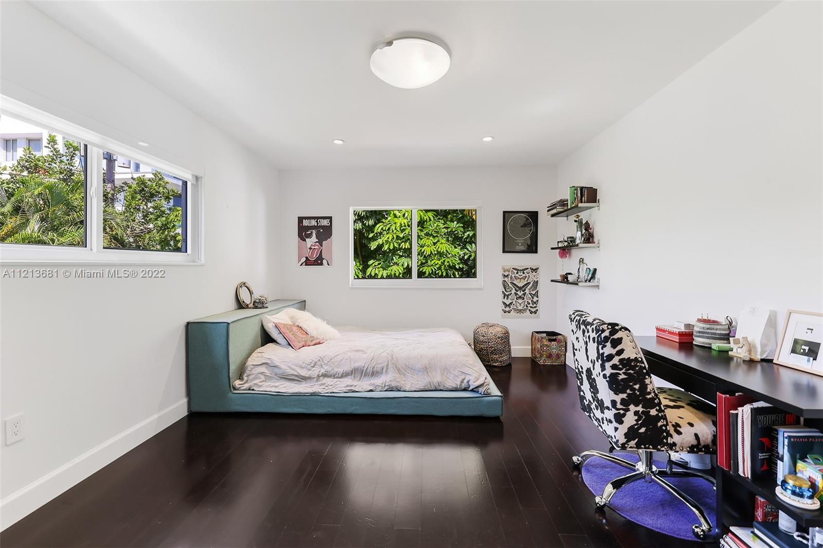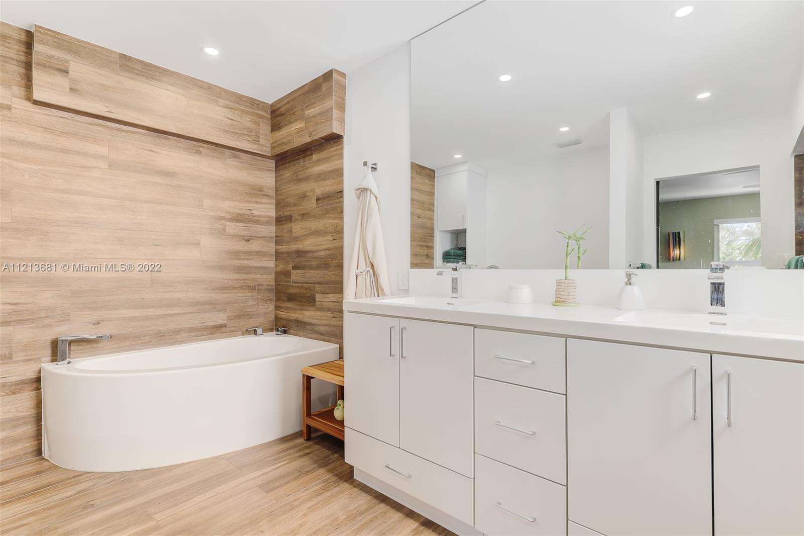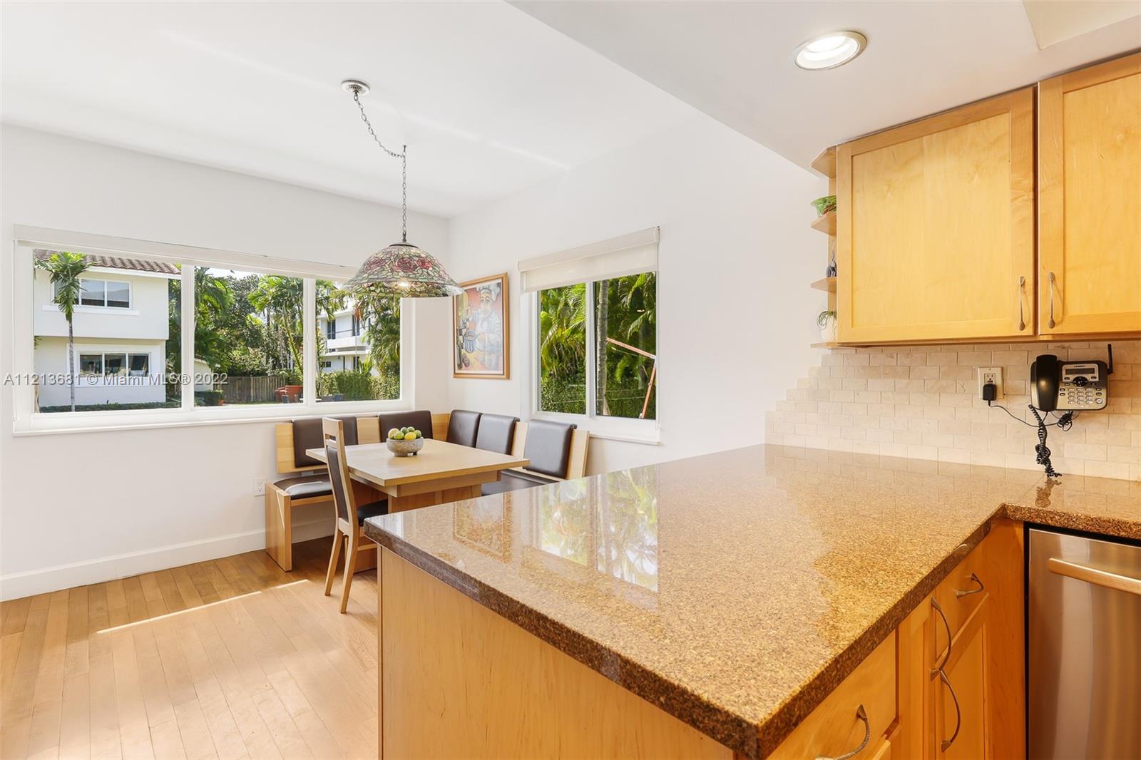 ONE OF A KIND, RARE FIND in highly desirable neighborhood. BACK CORNER away from street. Large 3 bedroom/2.5 bath/small office. Spacious 2 story floor plan. NOT multi-level vertical living. Windows and skylights provide lots of natural light. All hurricane impact windows & doors. Private backyard with direct access to heated pool. Patio features hard wood deck with serene open space and fruit trees. Abundant storage and walk-in closets; including large attic storage. 2 private parking spaces in spacious parking lot, directly in front of each unit with plenty of extra parking for guests and/or additional cars (unique for this area). Only 8 townhouses on entire 3 lot property. Short walk to beaches, places of worship (Young Israel/The Shul) restaurants, park, A-rated K-8 school and more.