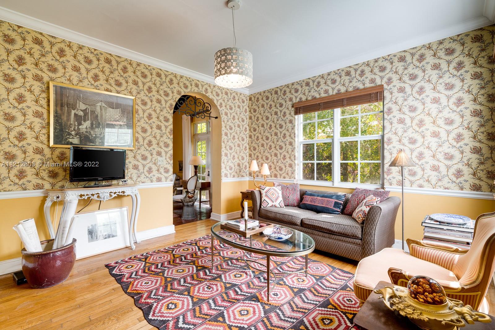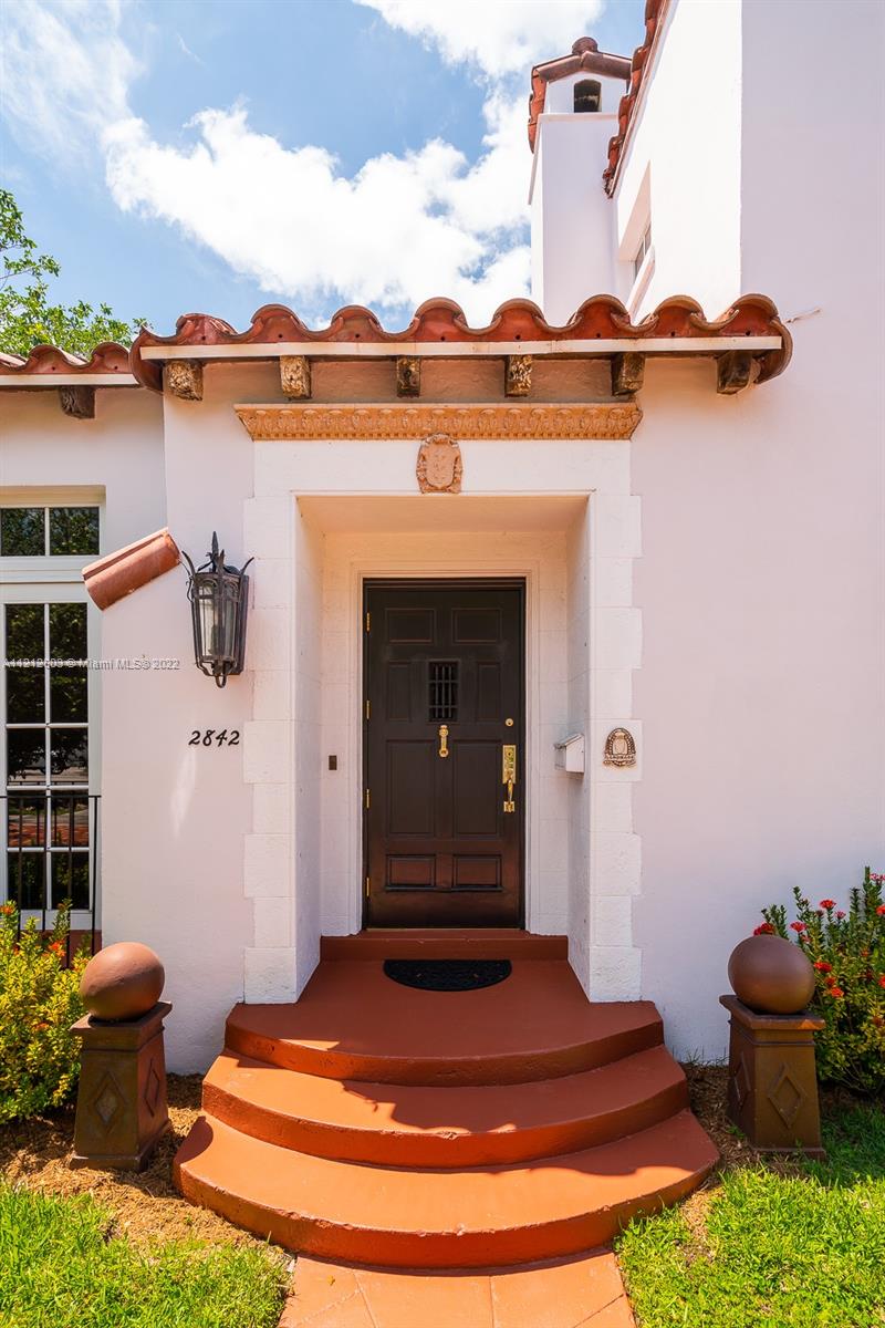 Turn-key, classic 1920's Old Spanish villa within walking distance to the Biltmore Hotel, Salvadore Park and the Venetian Pool. Historically designated landmark home, originally designed by architect, Frank Wyatt Woods. An incredibly charming 3/2.5 home on a manicured 9,450 sq. ft. lot. Vintage charm is enhanced by tasteful renovation, with original details preserved. Grand formal living room with cathedral ceiling, wood burning fireplace with L’Antiquario Antique Encaustic Tile from La Louvier, Belgium, circa 1860-1900, formal dining room, eat-in kitchen, impact windows/doors, butler’s pantry, carport, garage and a laundry room. 1/1.5 on the 1st floor, 2 / 1 on the 2nd floor. Rooftop terrace with incredible view of the Biltmore Hotel tower, a perfect spot to watch 4th of July fireworks!