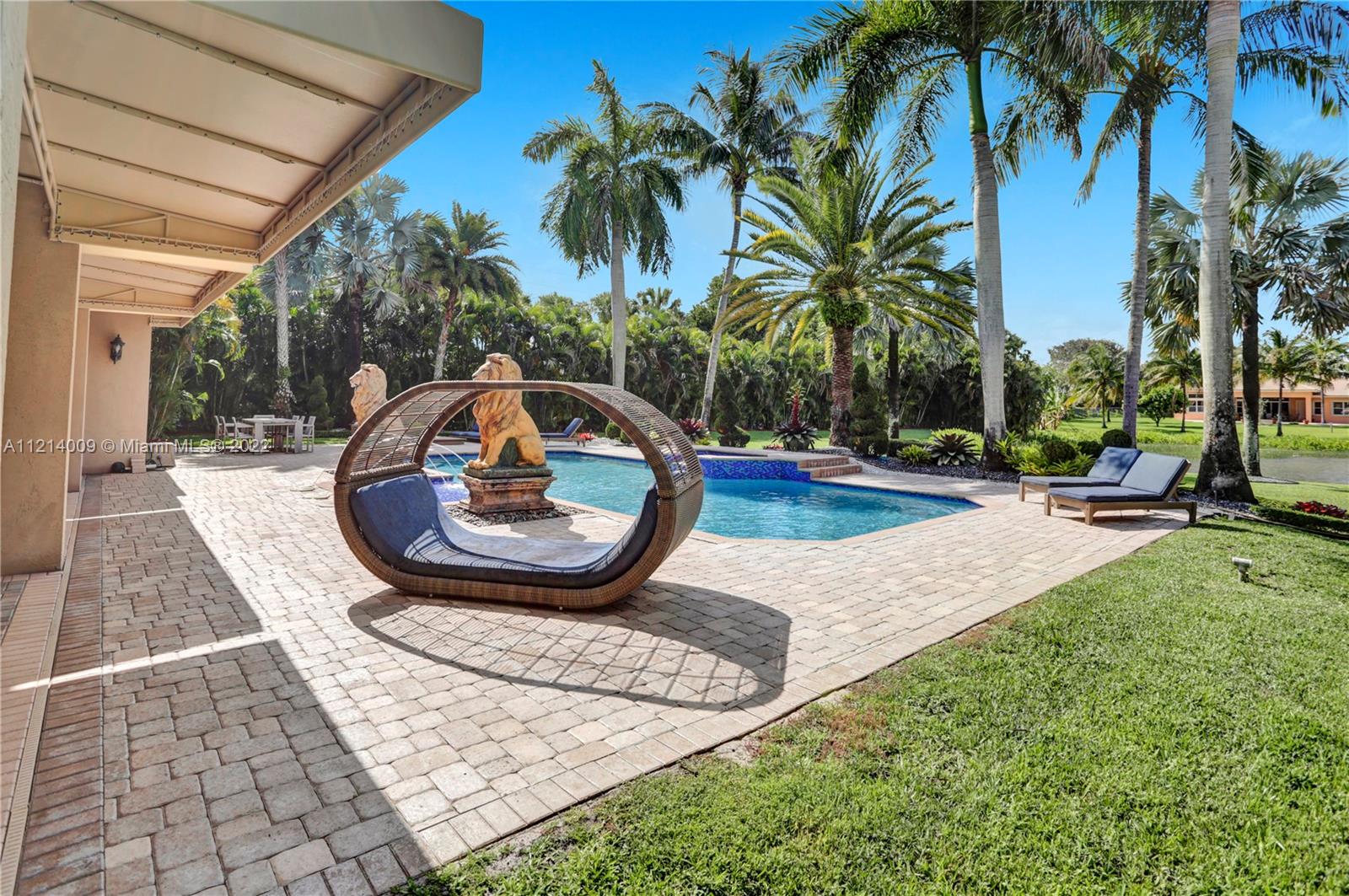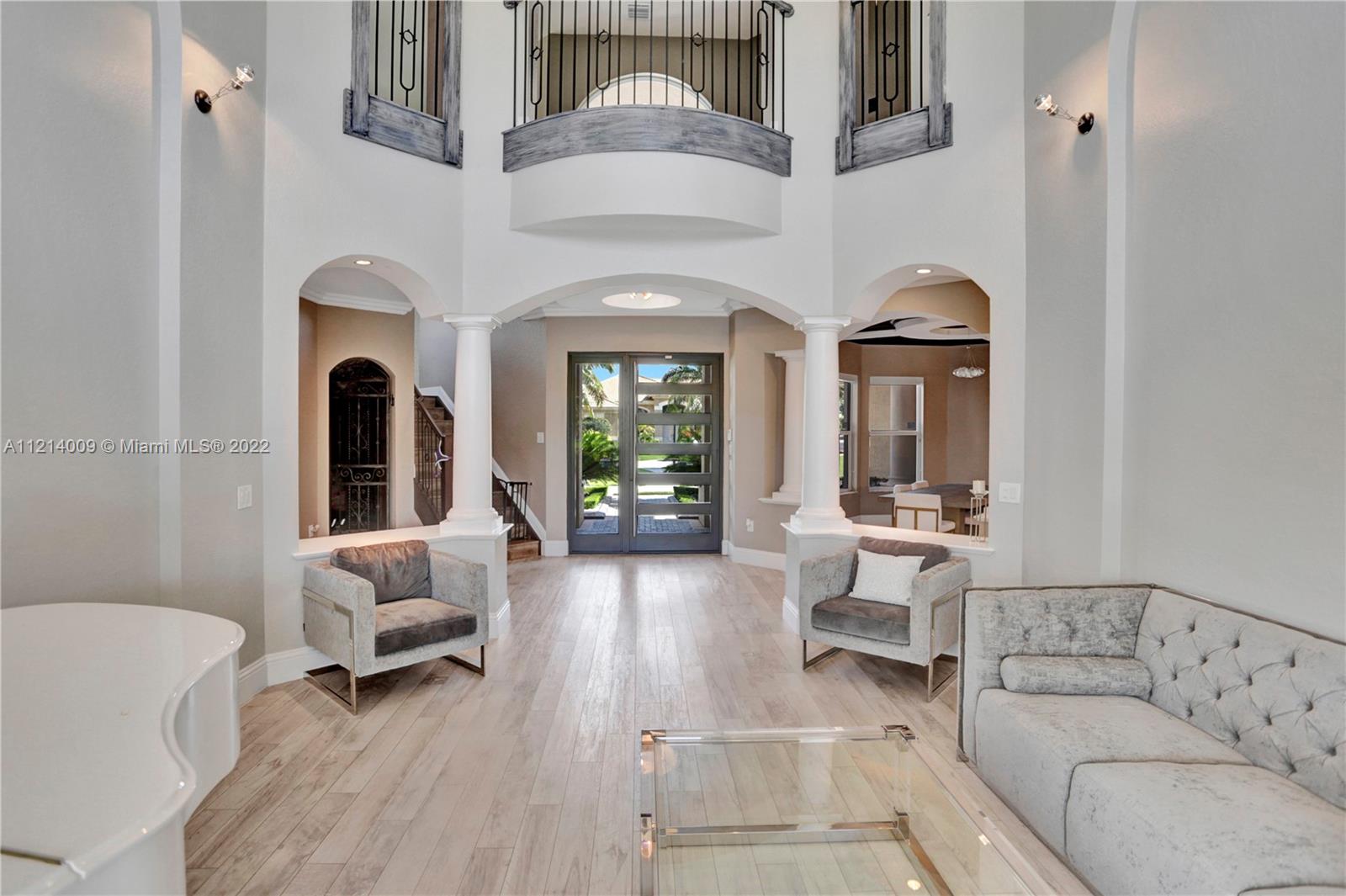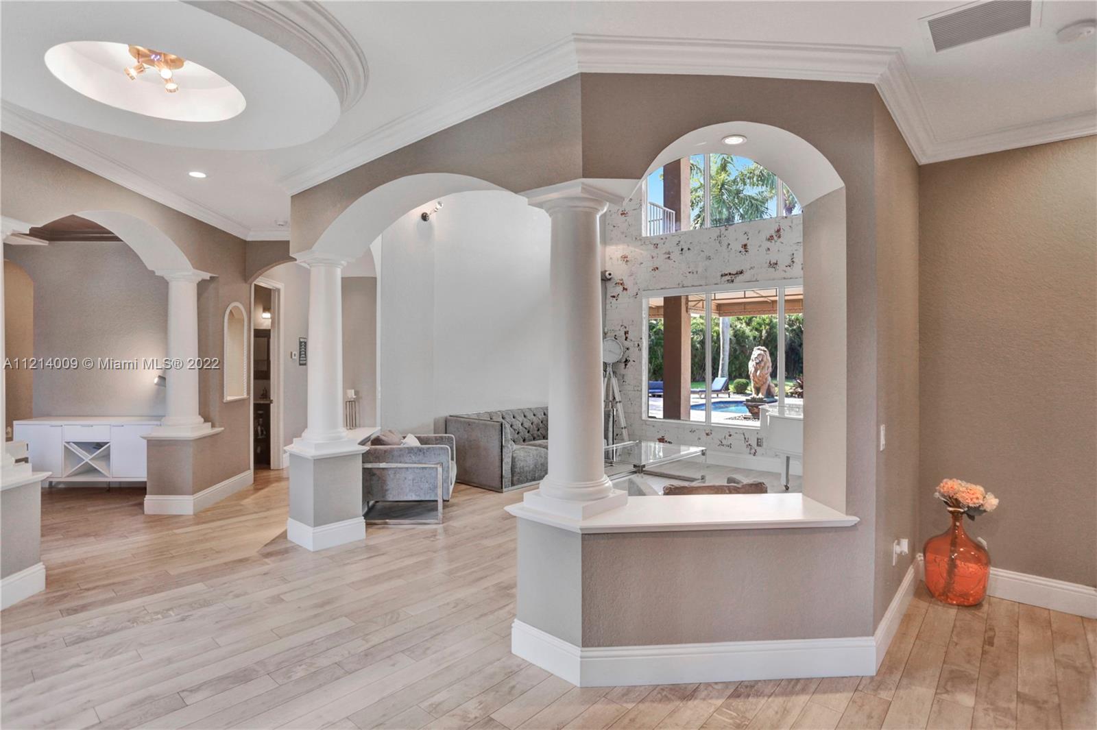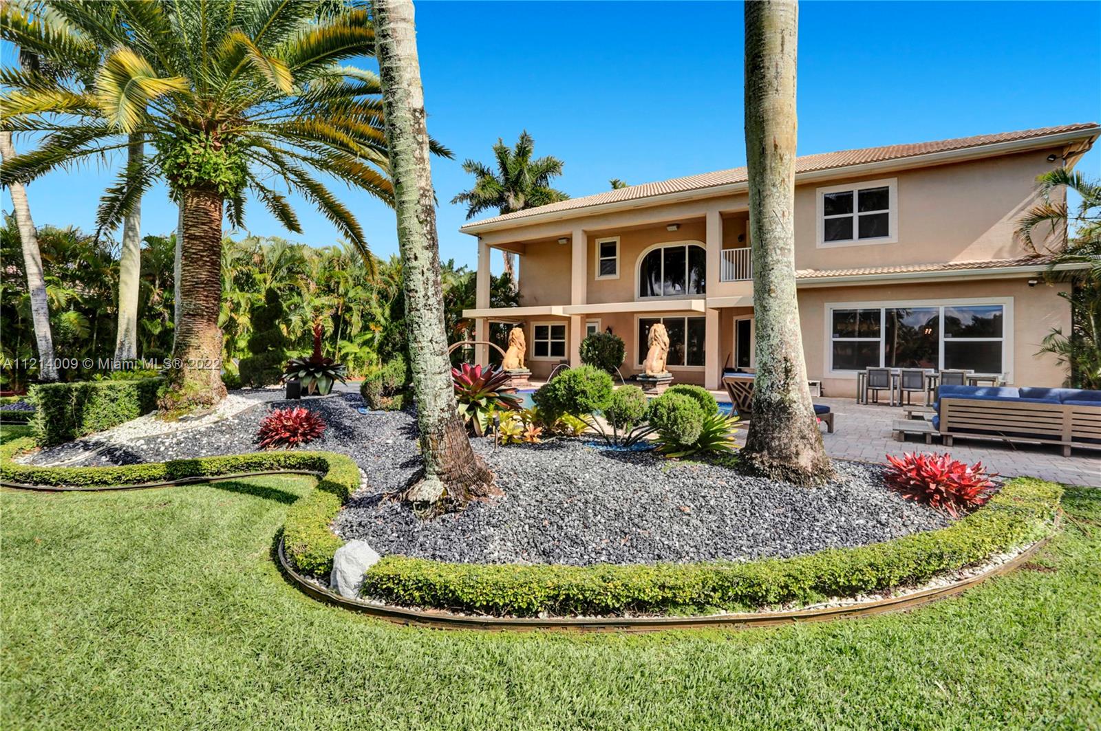 Welcome to this Majestic 6 bed/4.5 bath pool home in the gated Community of Riverstone in Davie. This gorgeous updated home sits on one of the largest culde- sac lots. This exquisite home comes with upgraded floors, cabinets and an amazing custom kitchen featuring Wolf Appliances; sub-zero refrigerator; and a beautiful island, the interior features exceptional living and family room space, with a formal dining room and an office. Looking for backyard space to entertain then come see this very private lot. The master suite features his and hers bathrooms an oversized sitting area, his and hers walk in closets Over 100k in newly installed Impact windows throughout the house. Enjoy this very Tranquil private back yard with Lush landscaping