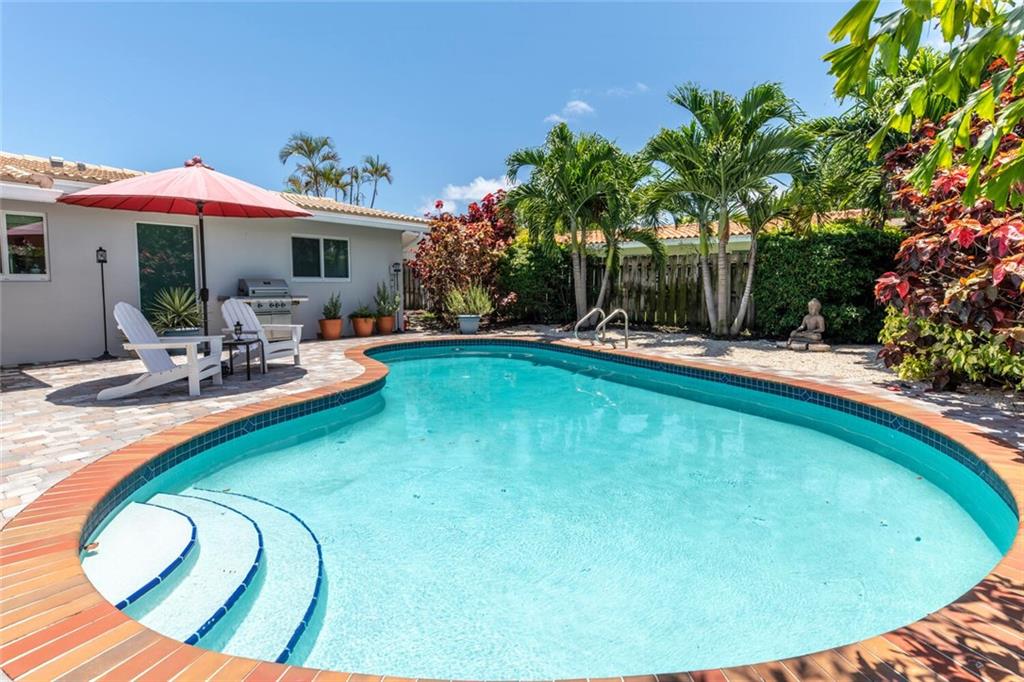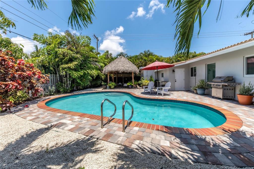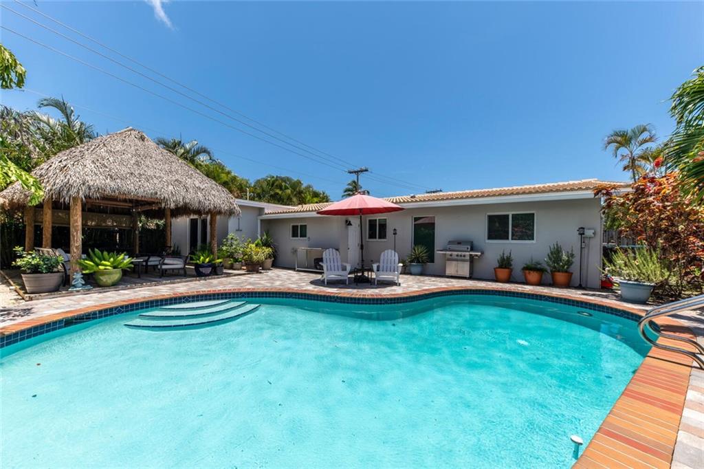 THIS 4/2 POOL HAS AN OPEN AND INVITING LIVING SPACE THAT IS IDEAL FOR FAMILY AND ENTERTAINING. THE HOME BOASTS THE FOLLOWING; STUNNING CHEF'S KITCHEN WITH PANTRY, TONS OF STORAGE, NEWER STAINLESS APPLIANCES AND QUARTZ COUNTERTOPS (2020), HURRICANE IMPACT WINDOWS & DOORS, TILE FLOORING THROUGHOUT, PRIVATE AND TRANQUIL LUSH BACK YARD WITH HEATED POOL (2020),OUTDOOR SHOWER, HUGE TIKI HUT (20X10) THAT IS A GREAT WAY TO ENJOY THE YARD ALL YEAR ROUND. FANTASTIC LOCATION AND MINUTES TO SHOPPING, RESTAURANTS AND THE BEACH.