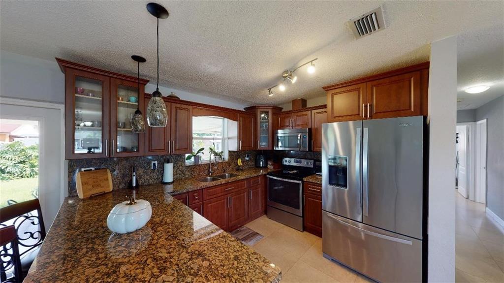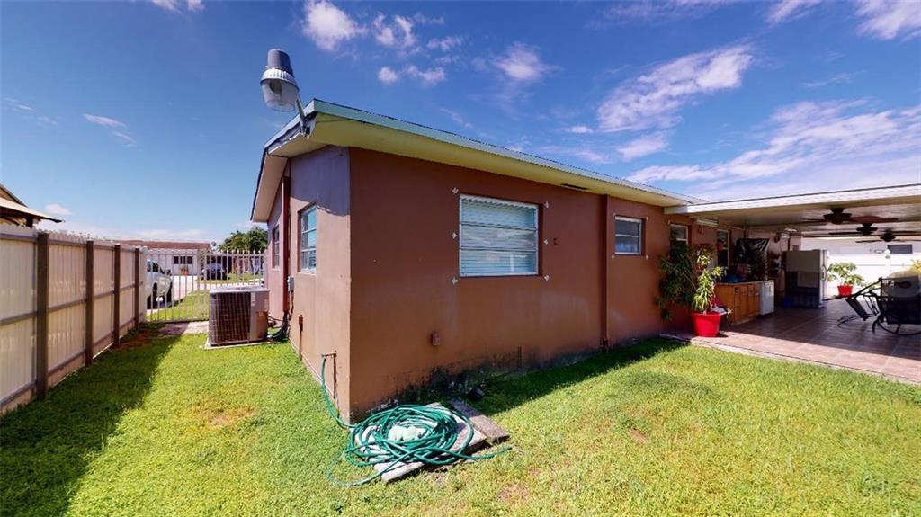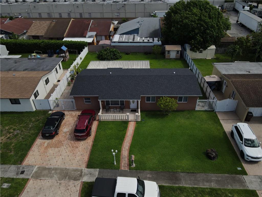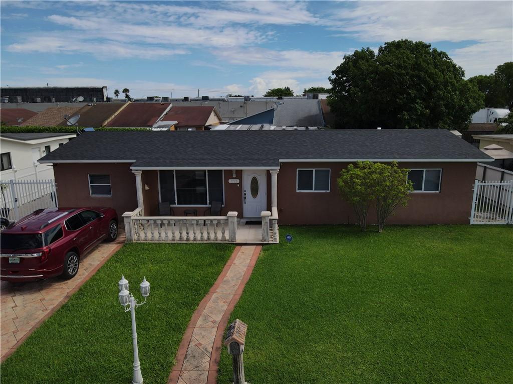 Located in West Hialeah a must-see This 1 story 3 bedrooms 2 baths with a converted garage could be looked at as a 4 bedroom 3 bath. The property has been remodeled updated kitchen bathrooms tile floors knockdown walls and paint It has a very spacious fenced backyard with a large covered patio excellent for entertaining family and friends. The backyard also has an 8 X 10 custom storage shed which also has power. The roof is new the A/C is 3 yrs old also a tankless hot water heater. The front driveway can easily hold 6 vehicles, there are 2 large side gates to the backyard.