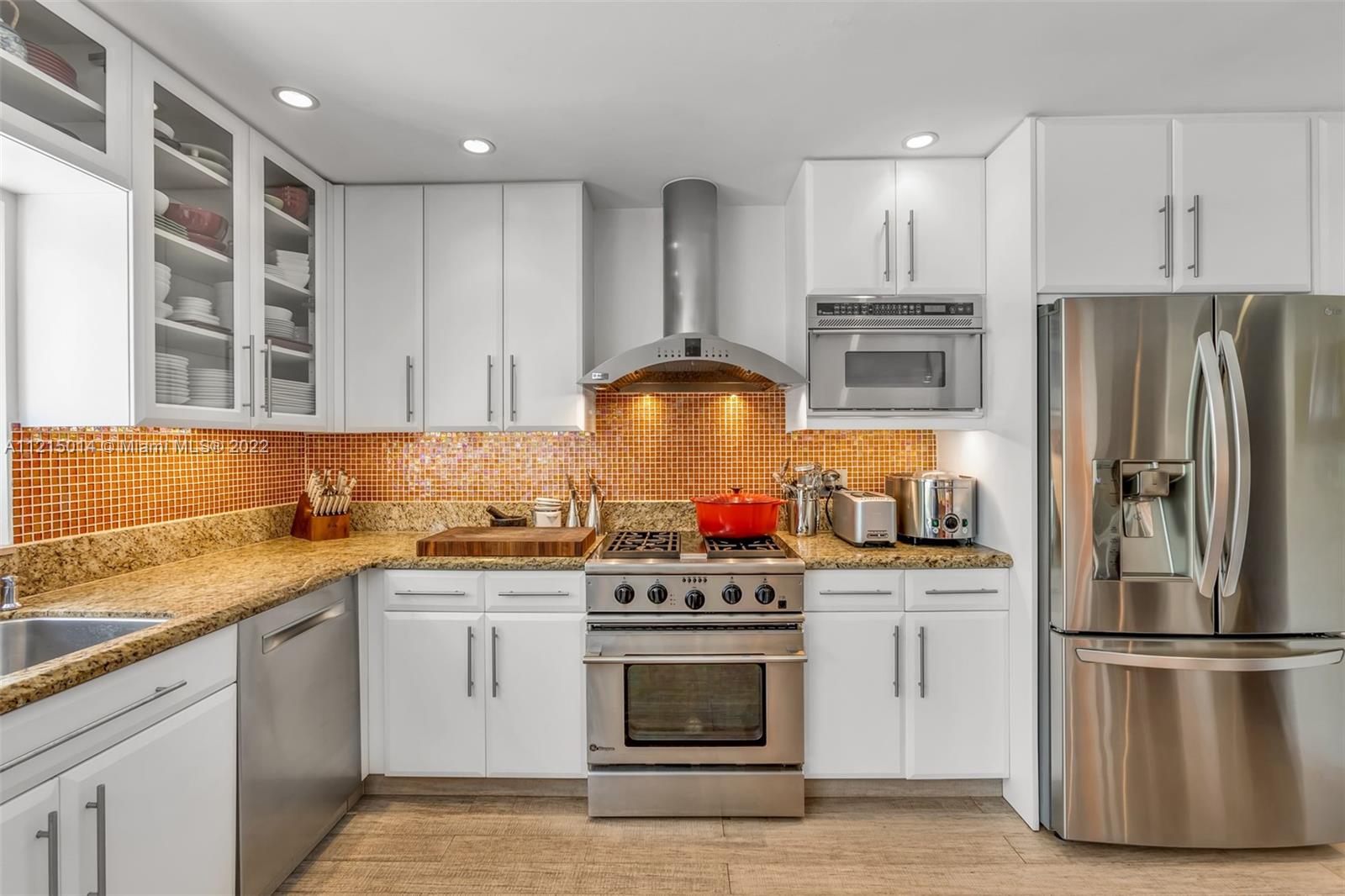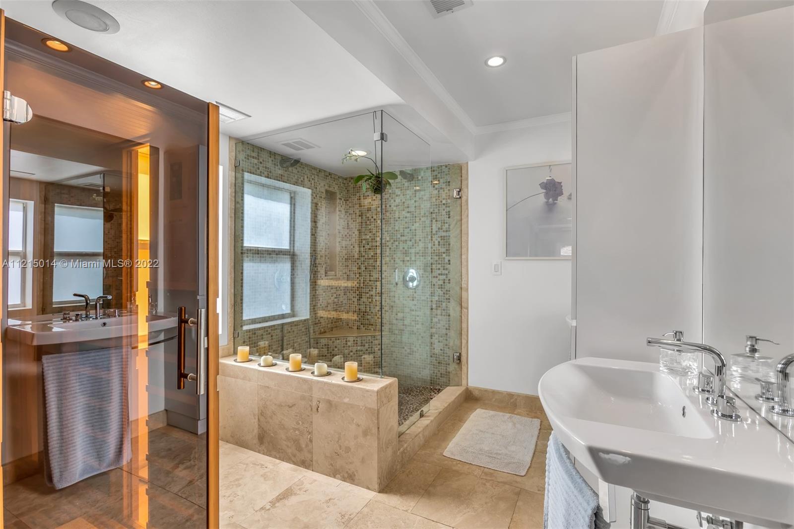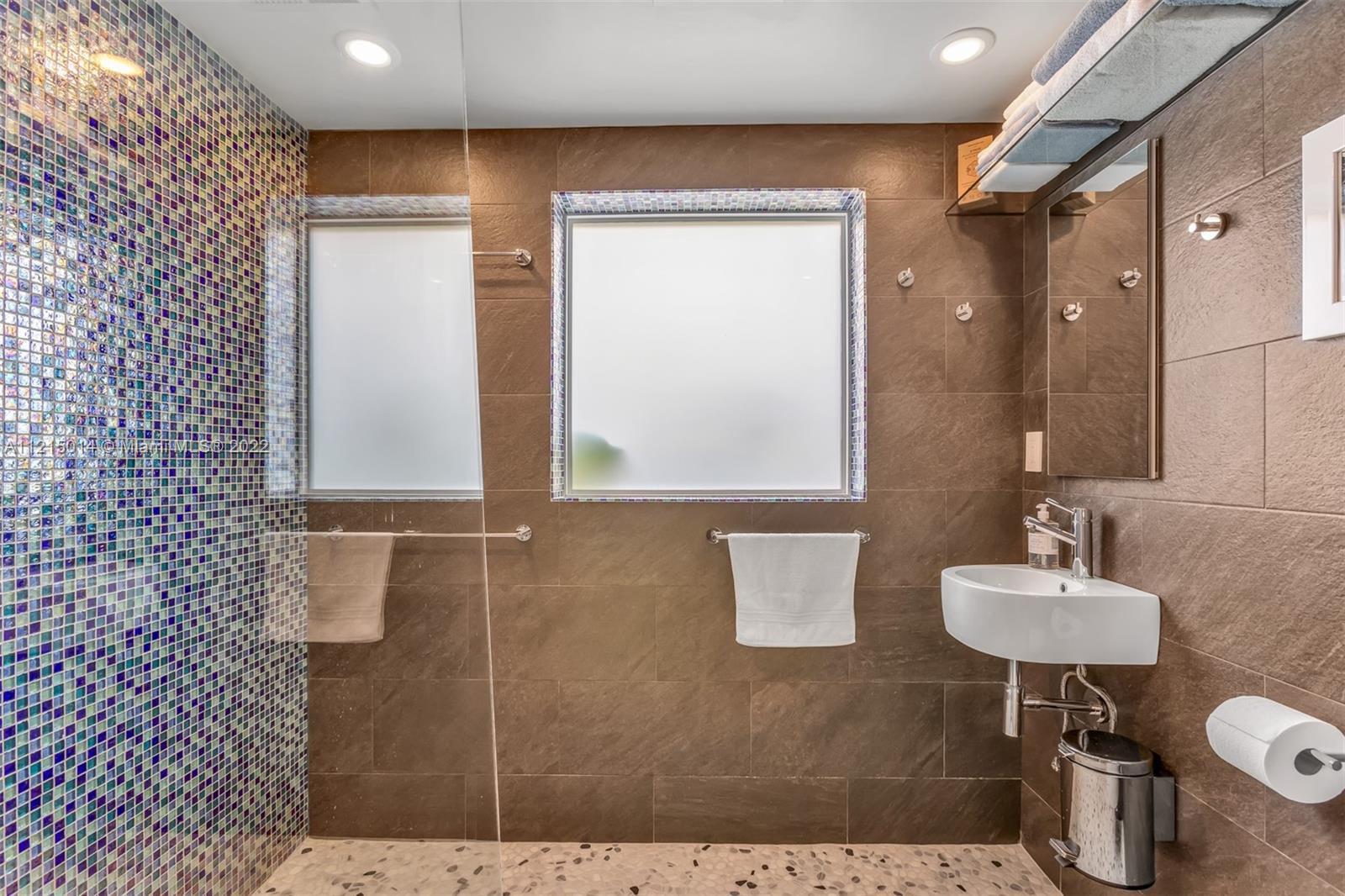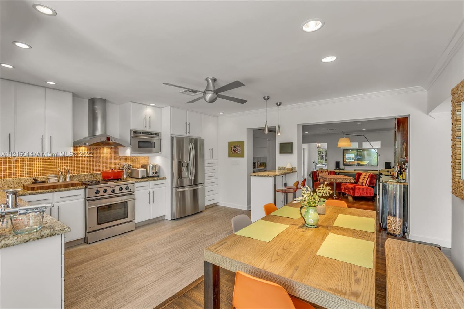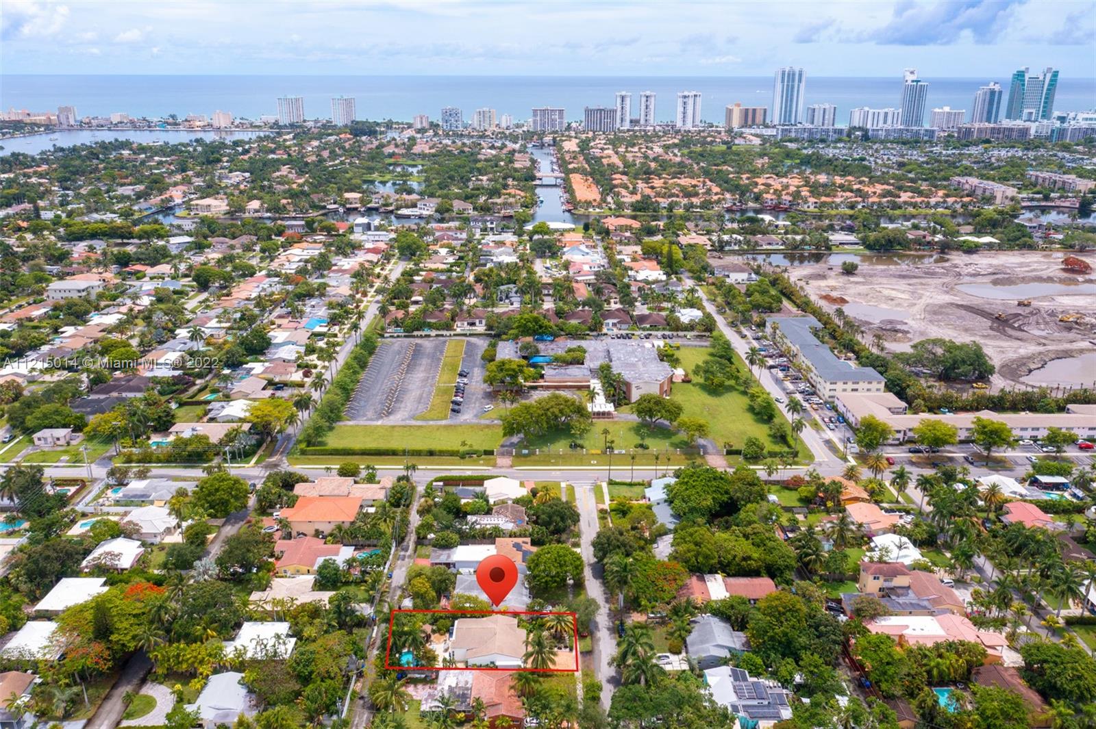 Tastefully upgraded 3 bedroom 2 full bathroom house with ton of unique features. Impact Grade windows, extra closets and custom cabinets. Upgraded kitchen with 42" cabinets, Gas range and lots of counter space for the chef of the house. Master bedroom features two walk-in closets, large custom built shower and Sauna. The entry closet can be used as an office or playroom. Resort style backyard with salt water system pool, tropical landscaping, summer kitchen, fruit trees, Custom Gazebo. Fully fenced yard with a very private and tranquil setting. NO HOA, Walking distance to Temple Beth El. Only a bike ride away from the beach, Aventura Mall and Gulf Stream. Per seller actual living area is 2100 sqft.