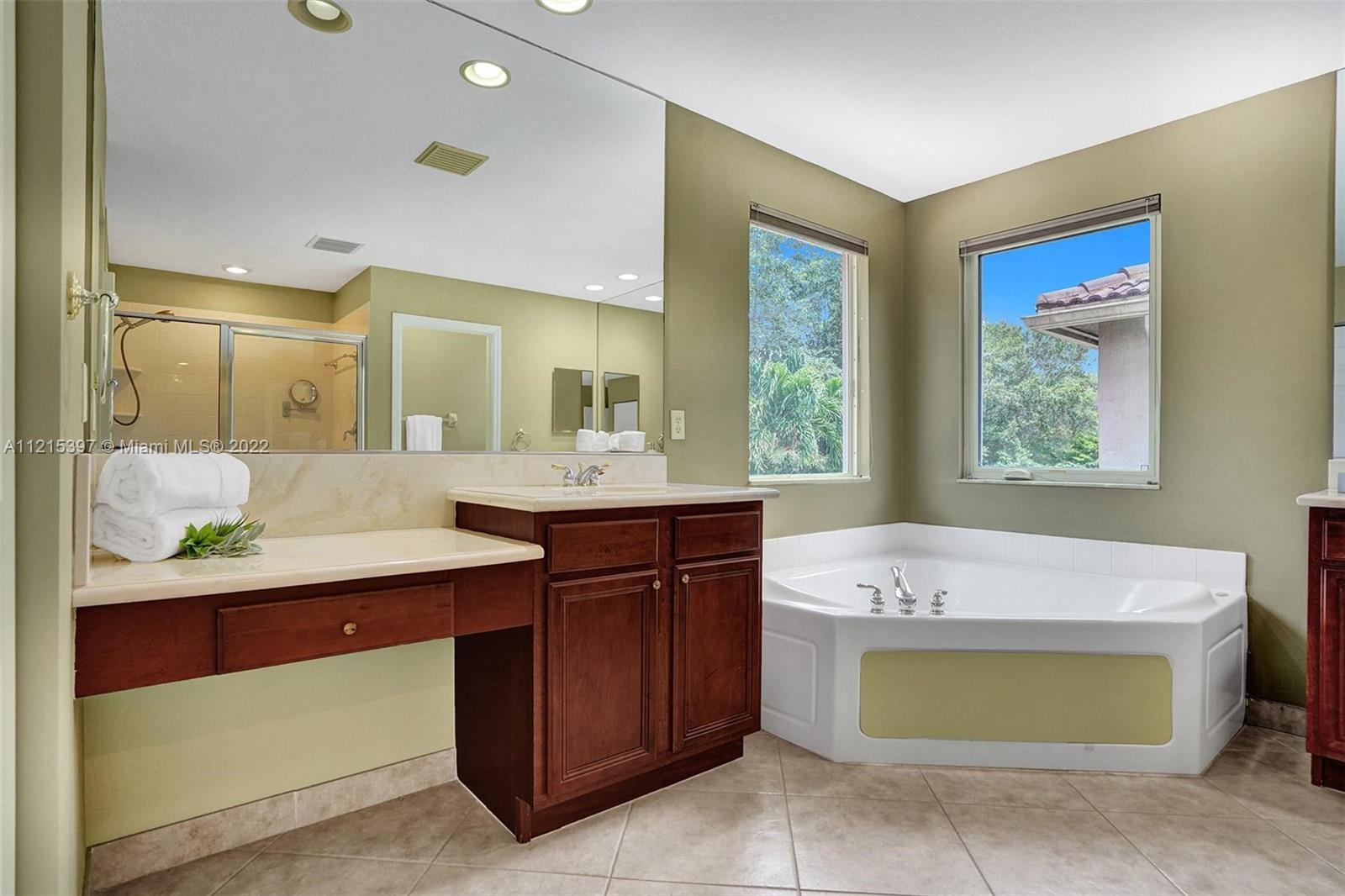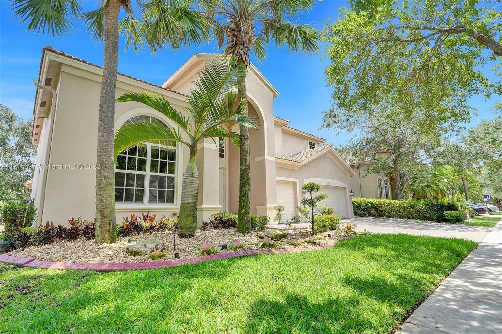 BEAUTIFUL HOME VIOLET MODEL. 5BR 5BA+LOFT. The oversized master suite is magnificent. It has a large den/sitting area, two walk in closets with wood cabinetry. Oversized loft upstairs that can be used as a 2nd family room or converted 6th bedroom. Gourmet chef's kitchen recently remodeled, 42" wood cabinets, quartz, double oven. 2 A/C units with UV lighting system. Extended covered travertine patio, electric screens, fenced private backyard with plenty of room for a spacious pool. HIGH IMPACT WINDOWS & DOORS. This gorgeous home is located in the sought-after "The Isles at Weston". Resort like club with pools, club house, billiard room, gym, playground and more. Excellent schools. Hurry, this amazing home won't last.