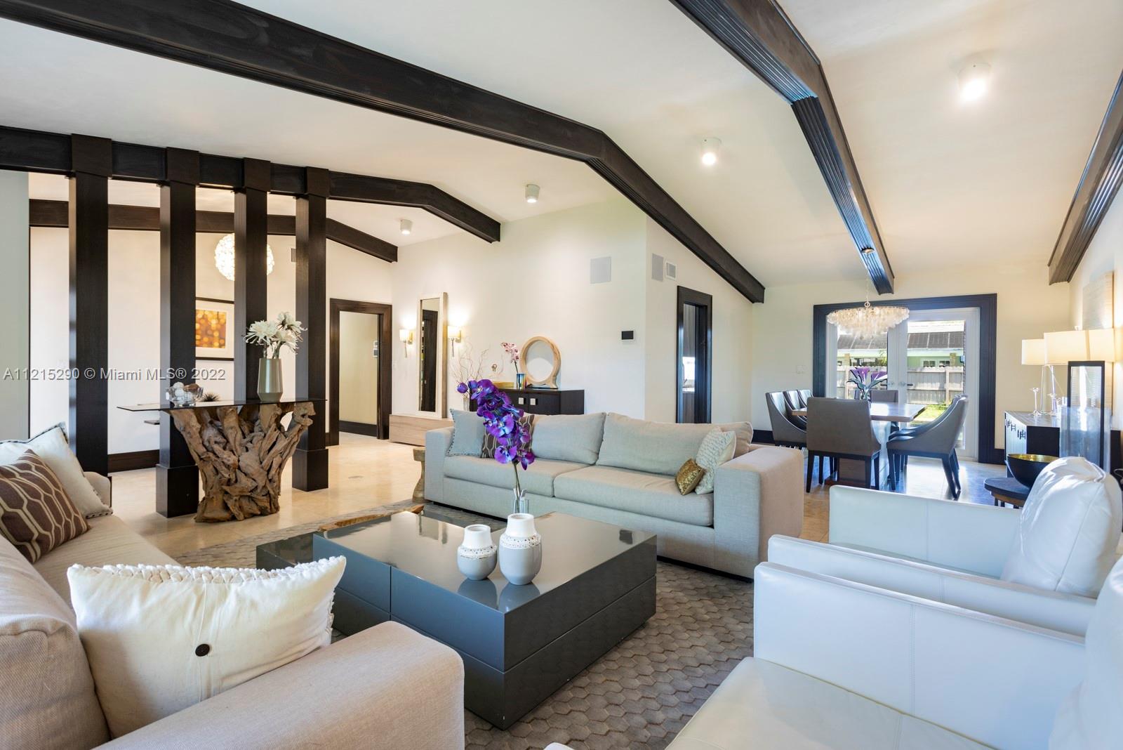 Beautifully updated 4/3 family home on an extra large 26,306 sqft half acre+ lot in south central Pinecrest. No detail spared in 2015-2016 renovation which includes full master suite makeover with modern high-end finishes, tons of closet built-ins and space, and electric blinds. 2015 metal roof. Gorgeous stone floors throughout most of the house coupled with wood. Modern top-of-the-line eat-in kitchen, impact glass windows and doors, vaulted ceilings in living-dining-family rooms, and an indoor laundry room. Control 4 smart system for electric, ACs, and Sonos sound system. Ideal patio-pool-yard layout with plenty of room to expand as well.