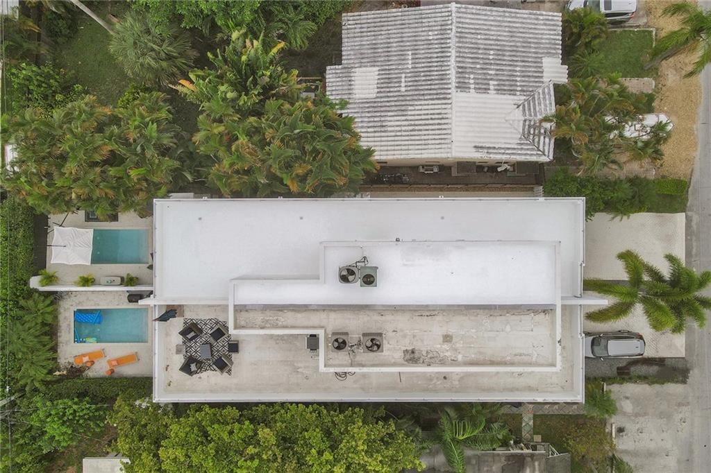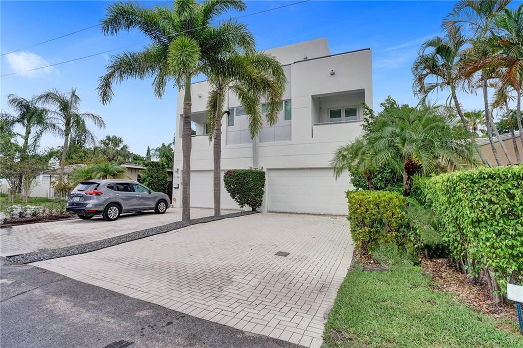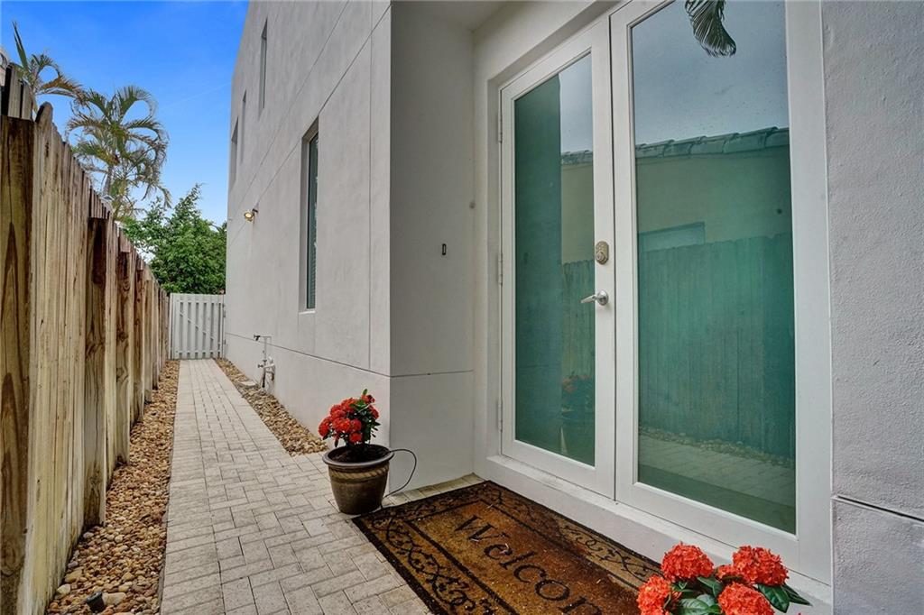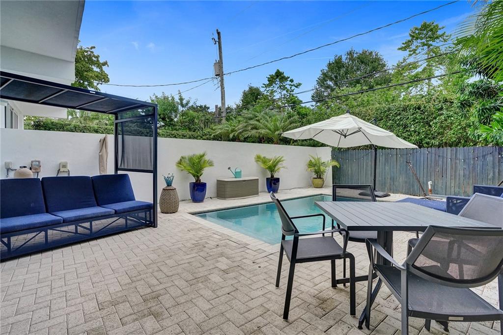 Check out this unique townhome built in 2010 that is owned like a single home with no HOA. Modern architecture abounds with high ceilings, large wall of windows letting in natural light and even a rooftop deck perfect for a summer kitchen, hot tub and casual lounging area. Enjoy your main living area at the entry level and secondary den upstairs-perfect for a home office. Guest suite on top level provides privacy with living Room and Bedroom with private bath. Enjoy a full 2 car garage with storage and large driveway for extra parking. Step out from the living room on to you private patio with pool. Just perfect modern living and close to shopping & dining along Federal Highway, Less than 2 miles to the Beach and to Downtown. A location you just can't beat. See today!