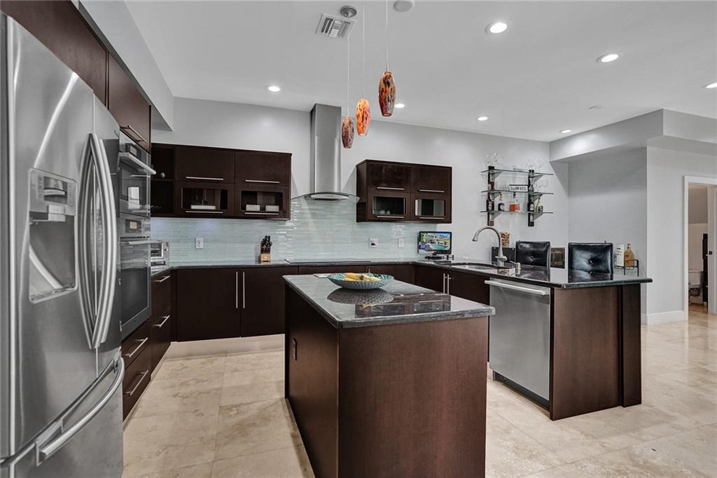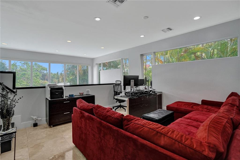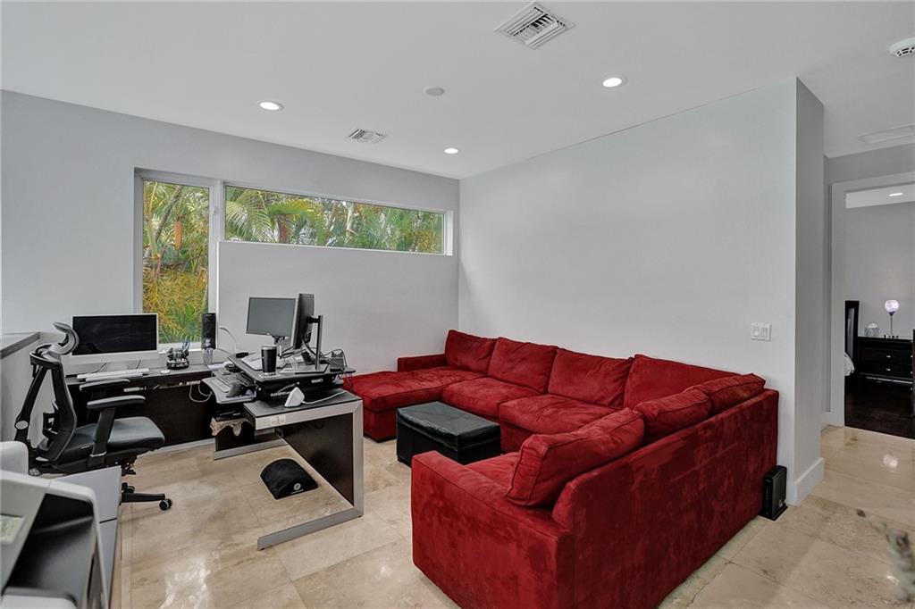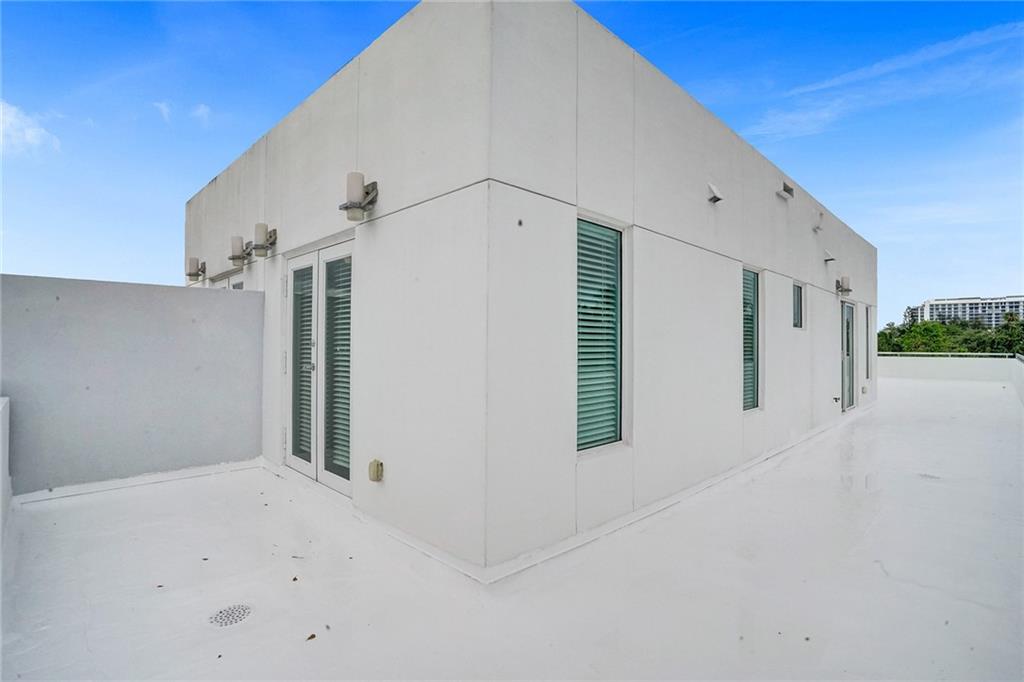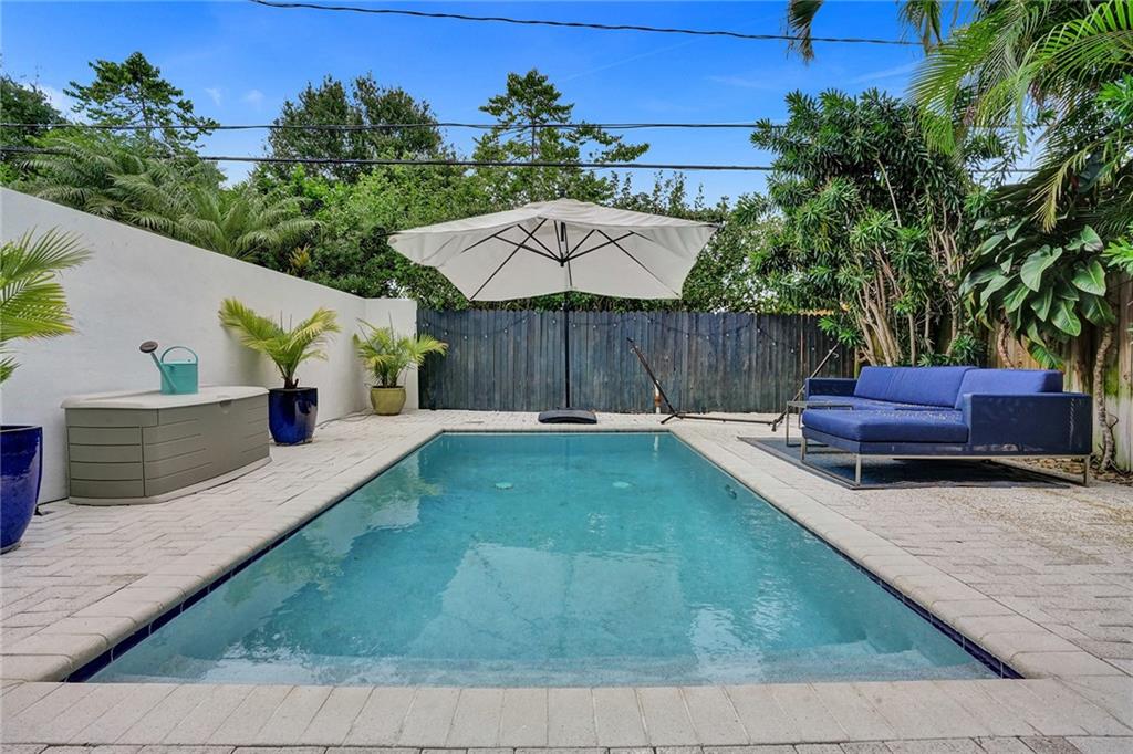 Check out this unique townhome built in 2010 that is owned like a single home with no HOA. Modern architecture abounds with high ceilings, large wall of windows letting in natural light and even a rooftop deck perfect for a summer kitchen, hot tub and casual lounging area. Enjoy your main living area at the entry level and secondary den upstairs-perfect for a home office. Guest suite on top level provides privacy with living Room and Bedroom with private bath. Enjoy a full 2 car garage with storage and large driveway for extra parking. Step out from the living room on to you private patio with pool. Just perfect modern living and close to shopping & dining along Federal Highway, Less than 2 miles to the Beach and to Downtown. A location you just can't beat. See today!