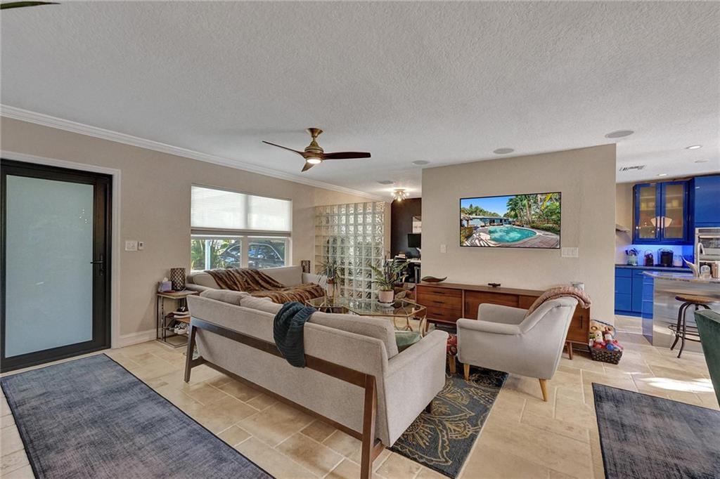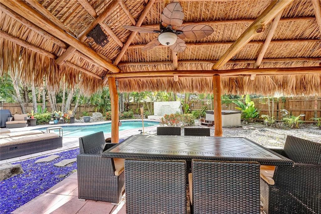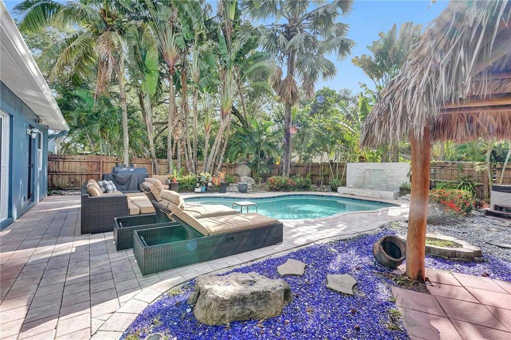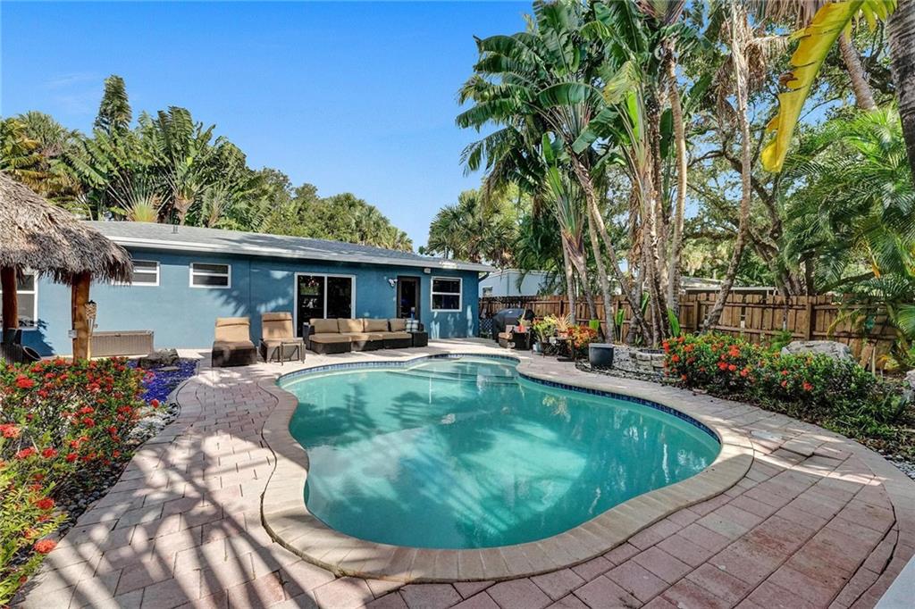 Enjoy the South Florida Lifestyle. Tropical Pool Home with Tikki Hut & Waterfall. New Architectural Shingle Roof w tie downs(2020), New Impact Windows/Doors (2022). Custom Kitchen with Solid Ash Cabinets & Azul Macuba Brazilian Granite Counters. Travertine & Terrazzo Flooring. Hi-End Light Fixtures, Ceiling Fans & Custom Window Treatments. Current Configuration is 2 Bed 2 Bath, 2nd Bedroom can be divided into 2 w/ dividing wall to make a 3rd Bedroom. Office Space off the Living Room. Large Windows offer an Abundance of Natural Light. Walk to Hortt Park with Tennis, Volleyball, Softball, Walking Paths, Outdoor Gym Equipment & Playground. Enjoy the Bill Keith Preserve on the New River. Shady Banks is Minutes to Las Olas, Downtown & the Beach.