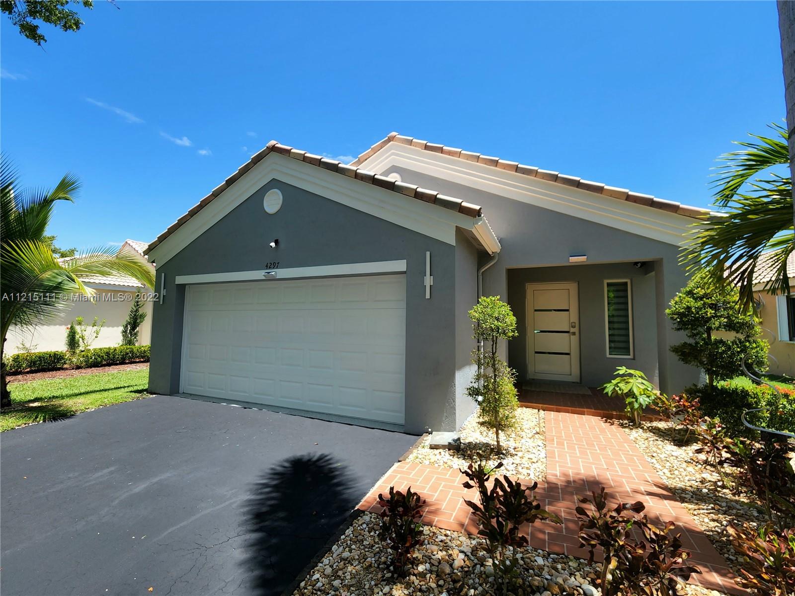 This charming renovated one-story home of 3 bedrooms/ 2 bathrooms is full of Upgrades! (Over $70'000) Enjoy the open floor plan w/ porcelain tiles. The beautiful kitchen w/ Stainless Steel Appliances is the heart of the Home, in the rooms you will find custom made closets. Brand New High Impact Windows & Doors W/ Smart New motorized Curtains throughout the entire home. Updated & New Smart: lighting, Ceiling Fans & Lawn Sprinklers. Save a lot of money in your next water bill with it. New Electric Heater, New AC, Reverse Osmosis filter & last but not least: Enjoy your New INSULATED Garage (2 cars) w/ New Cabinets. Actually, is used as a Gym, Office & Game Room. Come to see your move-in ready Home in the desirable gated community of The Ridges an A+Schools Zone. Hurry, it won't last!