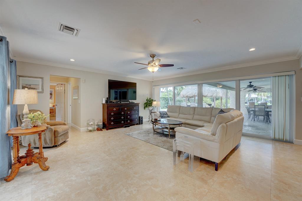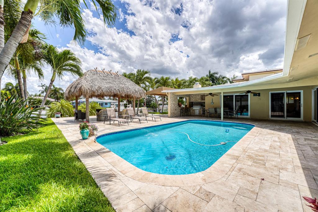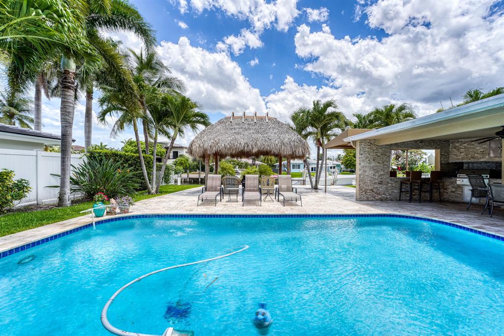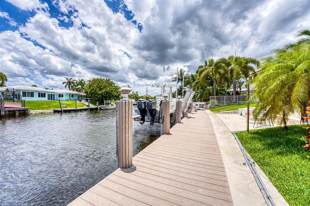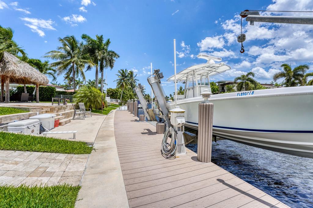 THIS IS THE ONE YOU HAVE BEEN WAITING FOR, BOATERS PARADISE. SIX (6) MINUTES TO THE HILLBORO INLET. UPDATED MOVE IN READY THREE (3) BEDS THREE (3) BATHS. FULL IMPACT GLASS, CROWN MOULDING, NATURAL GAS RANGE & WATER HEATER. THE LARGE BACKYARD HAS PLENTY OF ROOM FOR YOUR CHILDREN OR PETS TO RUN AROUND, FEATURES INGROUND POOL, TIKI HUT, GAS BBQ, BAR AREA. SEVENTY THREE (73) FOOT DOCK, NEW 17,000 LB BOAT LIFT. NO FIXED BRIDGES, NO RENTAL RESTRICTIONS