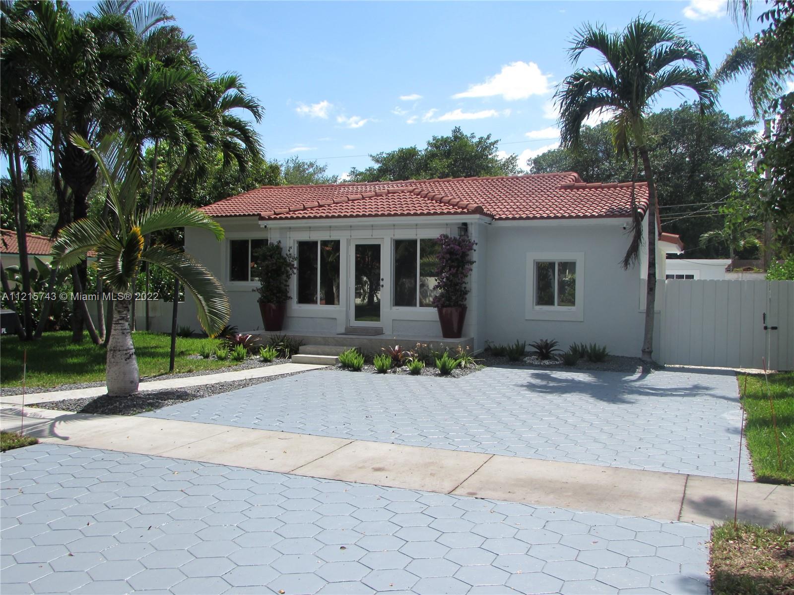 Fully renovated single family home in Miami Shores. This four bedrooom and three and a half bathroom home is located at the end of a Cul de Sac on a quiet street. The property constist of a main house with 3 bedrooms, 2 full bathrooms and a half bathroom PLUS a detached studio in the back of the property with a full bathroom, ideal for an office or guest room. The large lot has enough room for a pool. The property was fully renovated two years ago and has a brand new AC, stainless steel appliances and a covered patio, ideal for entertaining.
