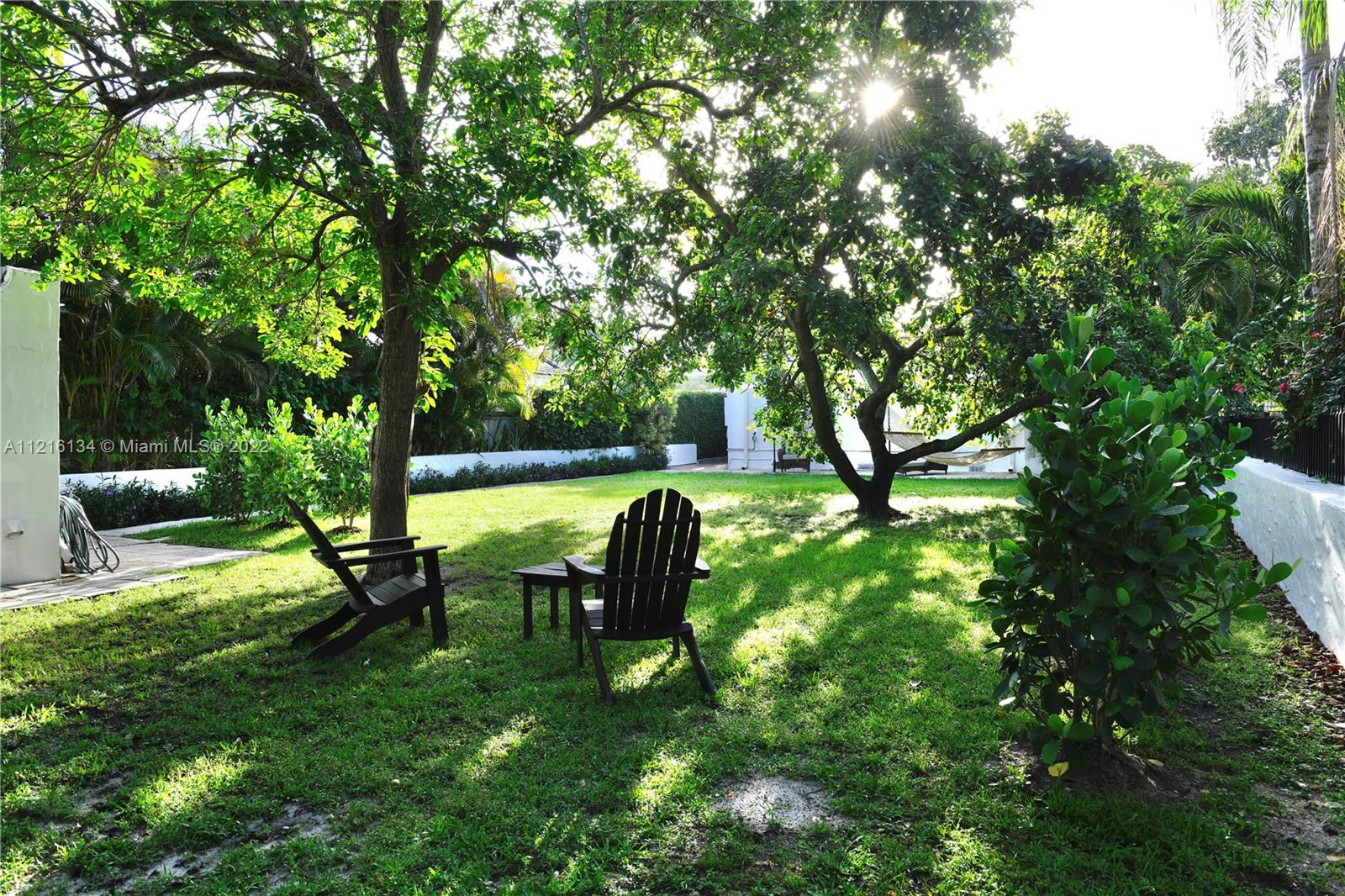 Welcome to Miami Shores! Welcome to this adorable 2bed/1bath jewel-box bungalow located just 2 blocks from downtown Miami Shores. This home is full of charming specific period details such as vaulted wood beam ceilings, fireplace, decorative wall niches, pristine original polished wood floors and a fully remodeled bathroom. Step out back to a sprawling yard with plenty of room for entertaining and expansion in addition to fruit tress. Additional features: bright eat-in kitchen, impact windows, new roof (2019), newer A/C, newer tankless water heater, updated electric, new gutters, and more! Detached 1 car garage with automatic door. Hurry up! This is your chance to be in the Shores under $650k!