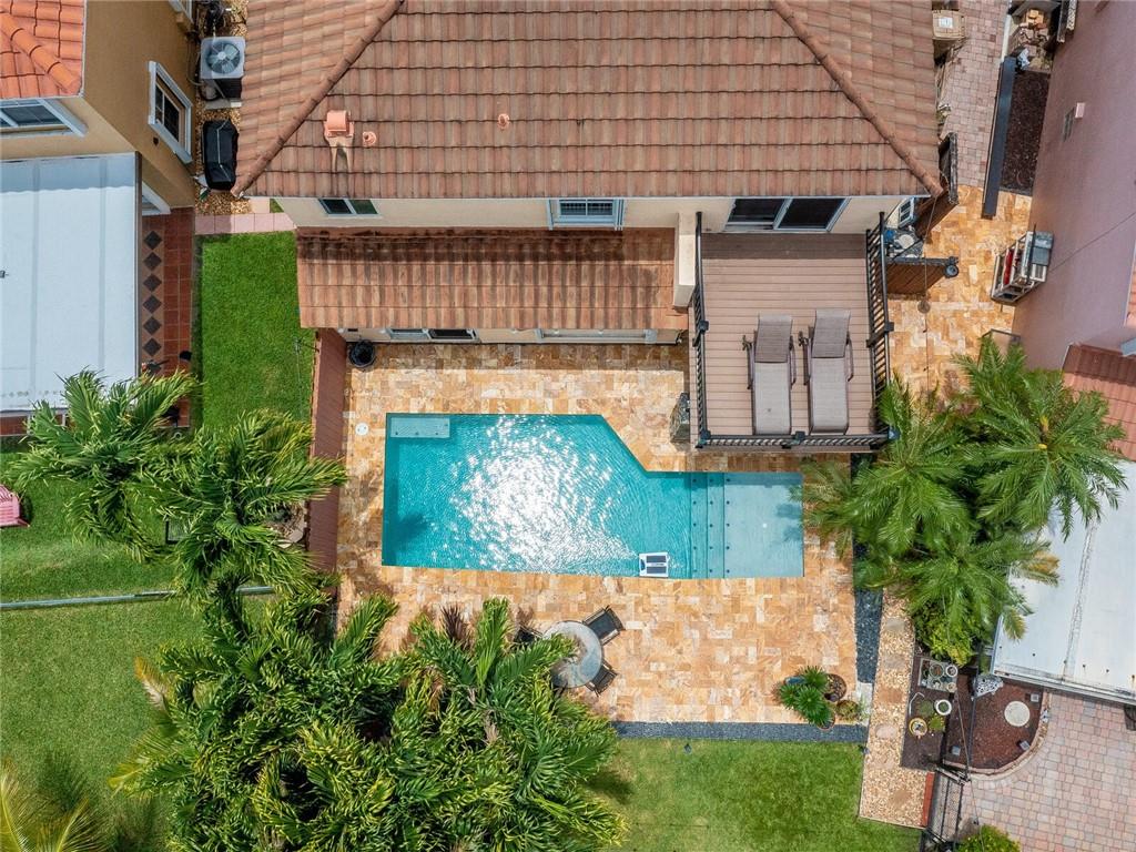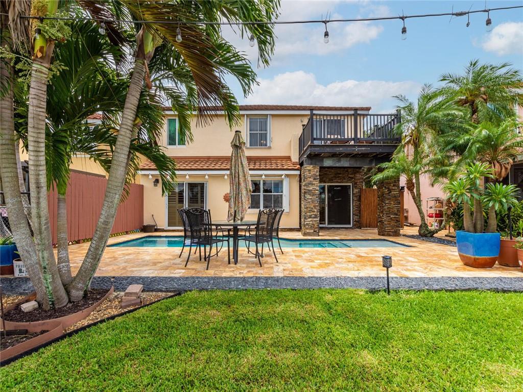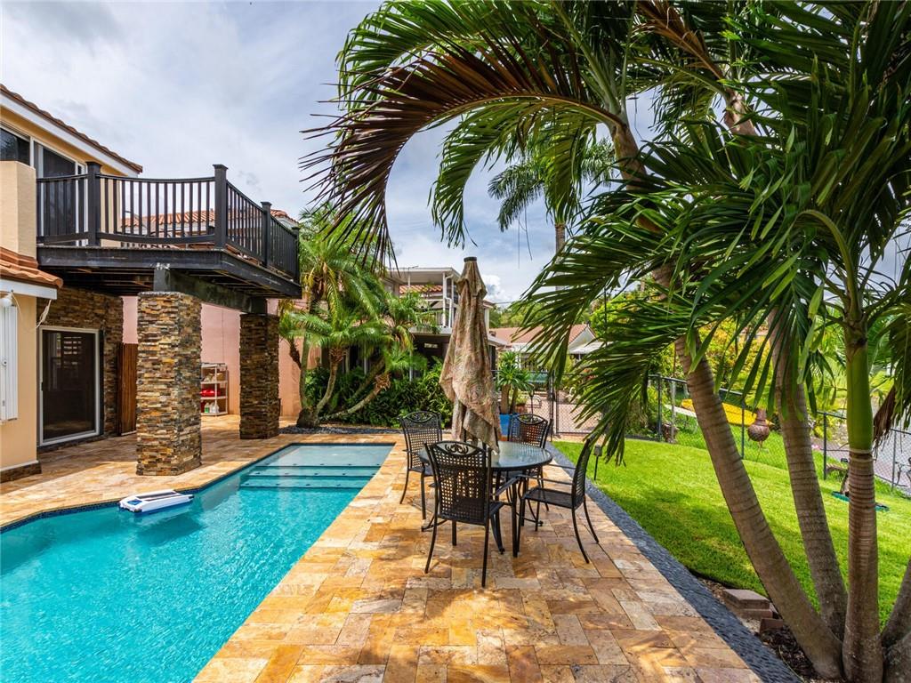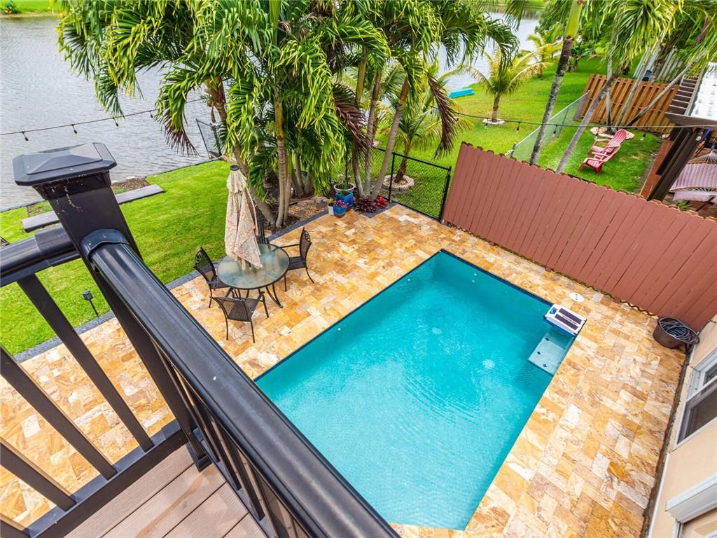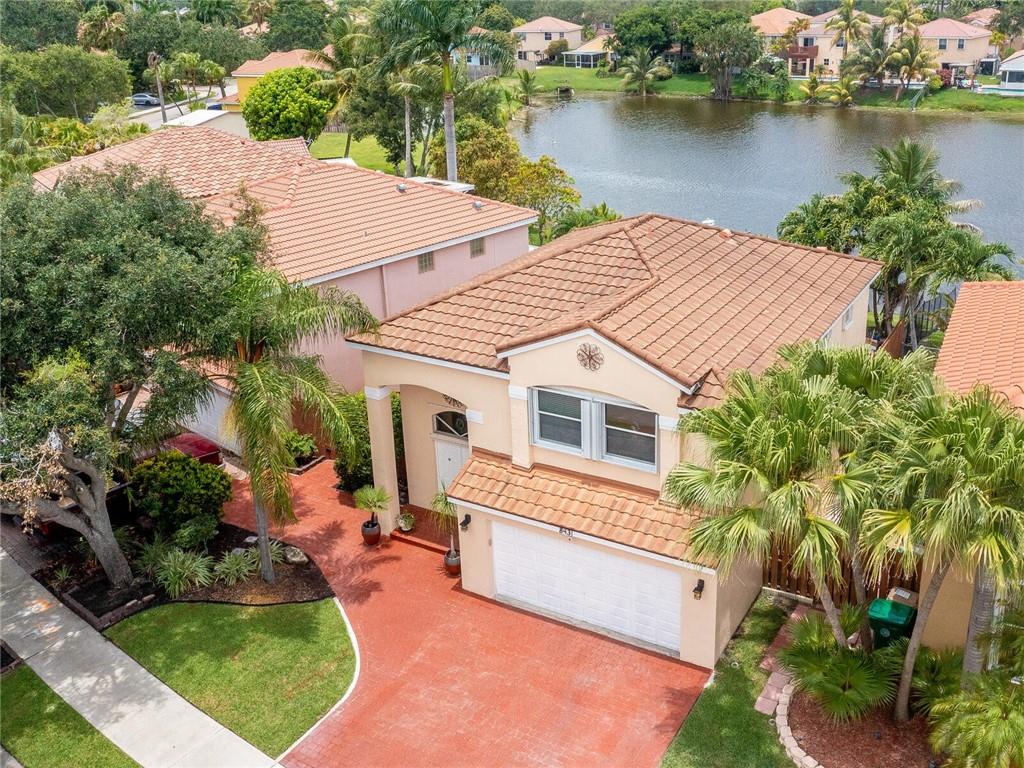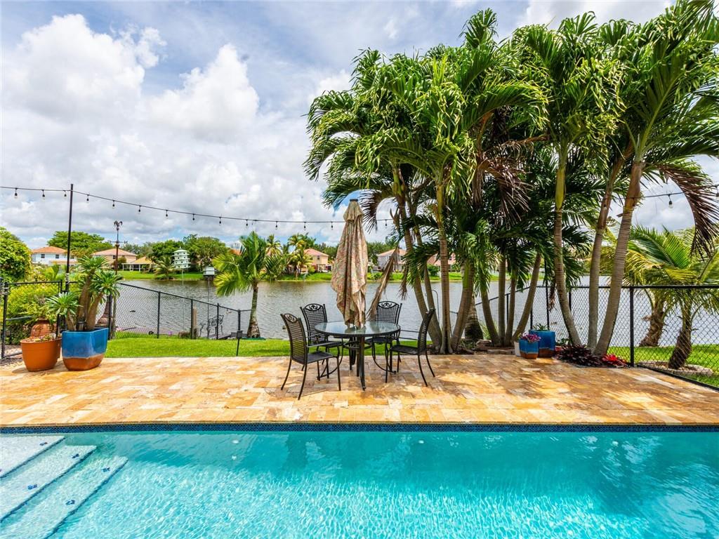 A two-story, **lake front** home with a pool in Pine Island Bay. The home has four bedrooms and two- and one-half baths. The home features Ceramic tile throughout the first floor with the upstairs flooring being all wood laminate. Pine Island Bay is centrally located in Davie, Florida near I-595 and Florida’s Turnpike with A rated schools just within a few miles. This home has hurricane shutters for all windows with all sliding doors upgraded to impact resistance doors.. The metal barrel tile roof provides additional protection against hurricanes. An HOA community with very low fees of only $165 a quarter. All bathrooms and kitchen have been upgraded. This home has energy efficiency in mind with a new 18 seer heat pump for cooling and a tankless water heater.