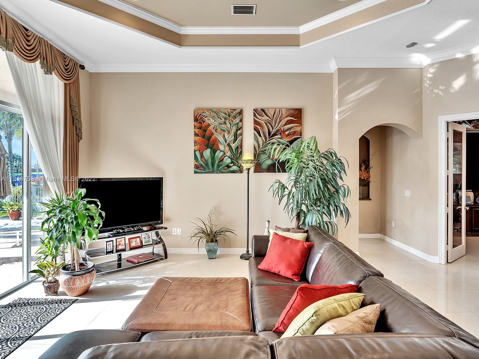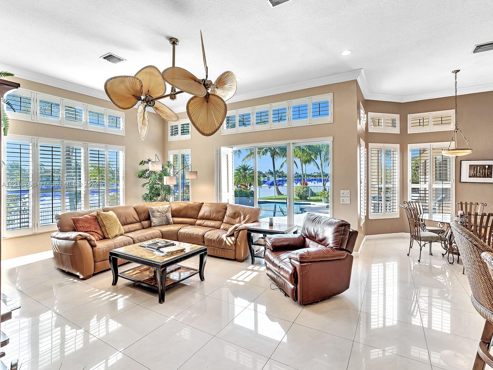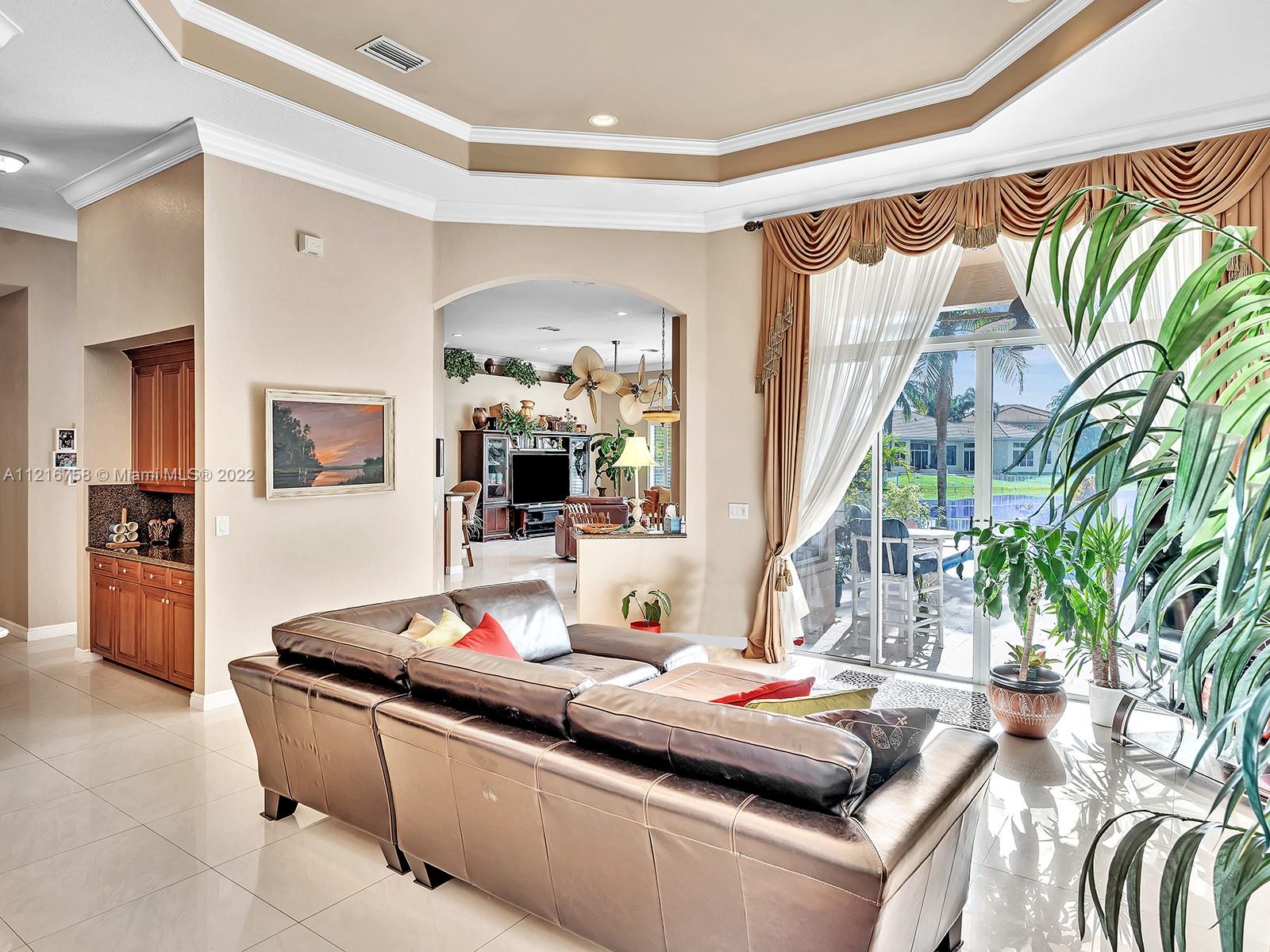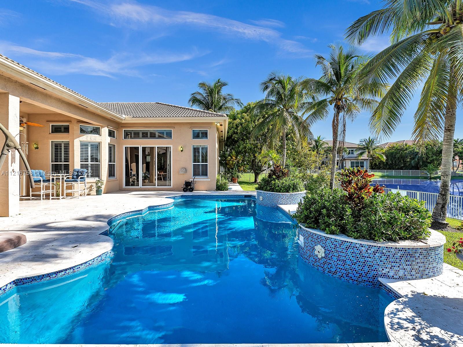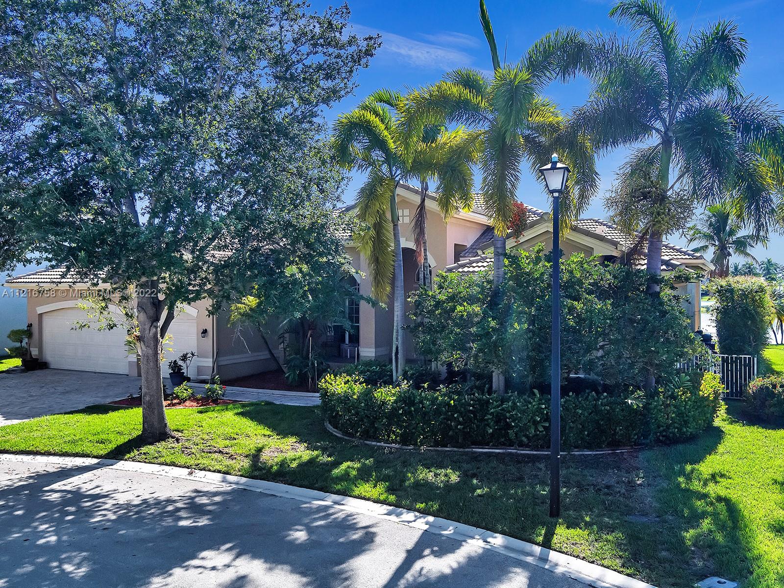 Beautiful 3,766 sqf single family home with 5 bedrooms, 4 baths and an elegant office with built-in cabinetry. Convenient split configuration/open concept layout. Many windows and glass doors let in a ton of natural light and offer stunning views of the recently updated pool/deck and lake from kitchen, informal dining, family, living room and oversized master bedroom. Plantation shutters on all windows alongside back-end of house. Master bath has dual water closets. Equipped with electric outlet to install electric car charger and power generator outlet (generator included). Most appliances, including washer/dryer are less than 2 years old. Property is on private cul de sac in beautifully maintained and highly sought after gated community with too many amenities to list! Gorgeous property!