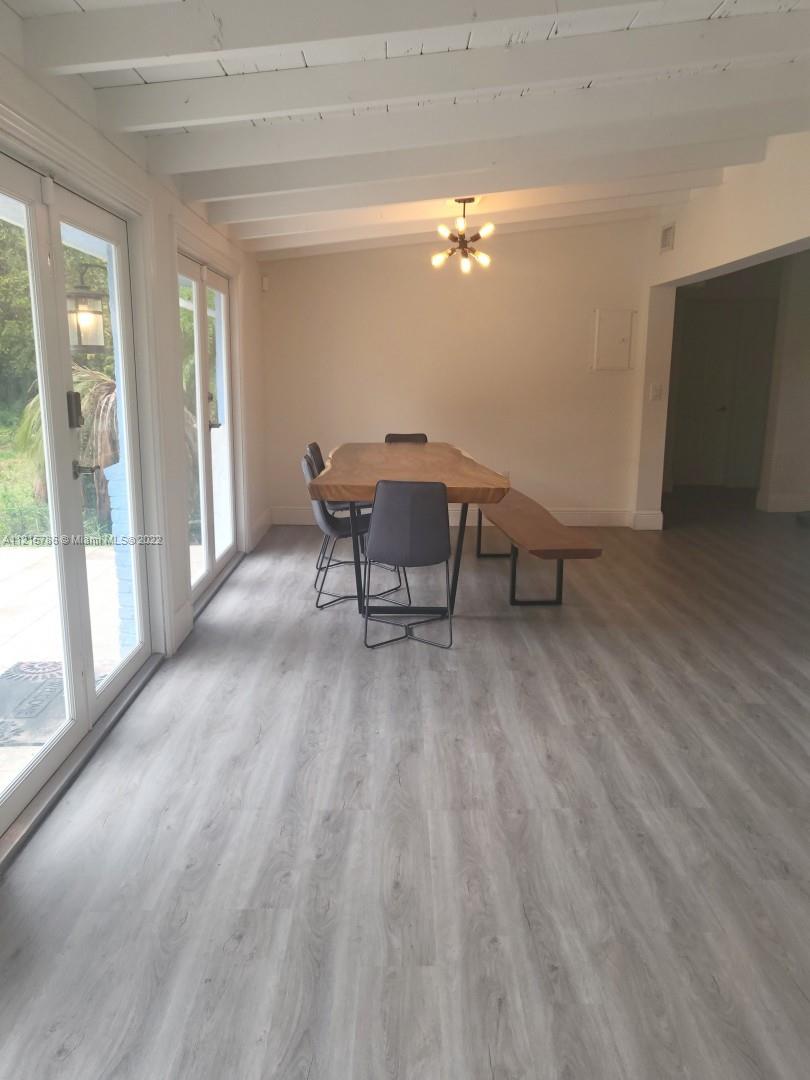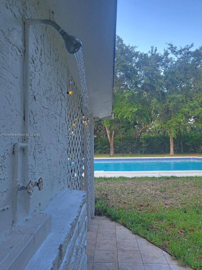 Quiet, inviting, gated North Pinecrest home sitting on over one acre of peaceful greenery. The home is located on a quiet cul-de-sac. The home has multiple mango, avocado and palm trees with a 9' privacy hedge along street. Cottage home has a 3 bed, 2 bath main house, with open floor plan & white Pecky Cypress beam ceilings. The dining area overlooks triple glass doors to an 80' pool & guest house perfect for entertaining. Main house has impact glass and 1-car garage. Pool house was renovated in 2022 with recessed lighting, new kitchen and bath, large porcelain tile floors with 1 bed & full bathroom with an outdoor shower. Guest home can be used as an in-law suite.