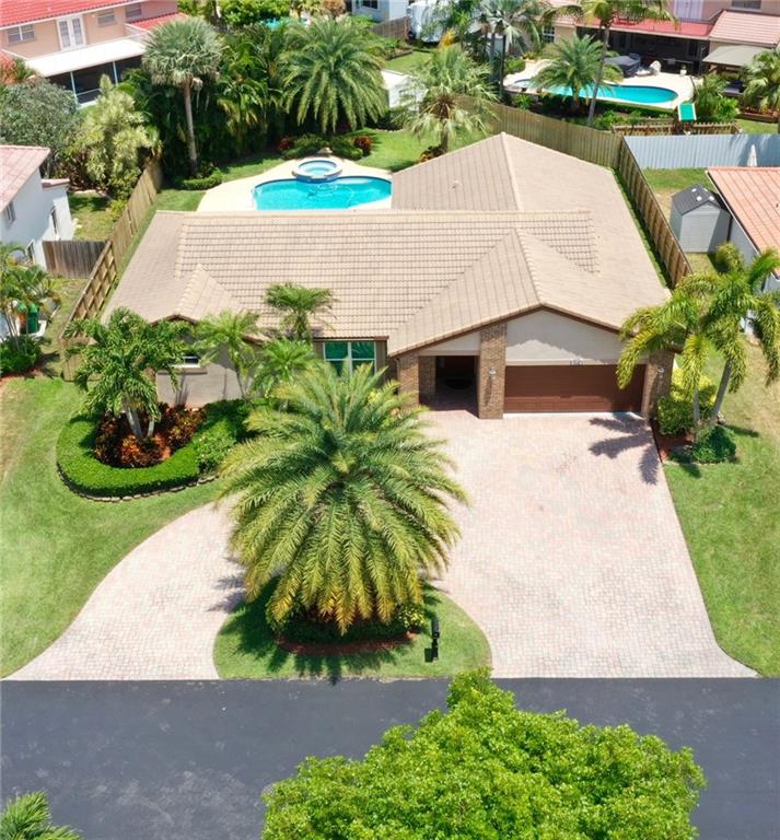 Beautifully updated 3 bed 2 bath home +2 car garage in Hawkes Bluff of Davie. Interior features include vaulted ceilings, formal living & dining room + family room, recessed LED lighting, open kitchen with SS appliances, granite counter tops, & wood grain tile flooring throughout. Master bath 3 years new w/stand up shower plus Jason International hydrotherapy tub. Roof 2008, AC 2010, Rheem WiFi Water Heater 2018, custom closets, impact windows and doors, security system w/cameras. Home sits comfortably on 10,000 sq ft lot landscaped with lush trees, gated yard, & large covered patio, perfect for entertaining. Heated pool 6 years new w/salt water system & hot tub. Automated WiFi Rainbird Irrigation system, A+ schools, minutes to I-75, shopping, dining!