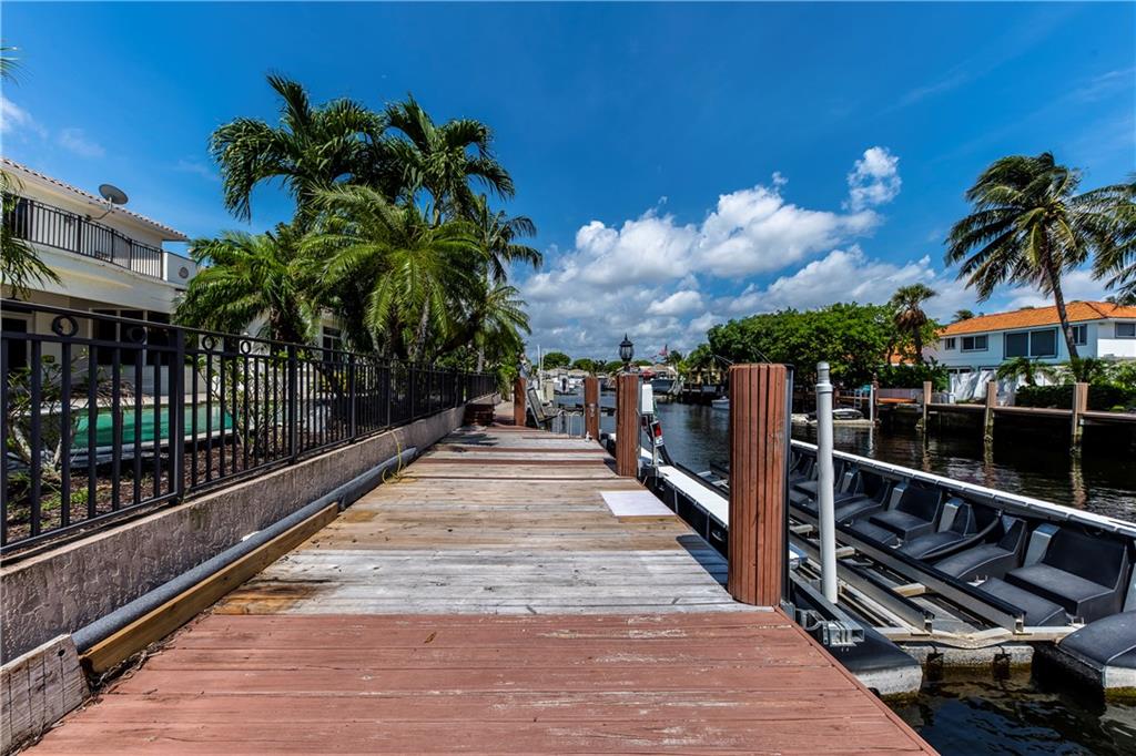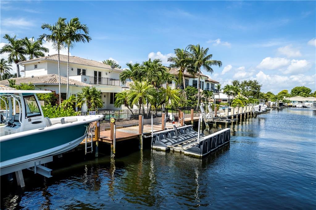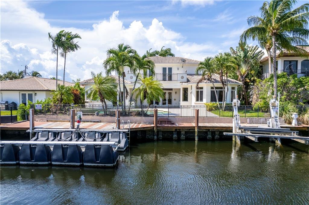 SELLER MOTIVATED! Coral Ridge Country Club waterfront home with 85 feet of waterfront, full length dock, boat lift and no fixed bridges to ocean. This 4 bedroom 4 bath home built in 2005 features very high ceilings, a large open kitchen with walk in pantry, family room, formal living room with fireplace, wine cellar, guest bedroom and large master suite on the first floor. Upstairs are 2 bedrooms and 2 baths, a large terrace overlooking the pool and waterway and a loft that could be converted into a 5th bedroom. The backyard has a covered patio area, summer kitchen and an inviting pool and spa. Walk to Cardinal Gibbons High School and Bayview Park - a 7 acre city park featuring tennis courts, basketball court, baseball diamonds and playgrounds. Close to everything you need!