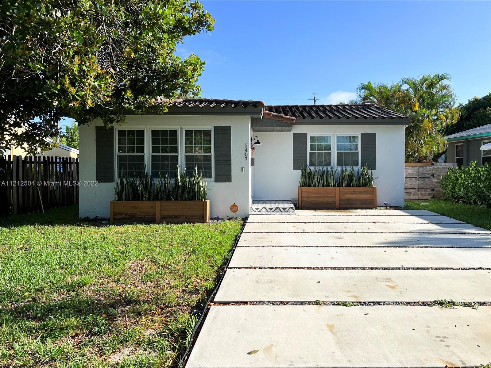 Stylish single-family Hollywood home recently renovated and ready to move in. 2/1 open concept with a lot of charm. The home features central air, impact windows &doors, original hardwood floors, new fence and ney driveway. Open kitchen design features like-new stainless steel appliances. The home sits on a big lot with enough room for a pool. The backyard features a cottage equipped with electricity and A/C and a second storage unit. There is plenty of parking! Besides the front driveway, the alleway drive up has room for a boat or recreational vehicle. Brand new interior and exterior electrical panels installed and all the wiring was replaced and modernized. Just minutes away from the beach (2.7 miles). The home of your dreams!