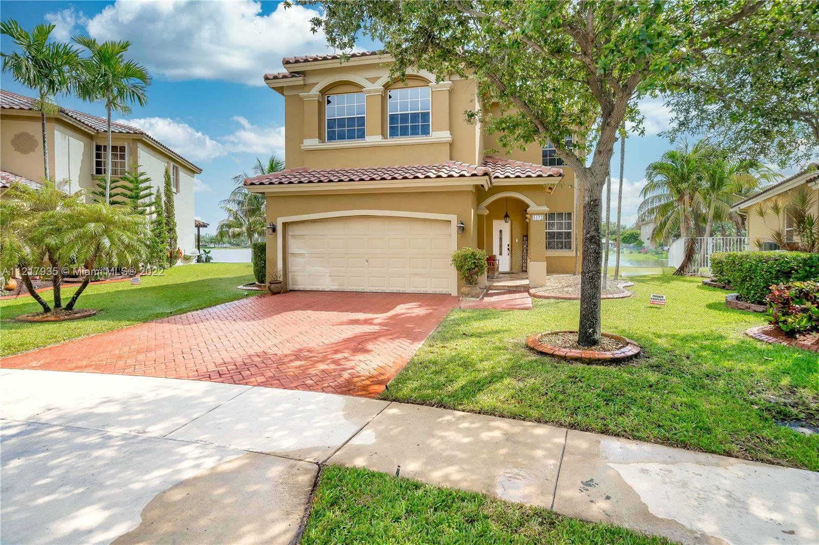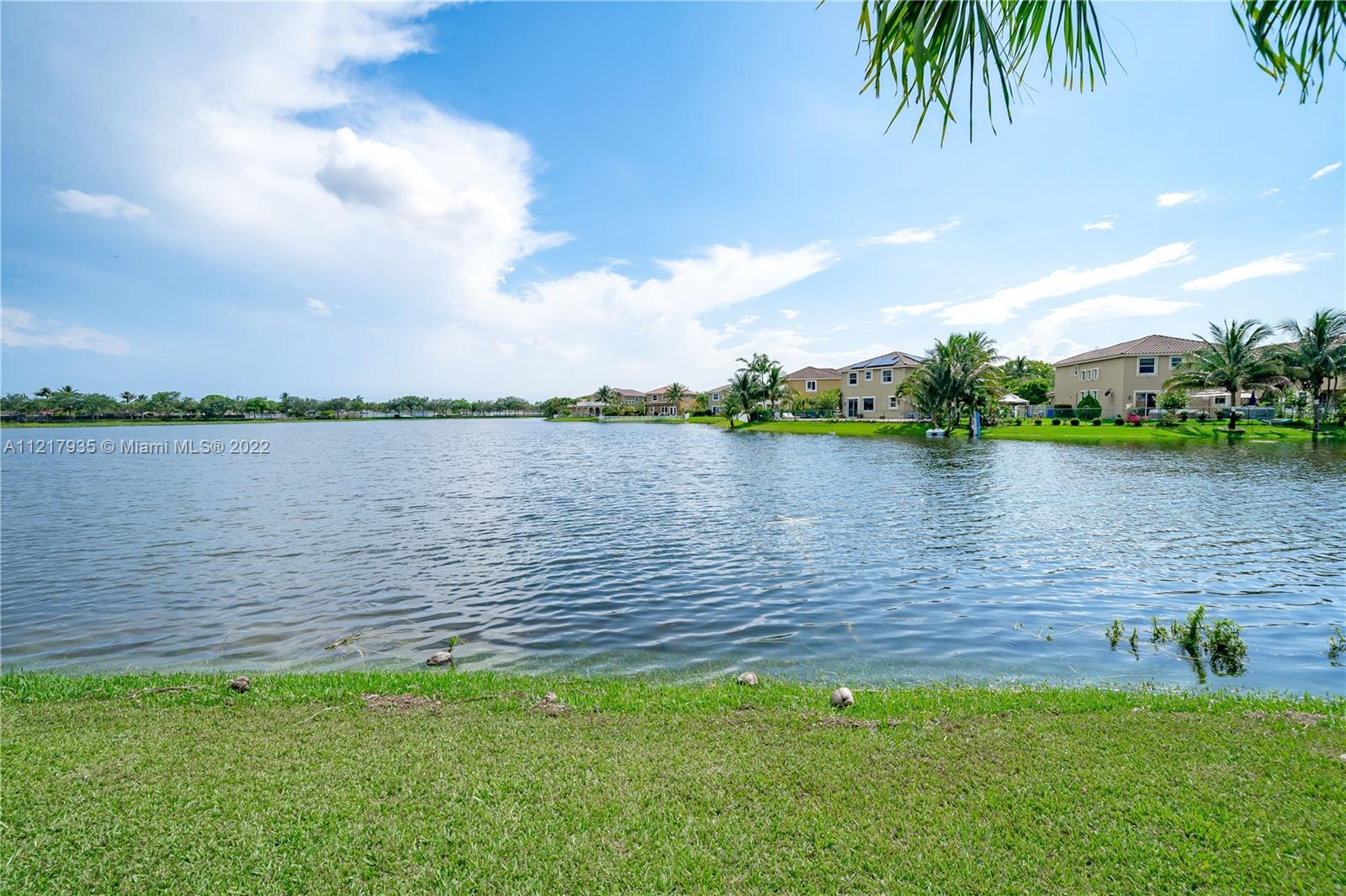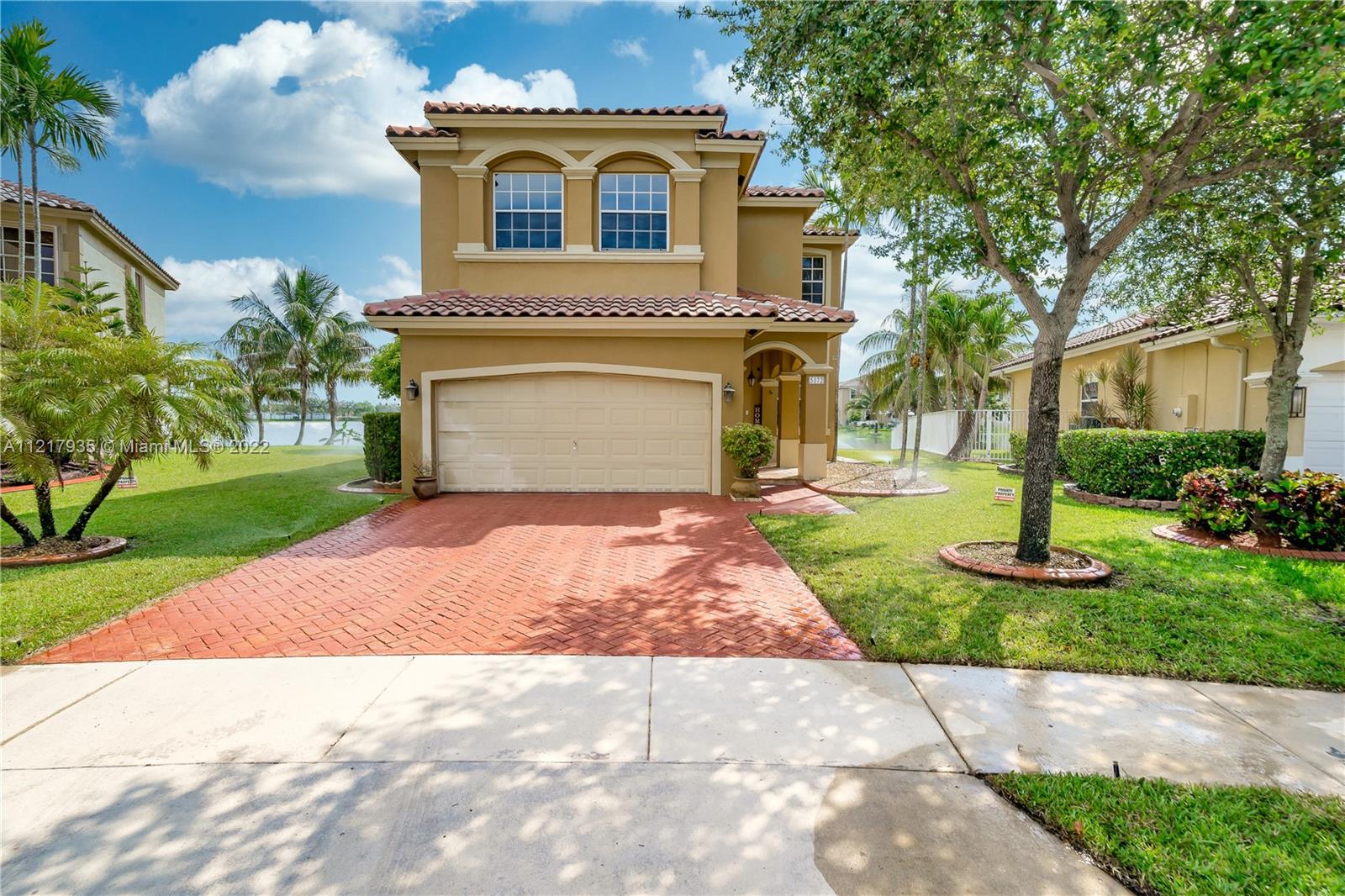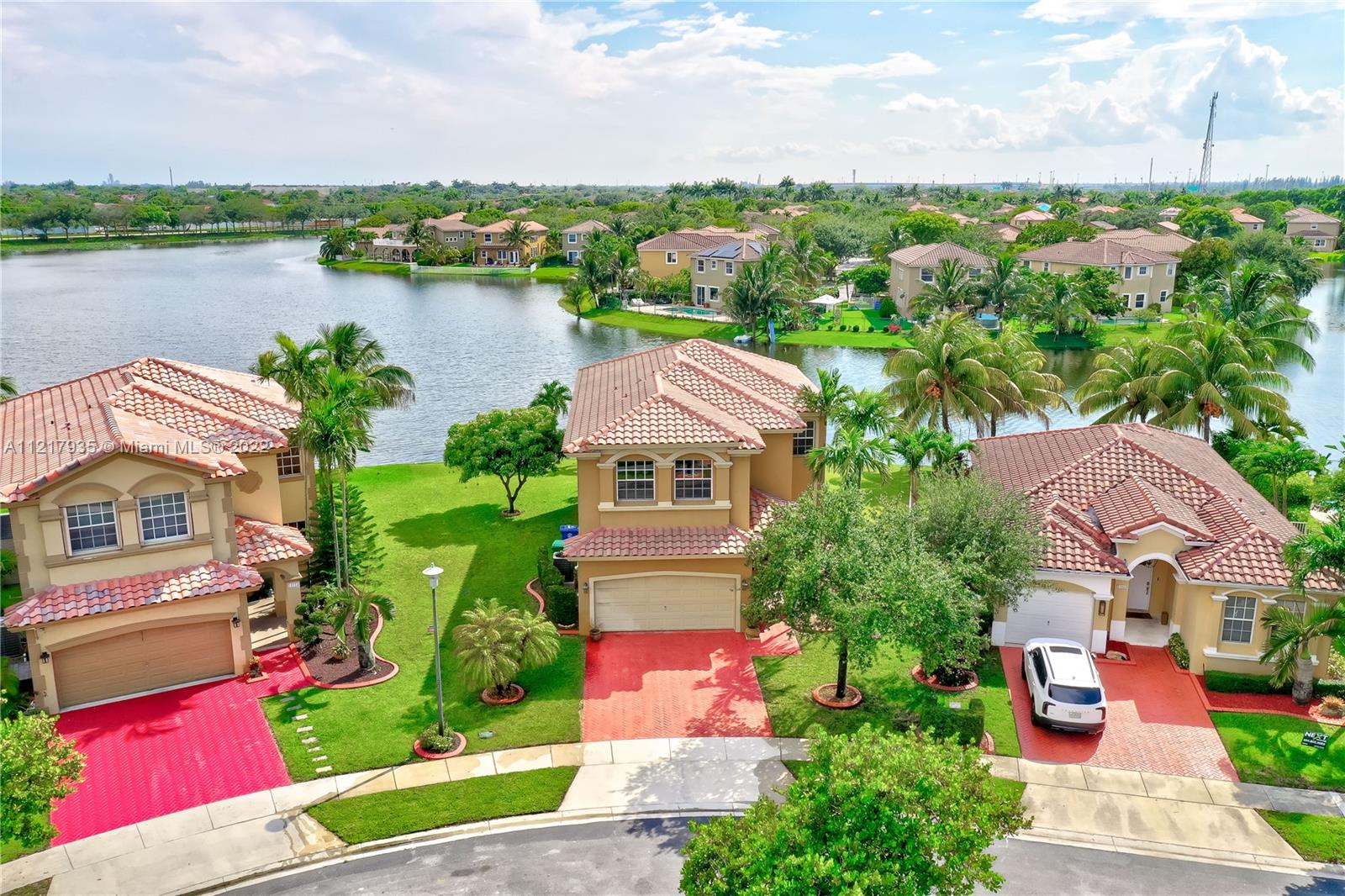 4 bed / 2.5 Home in Immaculate condition. Lots of upgrades and pride of ownership is shown. Amazing view of the lake and sunsets. The home features marble floors thru out in great condition and real bamboo wood floors upstairs, Vaulted ceiling with open floor layout and upgraded kitchen. House is located in the very desirable community of Santorini at Vizcaya. This home will not last. Easy to show.