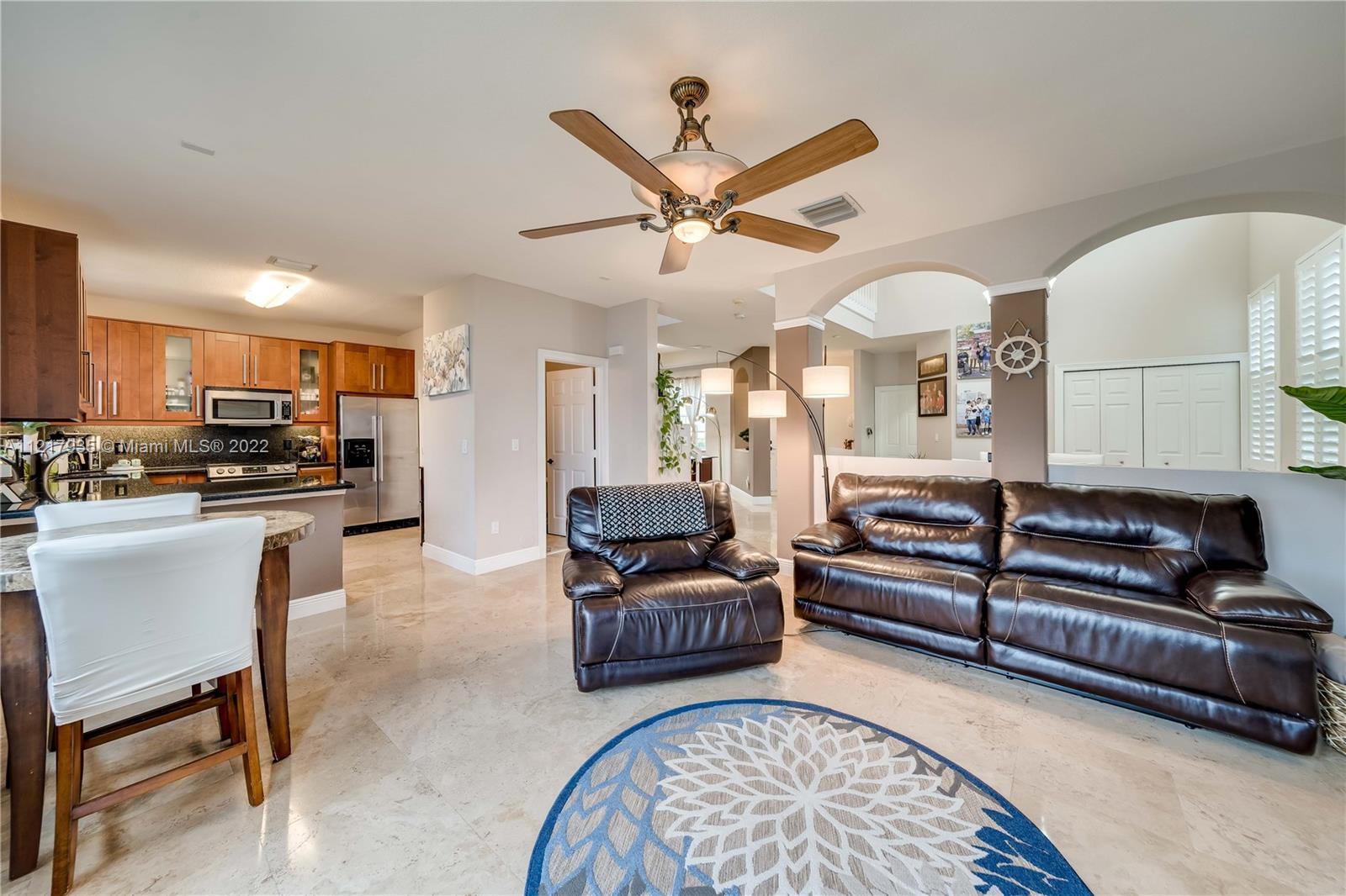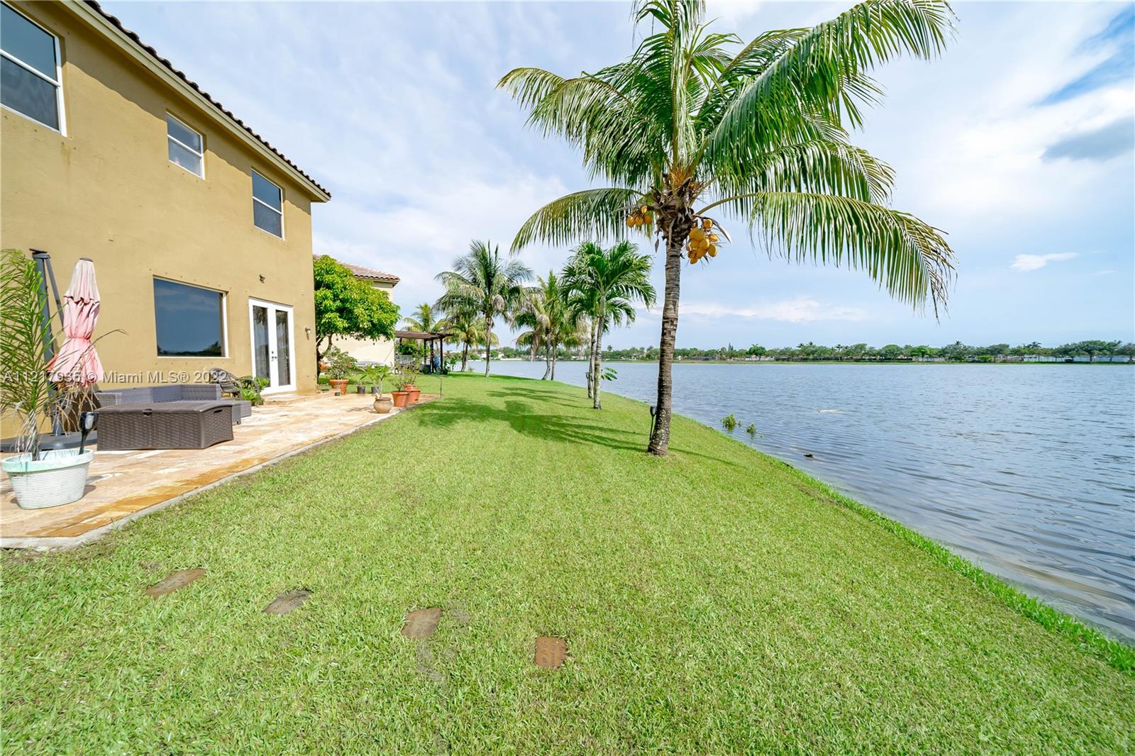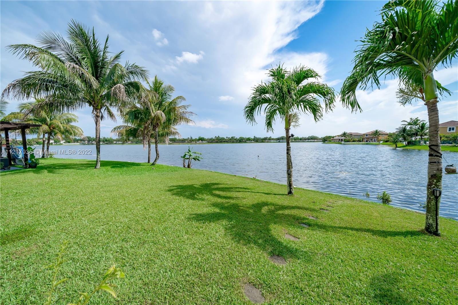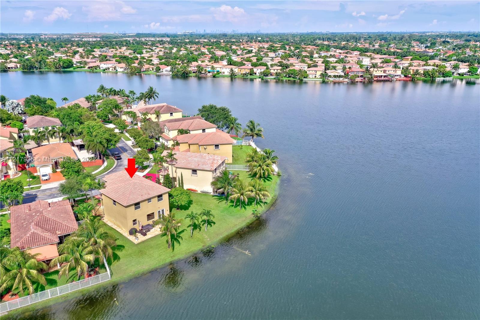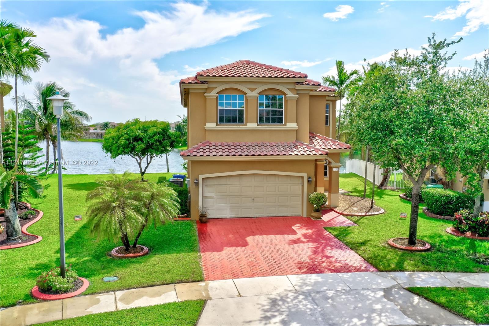 4 bed / 2.5 Home in Immaculate condition. Lots of upgrades and pride of ownership is shown. Amazing view of the lake and sunsets. The home features marble floors thru out in great condition and real bamboo wood floors upstairs, Vaulted ceiling with open floor layout and upgraded kitchen. House is located in the very desirable community of Santorini at Vizcaya. This home will not last. Easy to show.