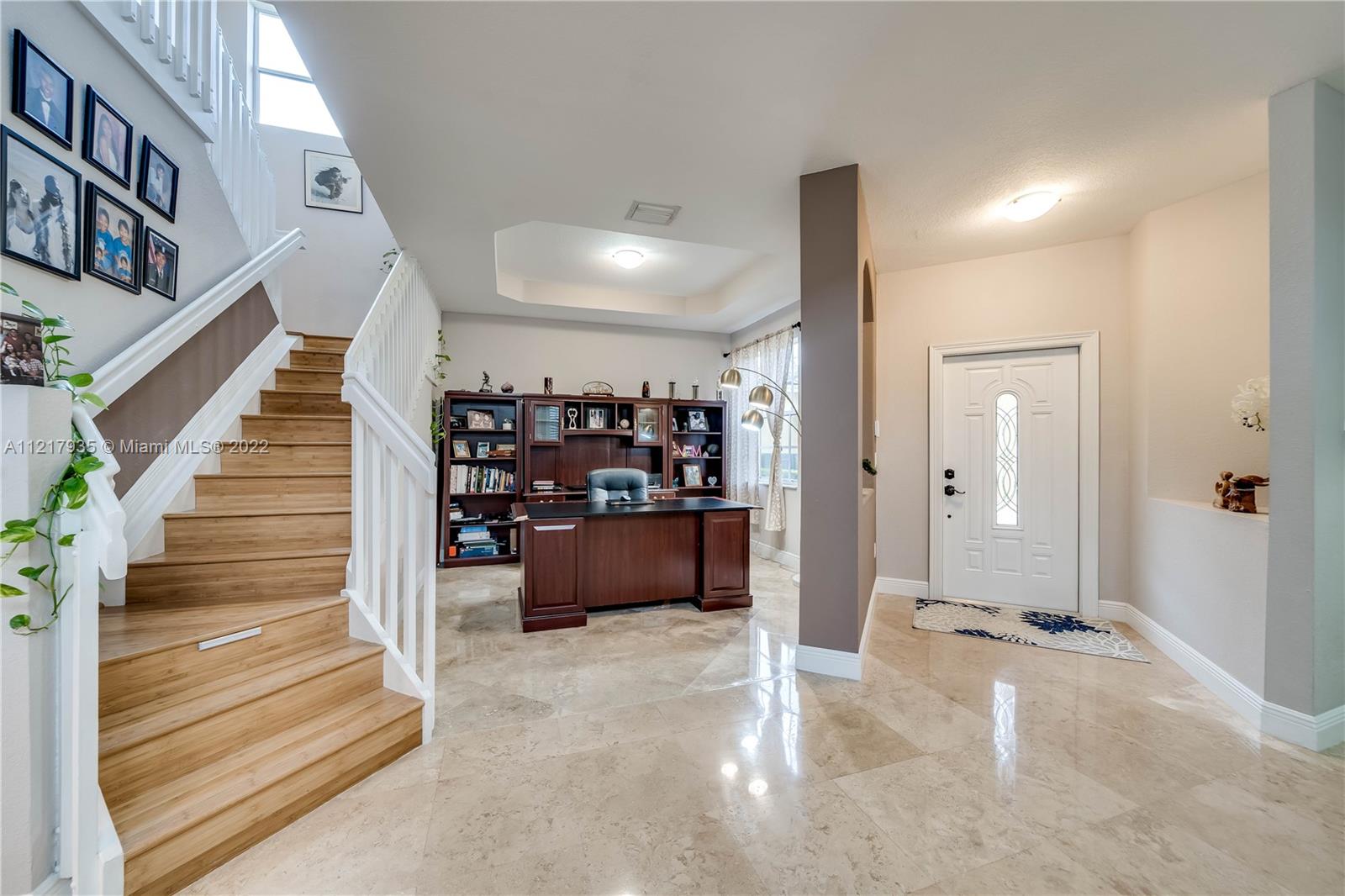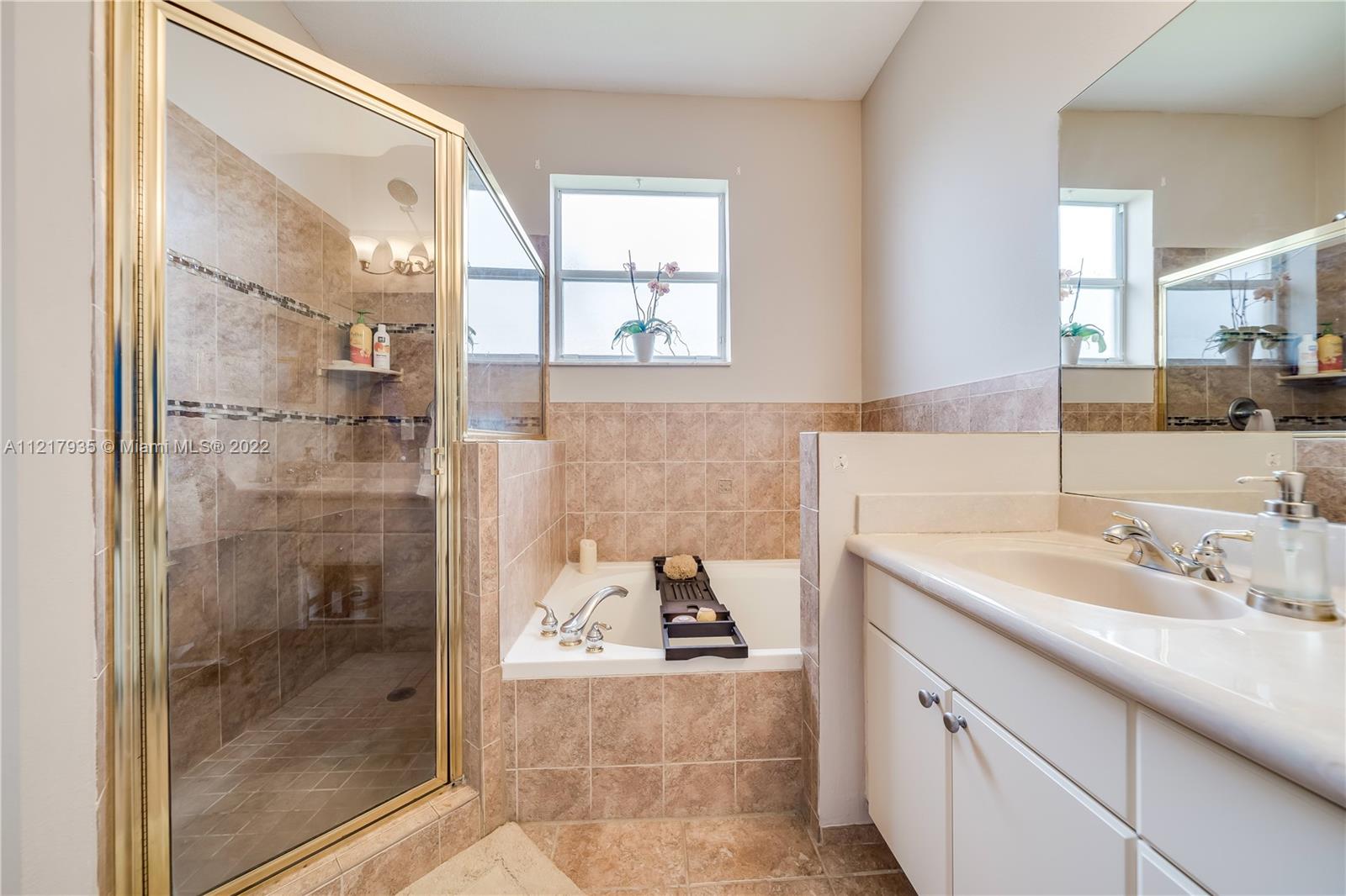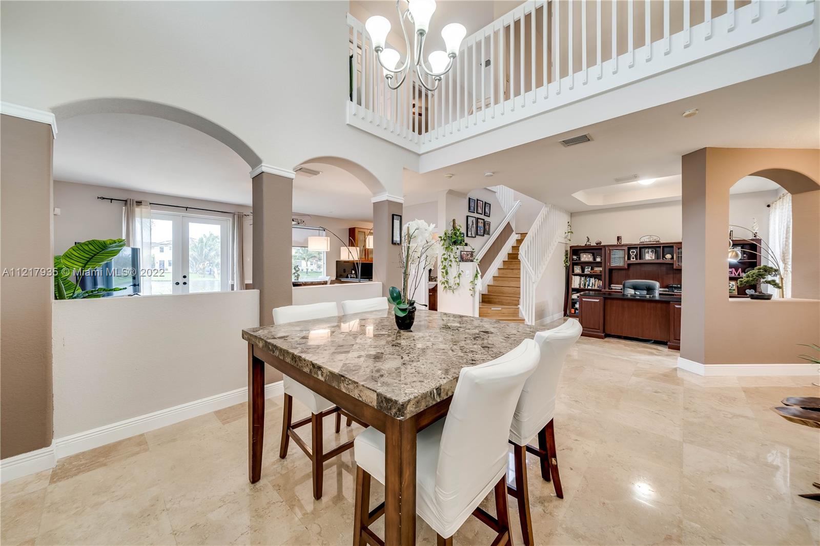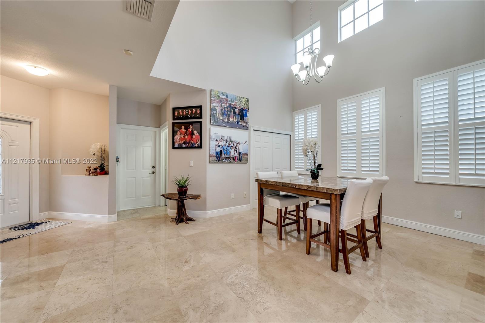 4 bed / 2.5 Home in Immaculate condition. Lots of upgrades and pride of ownership is shown. Amazing view of the lake and sunsets. The home features marble floors thru out in great condition and real bamboo wood floors upstairs, Vaulted ceiling with open floor layout and upgraded kitchen. House is located in the very desirable community of Santorini at Vizcaya. This home will not last. Easy to show.