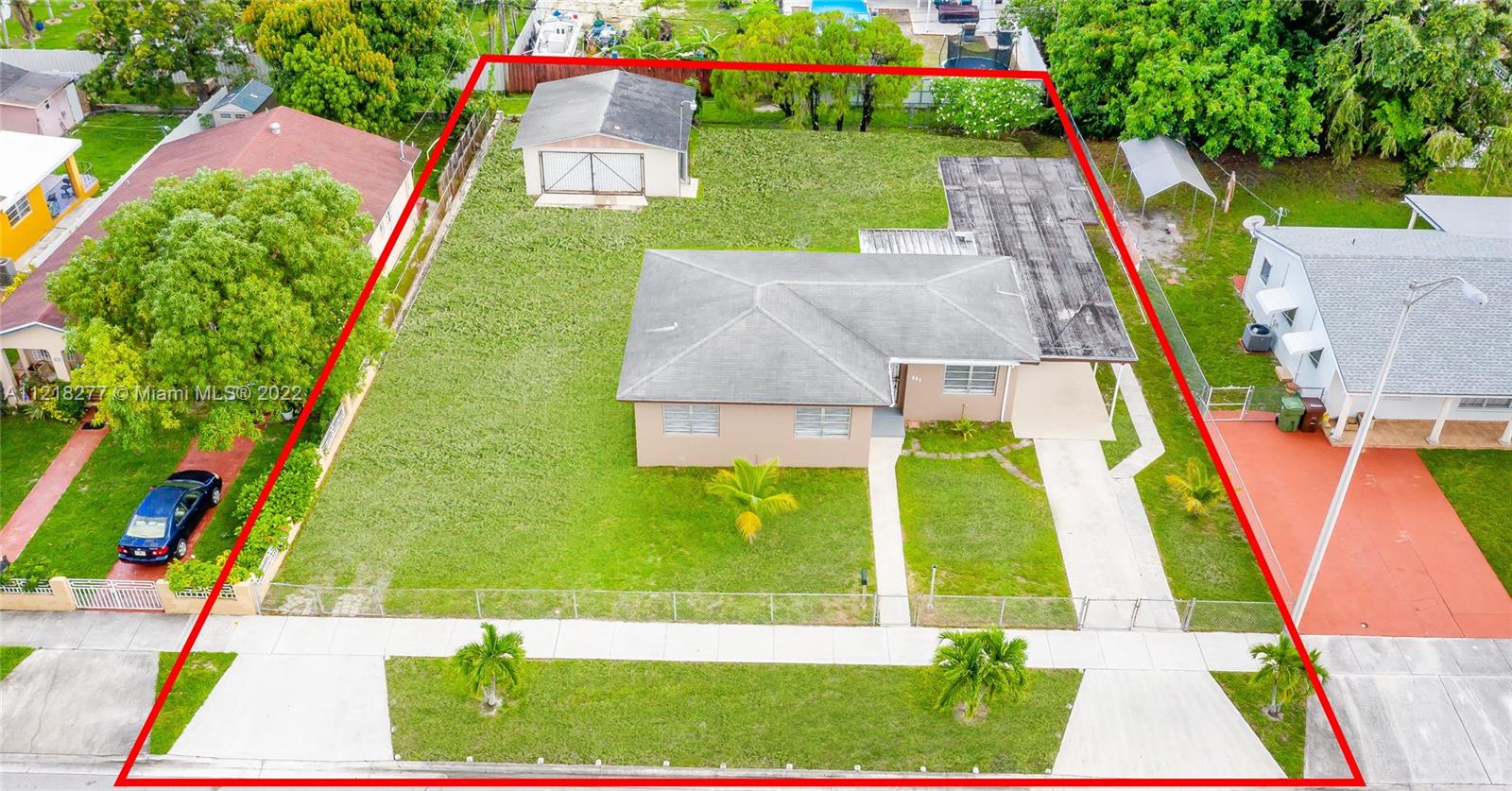 4/Bedroom, 2/Bathroom spacious home on a 13,500 square ft. lot. Main house 3/bed 1/bath with a separate 1/bed 1/bath studio and a detached 600 square ft. workshop/garage. Covered screened patio. Detached laundry room. Covered parking. Fenced yard. Largest lot in the neighborhood. Sensational value, 1st time listed in 45-years. Plenty of room for all cars and boats. The workshop has incredible potential for renovation. Quiet street two blocks from Palm Ave, walk to the shops and restaurants