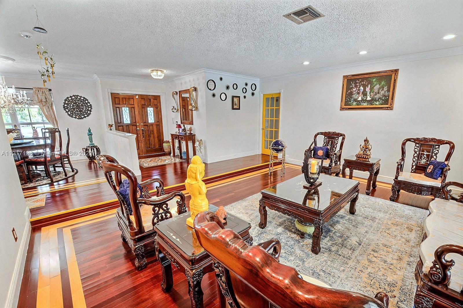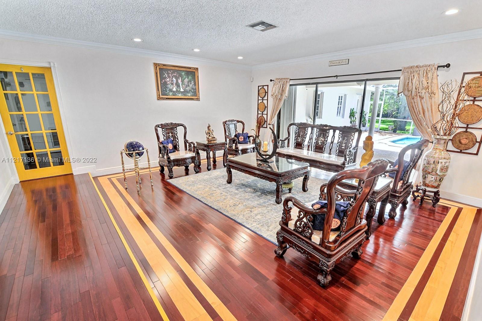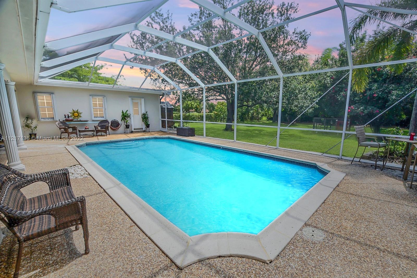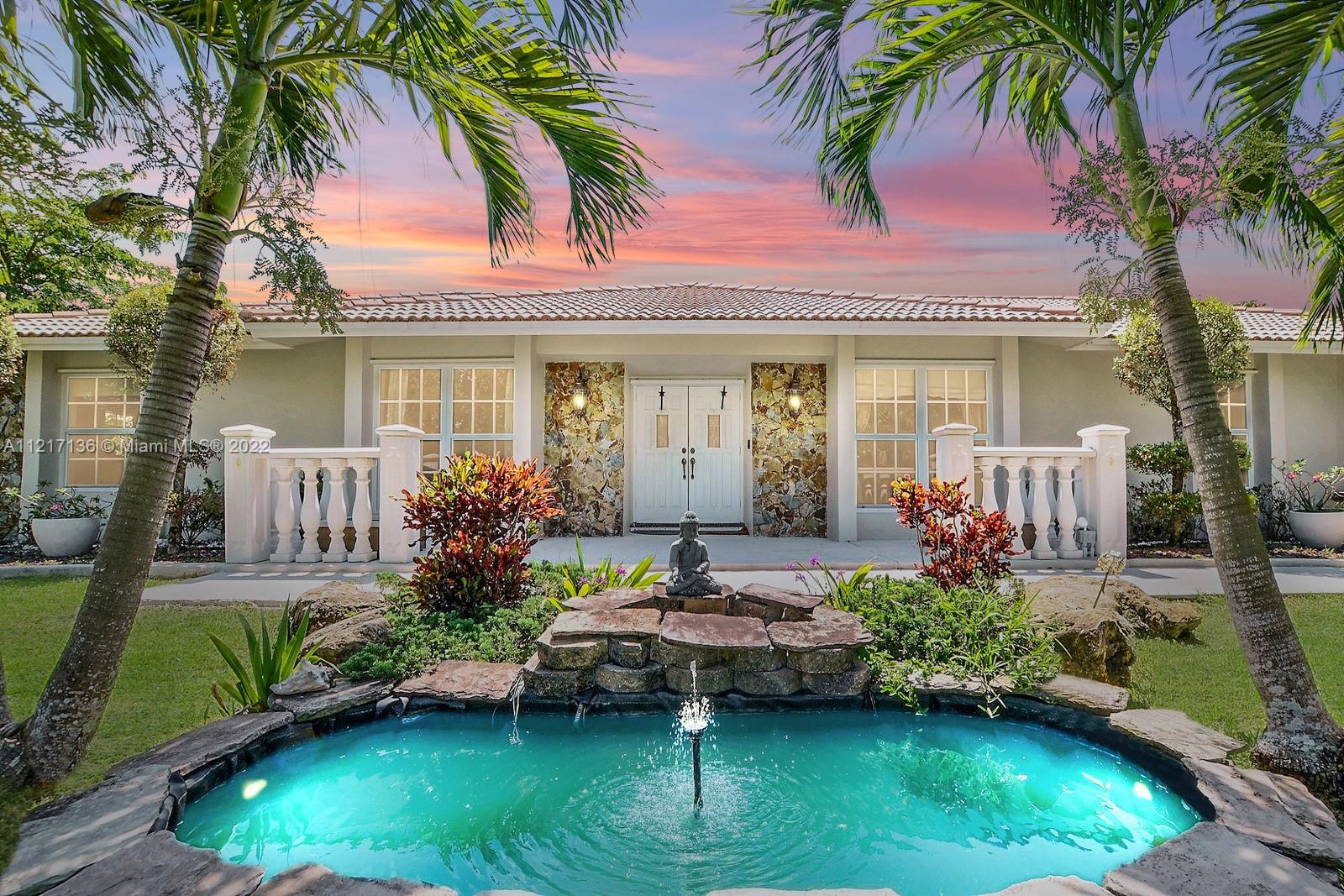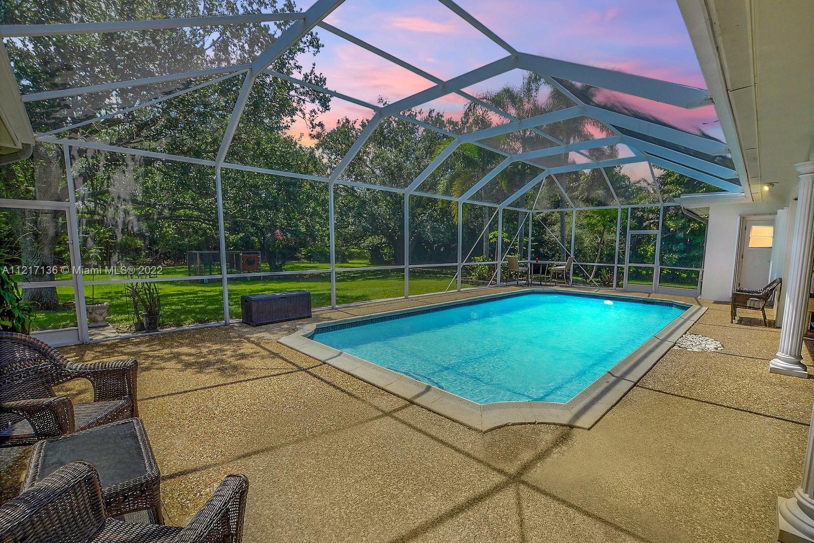 SPECTACULAR 5 BED 3 BATH POOL HOME SET ON SPRAWLING 54,441 SQ FT PREMIUM PARCEL OF LAND W 2,940 SQ FT OF LUXURIOUS LIVING SPACE, PROMINENTLY LOCATED IN THE TOWN OF DAVIE. LONG ELEGANT DRIVEWAY LINED BY MATURE TREES LEADS TO THIS TRULY SPECIAL PROPERTY SHOWCASING DESIGN & ATTENTION TO EVERY DETAIL FROM CHERRY HARDWOOD FLOORS W CUSTOM INLAYS THROUGHOUT TO CROWN MOLDING. GOURMET KITCHEN HAS DOUBLE WALL OVEN, WOOD CABINETS & GRANITE COUNTERS. EACH BATHROOM HAS BEEN REMODELED W UNIQUE SELECTED FINISHES. LARGE PRIMARY SUITE OFFERS POOL VIEWS.PERFECT FOR ENTERTAINING, FLORIDA ROOM W WET BAR OPENS TO THE POOLSIDE COVERED PATIO IS PERFECT FOR OUTDOOR DINING. GORGEOUS PRIVATE GROUNDS ARE ADORNED BY MATURE TREES & LINED BY PRIVACY HEDGES. DREAMY LAUNDRY ROOM, ACCORDION SHUTTERS. 2 CAR GARAGE. NO HOA.