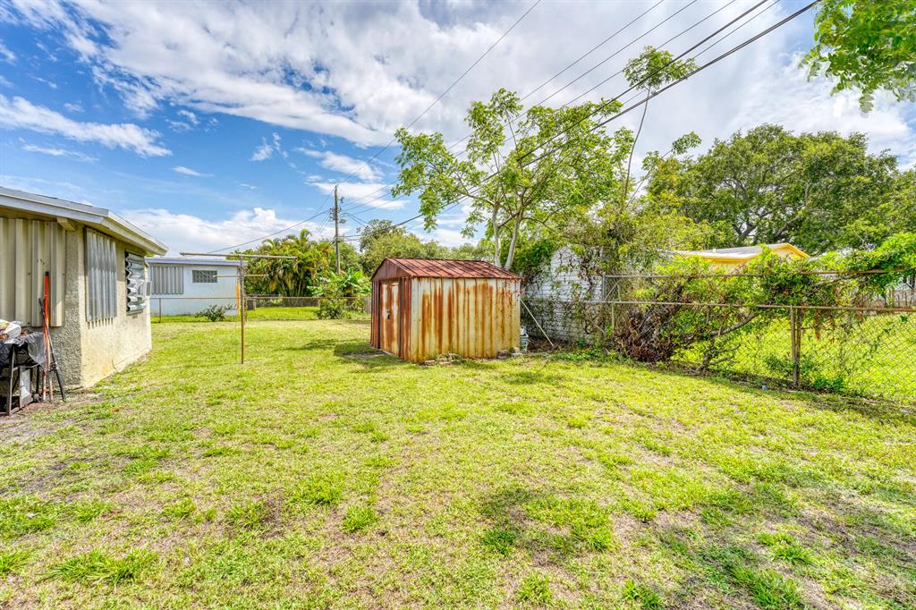 Beautiful 3/2 updated home in Lake Aire Palm View with den, can be used as extra bedroom, office or storage space. The possibilities are endless. All Impact windows and doors except for the den. Kitchen updated in 2014 with granite counter tops. Updated baths and new laminate floors. New roof 2022!!! Utility room with washer. Fenced in big yard with two sheds. Lifetime warranty on impact windows, doors and bathroom upgrades included in the sale. No HOA! Great location close to schools, parks, shopping, restaurants and I-95. This home is sure to impress!