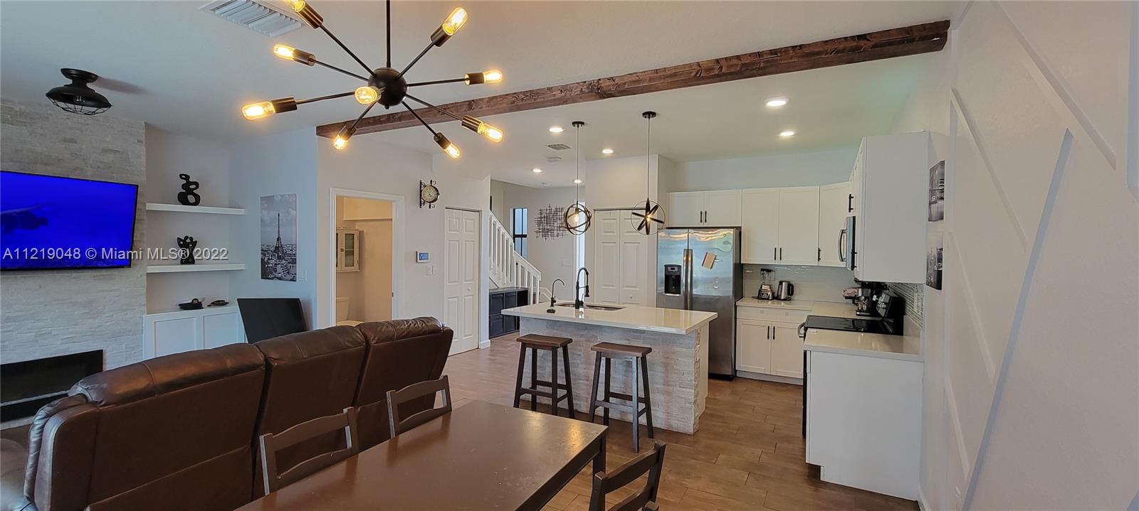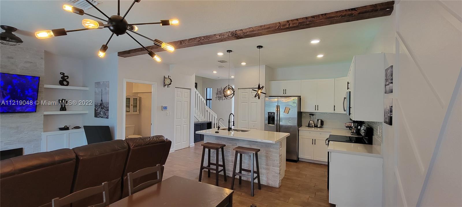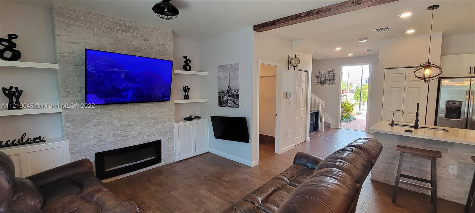 Beautiful Townhome with Smart home features located in the desired resort gated community of Aquabella with two resort pools, two gyms and kids’ waterpark. New construction, just 2.5 years old. Close to highways and great schools. Townhome features, quartz countertops kitchen with stainless steel appliances, upgraded porcelain floors, laminate floors throughout stairway, finished garage, finished backyard with large patio for easy maintenance. Custom marble built in entertainment system, upgraded light fixtures, all upgraded features and appliances stay with new owner. Many other custom stylistic upgrades included, fully landscaped, large lot for community with a park nearly 4 acres in your front yard with plenty of extra parking spaces for your guests in this open concept townhome.