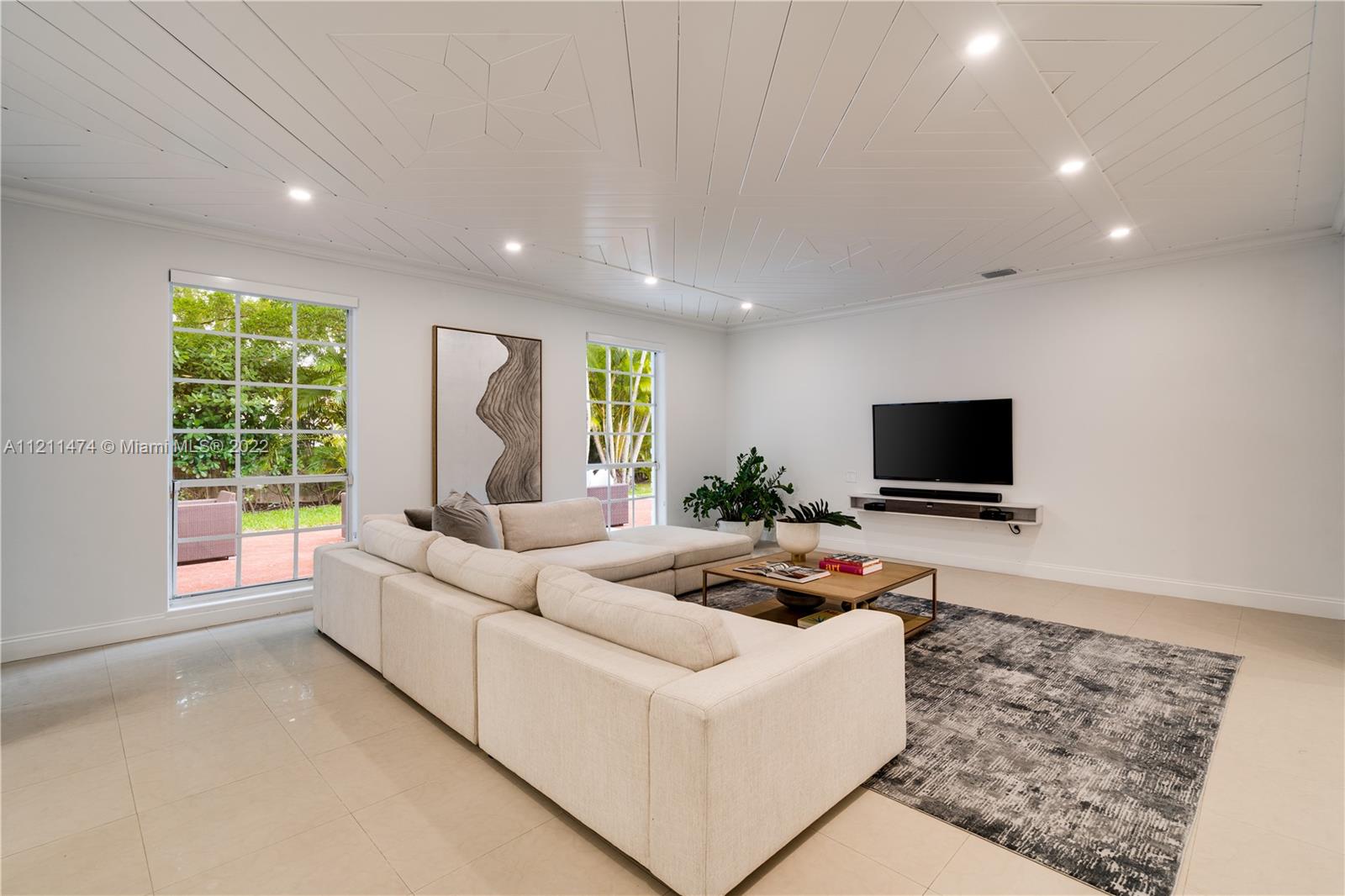 A rare find in the Coral Gables Golden Triangle. An alluring 4 bedroom/ 3.5 bath, with 2854 adj. sq. ft. on a prestigious tree-lined street with a 13,480 sq. ft. lot. Enter into a freshly redone light-filled interior with an open concept, newly remodeled island kitchen, impact windows/doors throughout, porcelain tile & wood floors. Large bedrooms, high ceilings & modernized bathrooms. The family room overlooks a large brick patio with a tropical improved resurfaced pool/spa for entertaining family & friends + an oversized 2 car garage on the back street (Anastasia). Steps to the Biltmore, restaurants, youth center & places of worship.