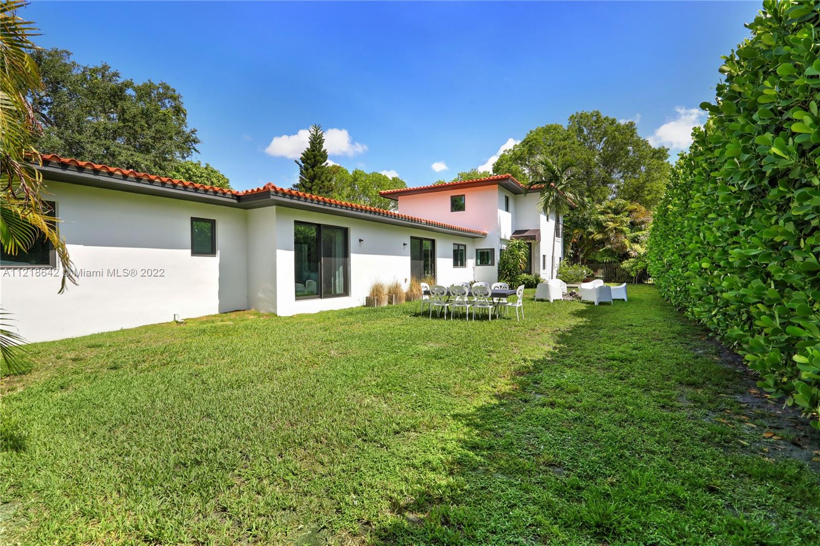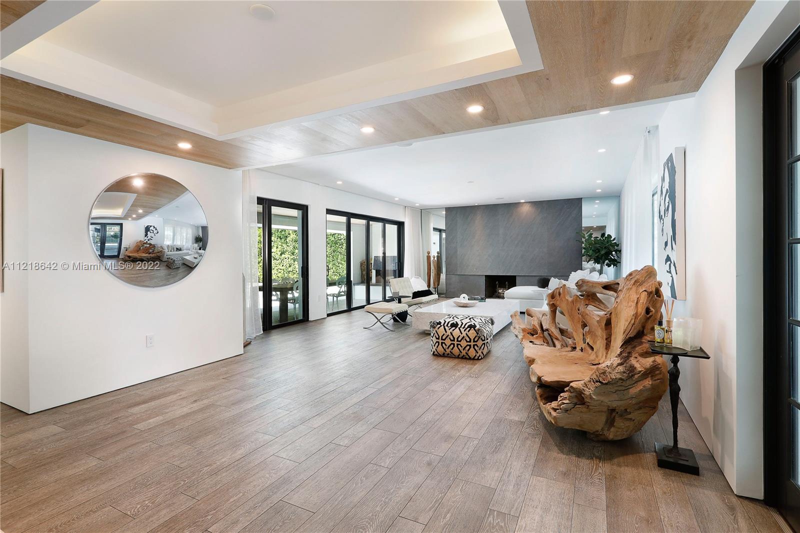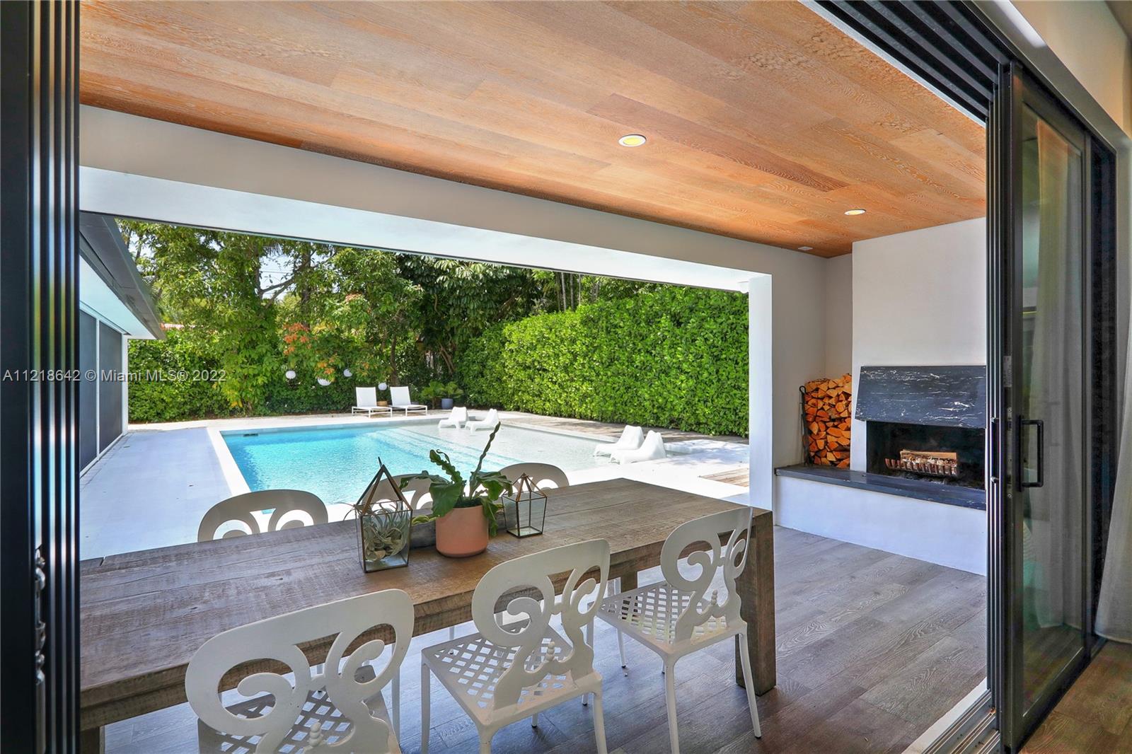 Newly renovated by an award-winning resort & hotel designer! This 5 BR, 3.2 BA home spans 4,149 SF on a walled & gated 16,097 SF lot. Modern finishes abound inside & out incl Porcelanosa flrs, wood ceilings, bright kitchen w/ SubZero/Wolf appliances & massive island open to the spacious fam room, both w/ views of the pool & patio to one side & lush lawn to the other. Stunning frml liv/din rm incl fireplace & sliding doors that open to huge exterior liv space w/ fireplace & automatic roll-down mosquito screens for year-round outdr living. The pool incl a shelf for lounging & long swim area. Upstairs the primary suite has 2 balconies, ample closets, & zen BA. There is another primary BR downstairs, + 2 more large BRs & 2.2 beautiful BAs. Too many details to mention, this is a must see!