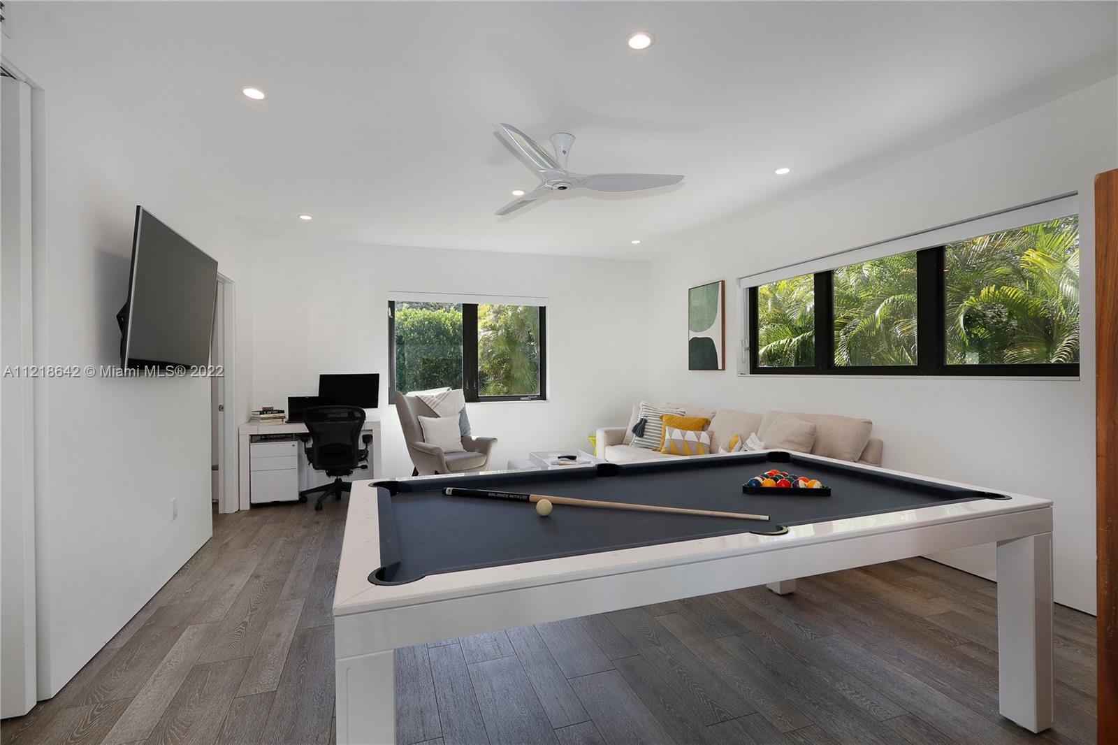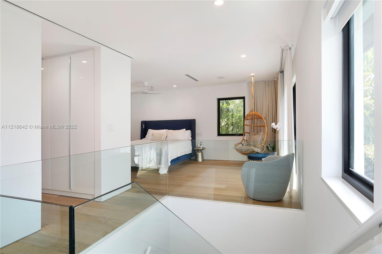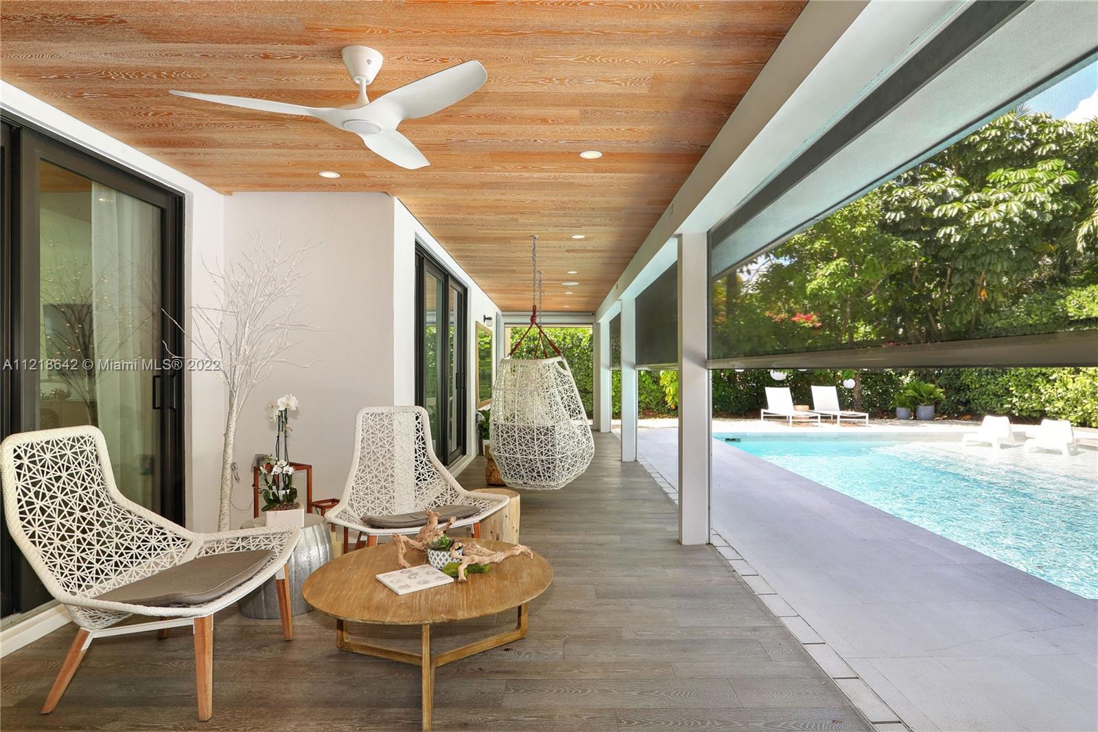 Newly renovated by an award-winning resort & hotel designer! This 5 BR, 3.2 BA home spans 4,149 SF on a walled & gated 16,097 SF lot. Modern finishes abound inside & out incl Porcelanosa flrs, wood ceilings, bright kitchen w/ SubZero/Wolf appliances & massive island open to the spacious fam room, both w/ views of the pool & patio to one side & lush lawn to the other. Stunning frml liv/din rm incl fireplace & sliding doors that open to huge exterior liv space w/ fireplace & automatic roll-down mosquito screens for year-round outdr living. The pool incl a shelf for lounging & long swim area. Upstairs the primary suite has 2 balconies, ample closets, & zen BA. There is another primary BR downstairs, + 2 more large BRs & 2.2 beautiful BAs. Too many details to mention, this is a must see!