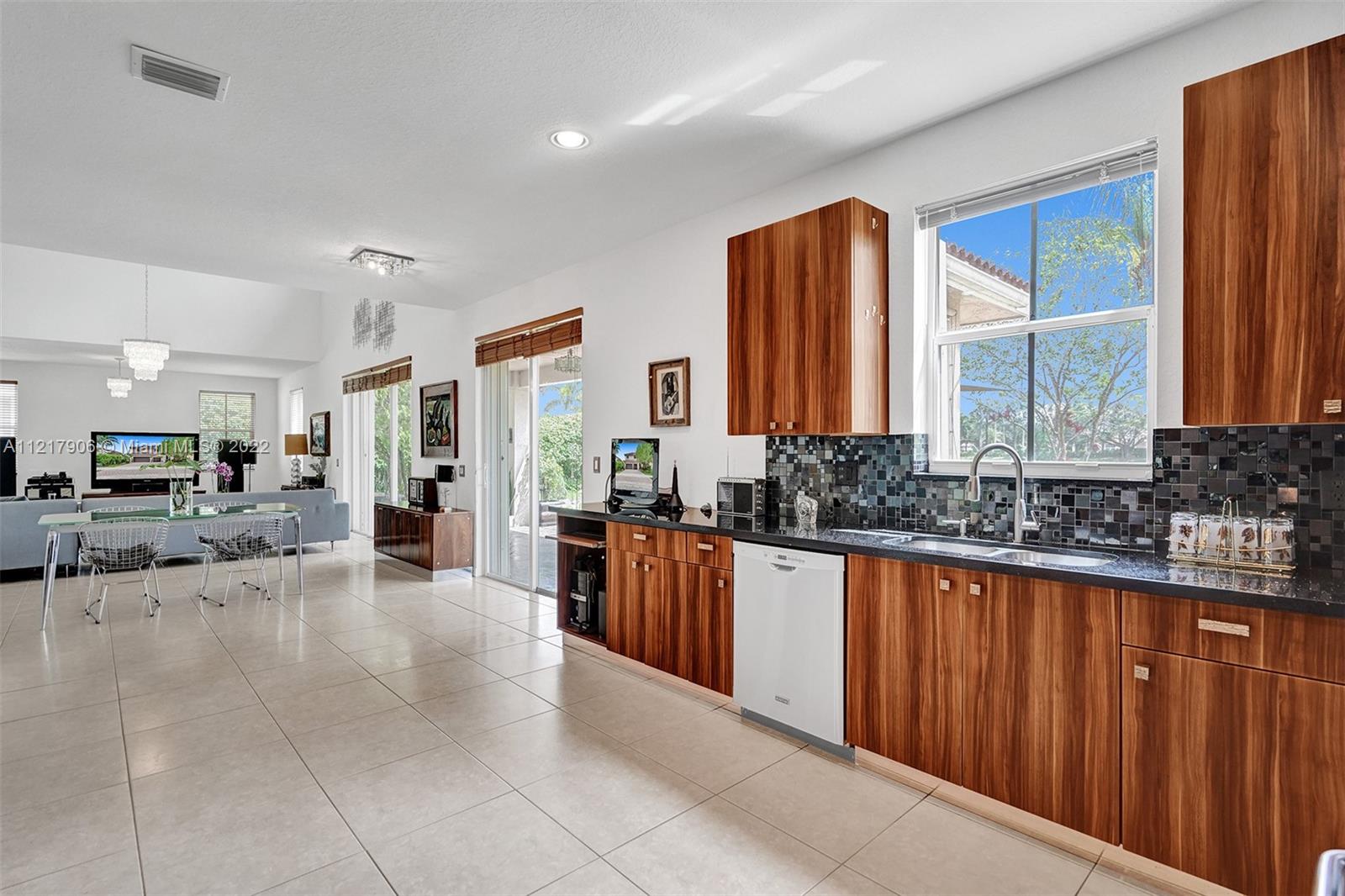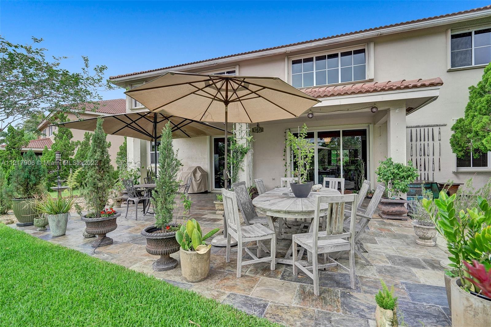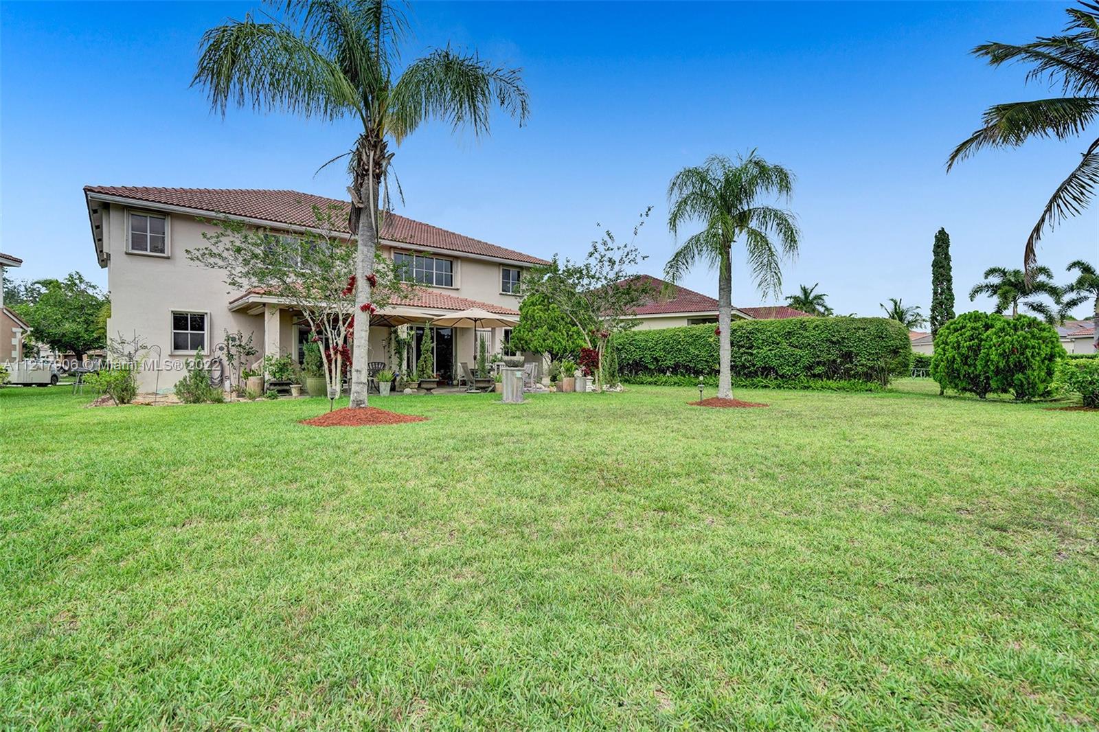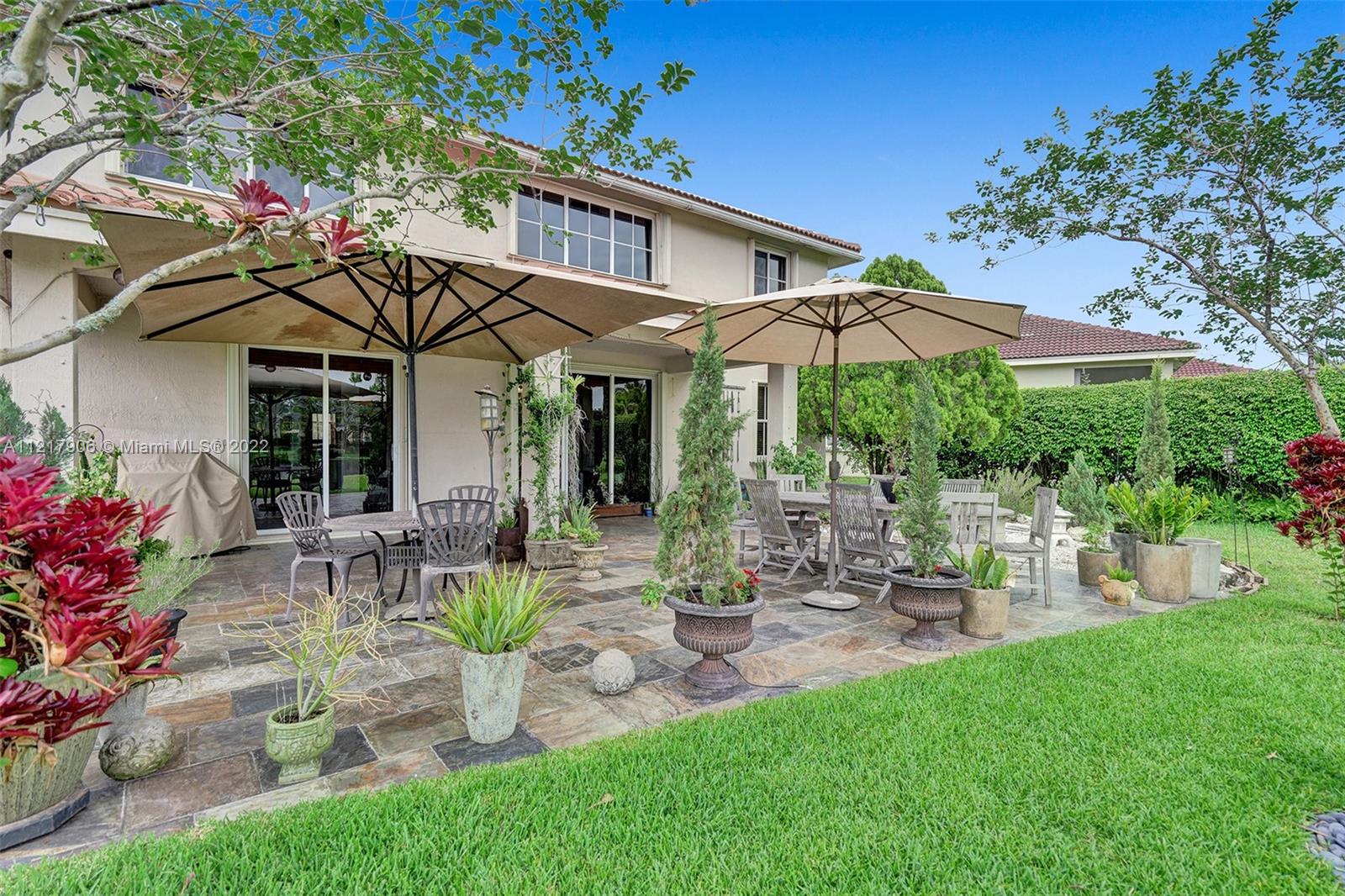Located in the gated community of Savanna. 2-story spacious home that was a model home to an updated sensation on a peaceful cul de sac. Oversized lot w/ serene lake views and Japanese-inspired garden w/ tall trimmed hedges for privacy to relax outdoors or entertain. Large foyer entry w/ formal dining, family room, and renovated bathroom. A spectacular kitchen w/ SS appliances, granite countertops, and backsplash. A 2nd story corridor leads to a wood-floor staircase w/ modern railings that overlooks the grand family room. 19ft ceilings and abundant windows provide natural lighting. 4 spacious bedrooms on 2nd floor, each w/ wood floors and 2 full bathrooms on the 2nd floor. Savanna offers resort-style amenities, 3 pools, mini-golf, roller hockey, soccer and Weston's A-Rated schools.