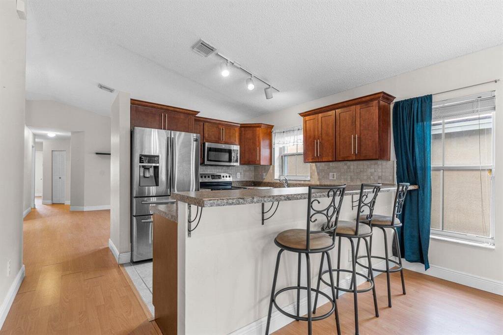 Location, location, location! Don't miss this hidden gem tucked away in the popular community of Sheridan Glen, which is conveniently located off I-75 and Sheridan Street. Situated on a private fenced lot this one-story home features 3 bedrooms, 2 bathrooms, and a 1 car garage. A NEW roof was installed in 2020, a NEW AC was installed in 2021, accordion hurricane shutters and a hot tub have been installed as well. Upon entering you'll be greeted by vaulted ceilings, an open floorplan. along with laminate and tile flooring throughout. The quaint living room and dining area are open to one another and flow seamlessly into the kitchen, which overlooks the family room.