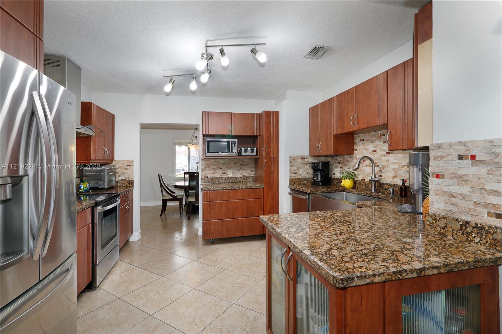 Enjoy epic family gatherings under your covered backyard terrace overlooking the peaceful canal waters. This 4 bedroom, 3 bath home plus office is conveniently located near everything you need – supermarkets, schools, restaurants, shops, and the Palmetto Expressway! Interior features include a triple split floor plan, granite and stainless-steel kitchen, Master Bedroom with his/her closets, updated bathrooms, new A/C (2022), and new shingle roof (2021). The home has a one-car garage, hurricane shutters for all window and doors, pavers on the front and back porches, a side yard for RV or boat parking, and a large shed. The community is connected to the same power grid as Palmetto General Hospital.