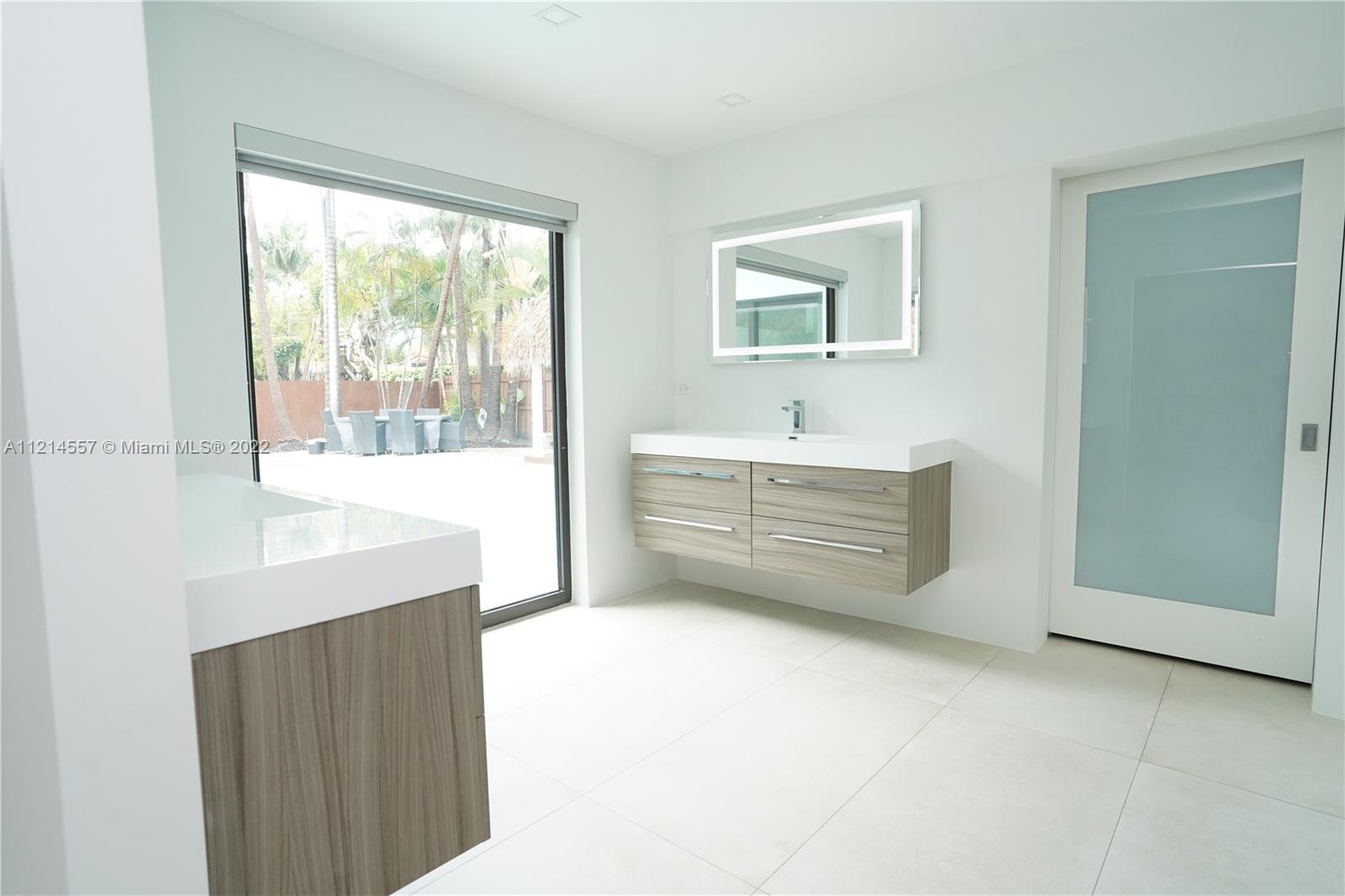 Enjoy your tropical lifestyle in this luxurious, turnkey 4 Bd/3 Bath, 2 car garage home! Contemporarily designed and situated 1 block from the Intracoastal in the heart of Hollywood Lakes, this home has been completely remodeled, featuring Italian porcelain flooring, Italian kitchen cabinetry, high end appliances, impact windows and doors, gas stove, walk in closet and so much more. Your backyard oasis highlighting a pool, mature palm trees and tiki hut will lend itself to great entertainment as well as a quiet retreat while you enjoy the tropical breezes. Upgrades include recently updated electrical wiring, partially new plumbing, 2 tankless gas water heaters, recently resurfaced epoxy flooring inside the garage, extensive attic insulation and a volcanic rock wall at the main entrance.