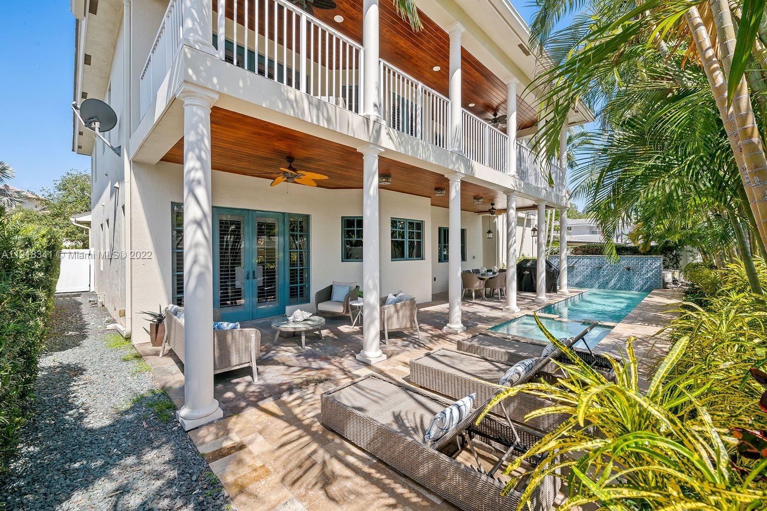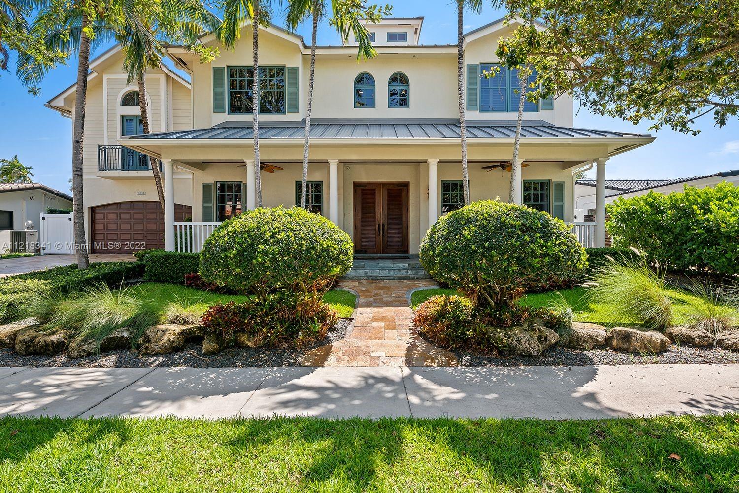 Prepare to be stunned as you walk into this custom built Key West Mediterranean in the prestigious neighborhood of Harbour Inlet, one of the most exclusive neighborhoods of east Fort Lauderdale. As you walk into the home you are welcomed by a beautiful foyer with a grand staircase with custom rod iron railing. Perfect for entertaining, the home also has a wet bar that introduces you to the open concept living room and kitchen complete with a built in breakfast nook. All bedrooms have ensuite bathrooms. The tranquil backyard is lined with palm trees and is complete with a beautiful pool/spa as well as a paved seating area. New aluminum metal roof with a 40 year warranty, 5 AC units with 5 Zones installed in 2021, a brand new fence, 2 laundry rooms, and a Generator (45 kw Natural Gas).