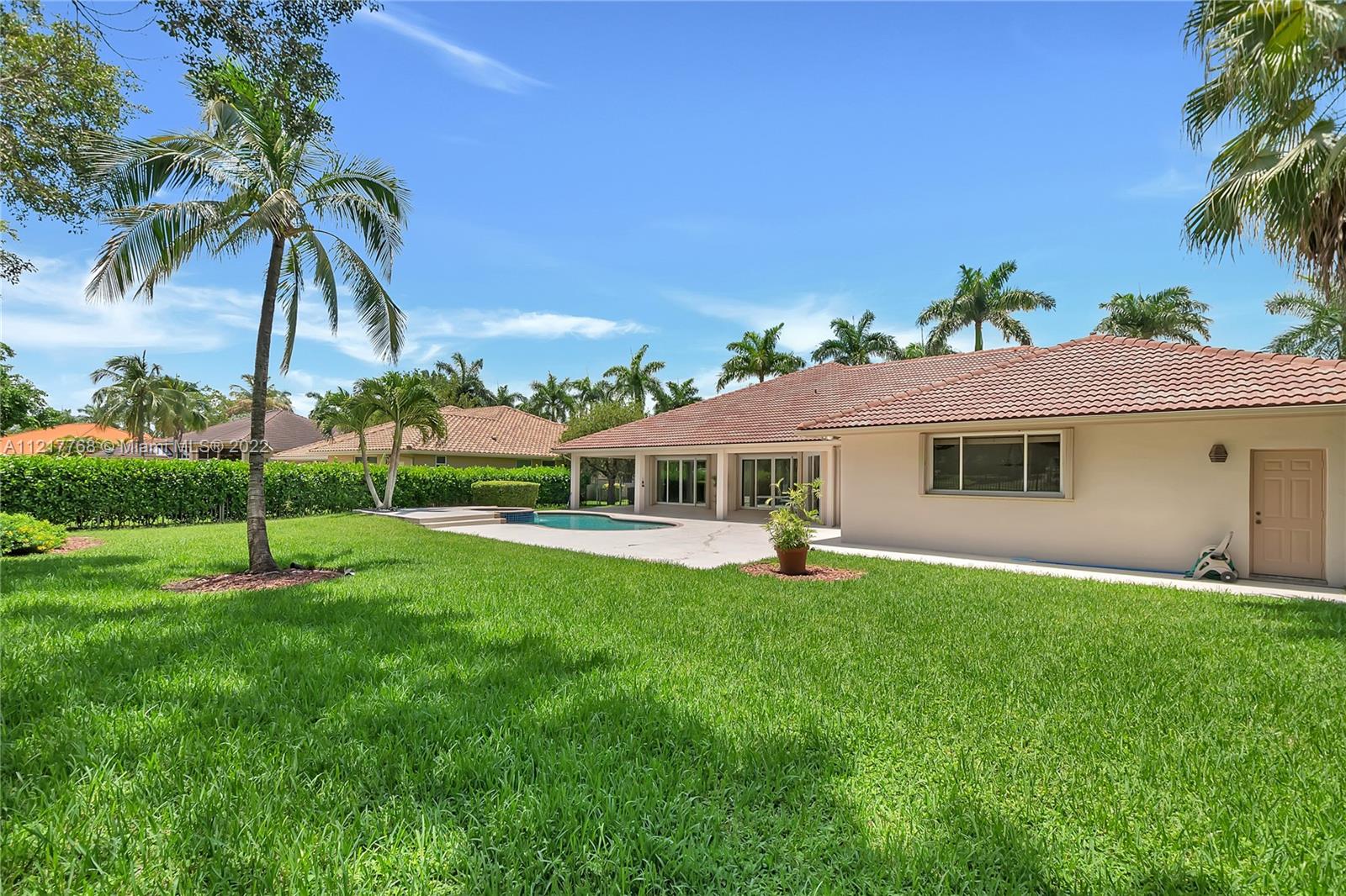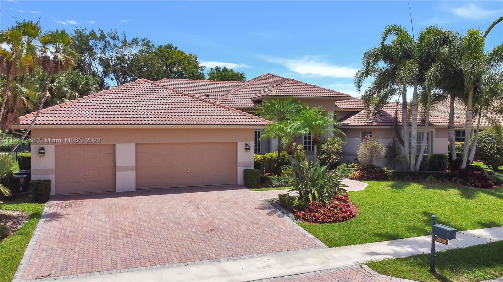 Remarkable one-story home sitting on GOLF VIEW in Weston Hills Country Club. ROOF is 2018** This home has 5 full bedrooms PLUS a bonus room!! Open Floorplan, 14 ft. high ceilings, and lots of windows invite the natural light indoors. Golf View from the main area and Master bedroom. Bathrooms have been recently renovated. Master Suite w/sitting room could be office or huge walk-in closet). Marble & Hardwood Floors in main areas. The 6th bedroom has an en-suite Cabana Bath being used as a bonus room. Accordion Shutters on the whole house.