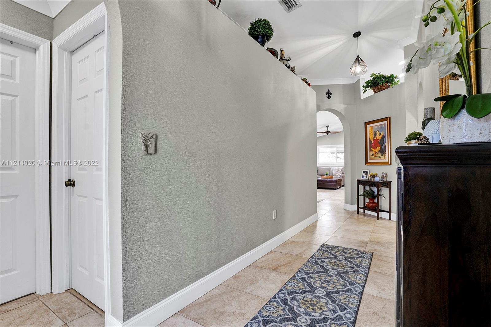 Pride of Ownership in this Turnkey Home! Located in a much desired gated community of Turtle Run at Lakes of Palm Springs. The interior of the home features 3 bedrooms, 2 baths with ceramic tiles throughout; Impact windows and doors. Kitchen includes stainless steel appliances, double oven range, pull-outs on all wooden cabinetry and beautiful granite countertops that complement the eat-in kitchen. A spa experience awaits you in the Master bathroom shower at the end of the day. You can then unwind in a charming enclosed patio with a lush tropical feel perfect for outside dining. Other features include recessed lighting, closet organizers, a pump system for the sprinklers, garage cabinetry, roof tile coating, travertine marble driveway. Close to shopping, dining and Palmetto expressway.