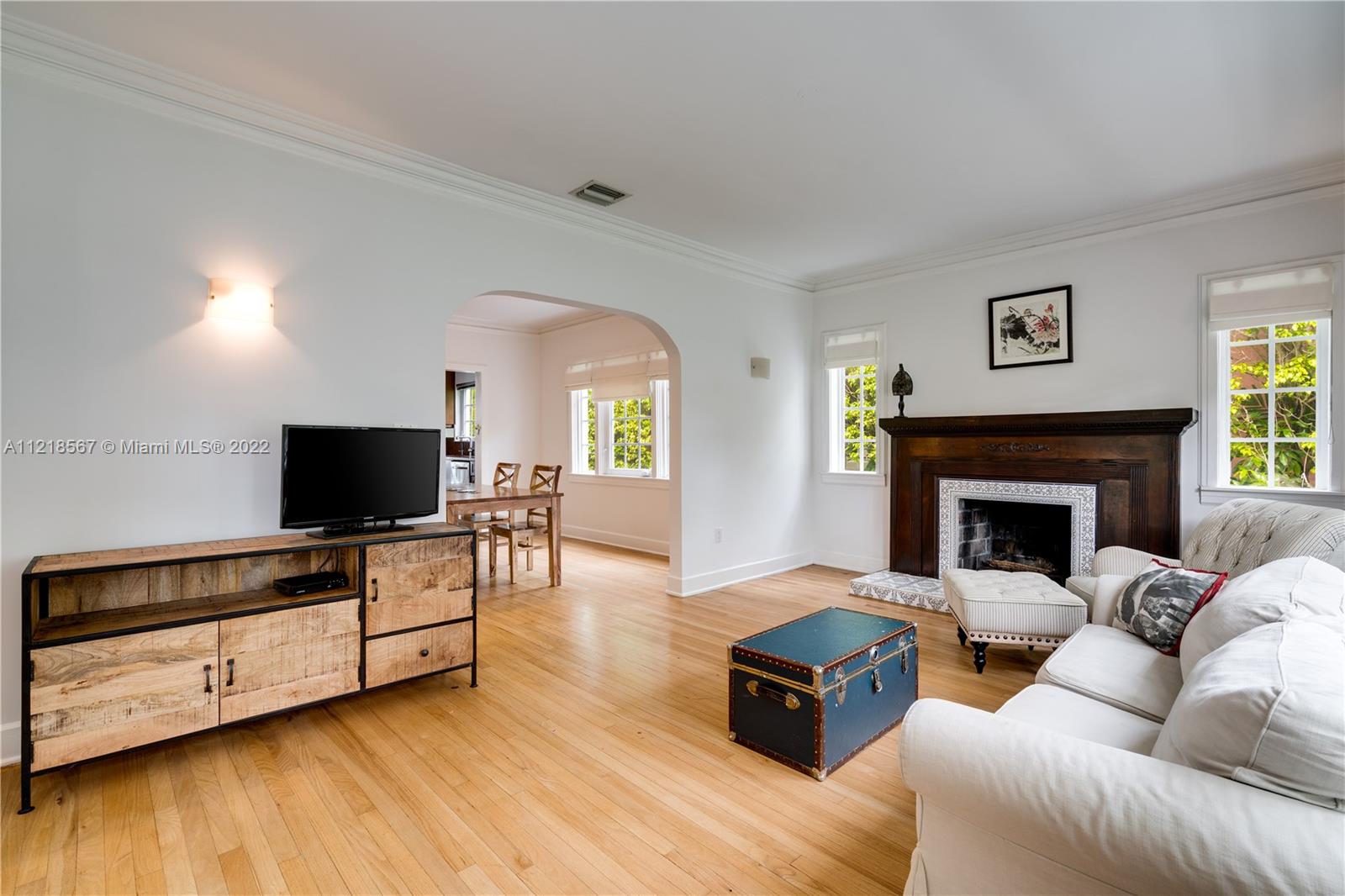 Character and beauty reside on Majorca Avenue. Sunlight pours into this cheerful home, ideally located blocks from all that downtown Coral Gables has to offer: restaurants, shopping, & culture. The property features a 2/2 main house with a detached 1/1 studio apartment. Light Oak floors, fireplace, and arched transitions complement modern enhancements like new A/C, built-in storage, impact windows, and updated kitchen and bathrooms. The generous primary suite features room for a sitting or work area. Chicago brick pavers, deck, and covered terrace make the backyard perfect for intimate al fresco gatherings. Recently painted with new awnings, this Old Spanish charmer will have you at “Hello!” A Very Special Home.
