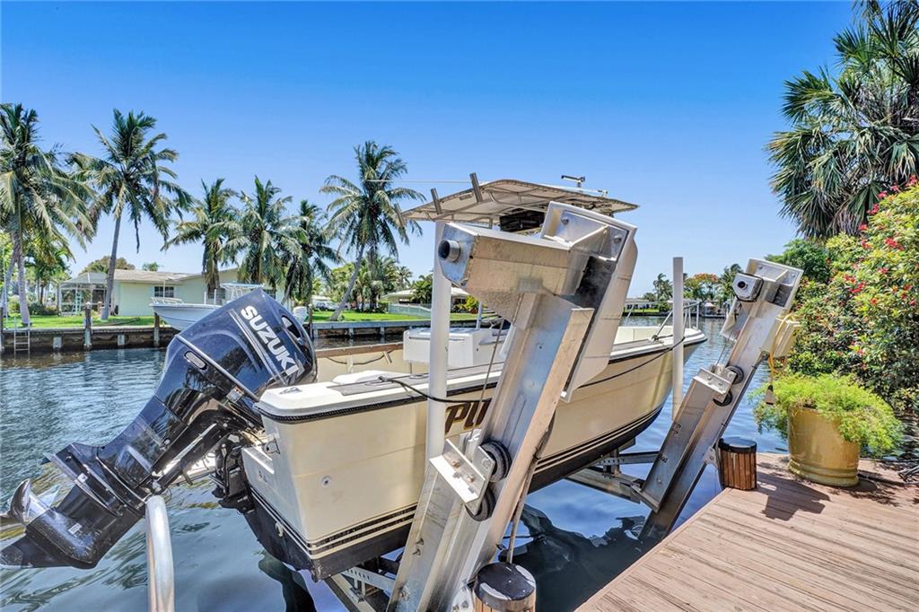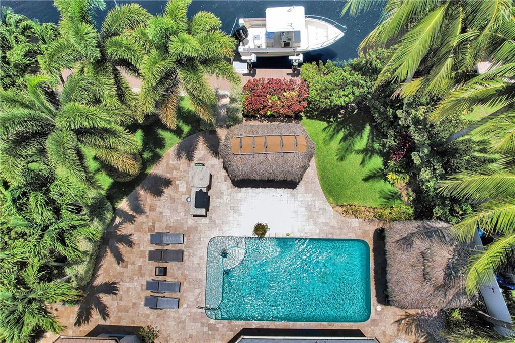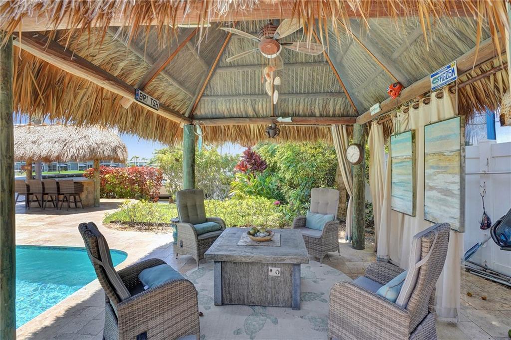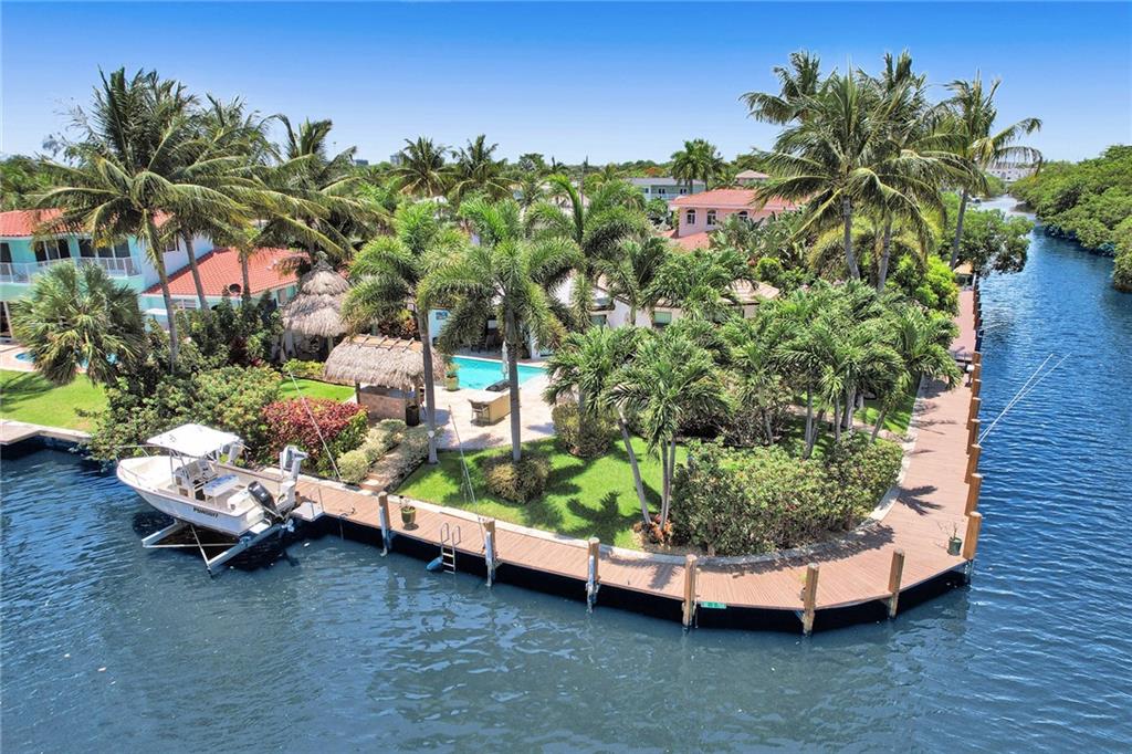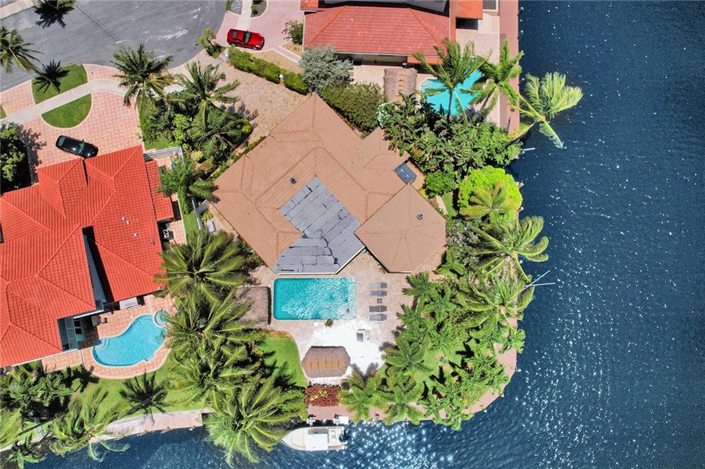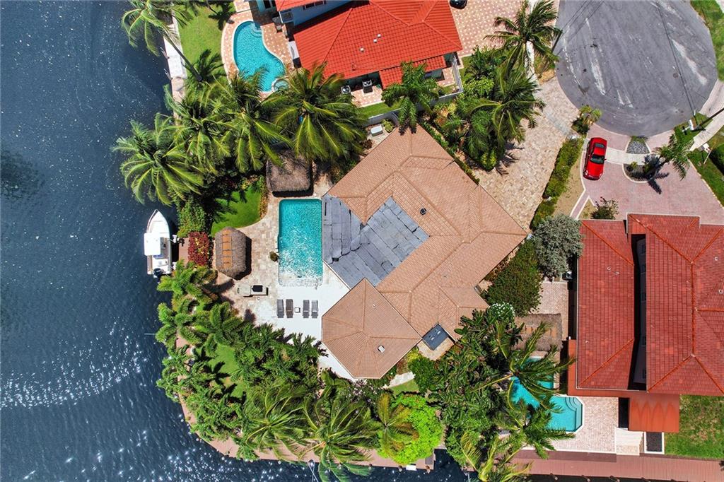 Wow on the Water A Breathtaking 190 foot Point lot w/180ft dock+10,000lb old boat lift. The backyard faces E,NE. There is a constant breeze to enjoy from your backyard. Over 50k in tropical landscaping. Complete privacy! You will find multiple private lounging areas as you explore the property.2 tiki hut fun zones overlooking the newly updated saltwater, heated pool with shallow swim area. Built in gas grill and WHOLE HOME GENERATOR. Travertine all around the exterior.Split&open plan Master suite with 12 ft ceilings, walk in his/hers closets, Updated bathroom,2 car garage, marble and real wood flooring in the bedrooms, Impact Glass throughout, chef's kitchen with Thermador gas cook-top and upgraded appliances,2 wine frig's laundry/espresso bar area off the kitchen.