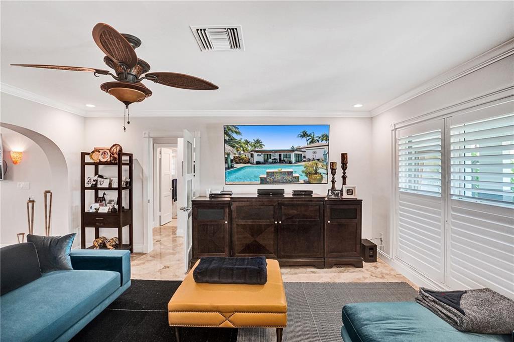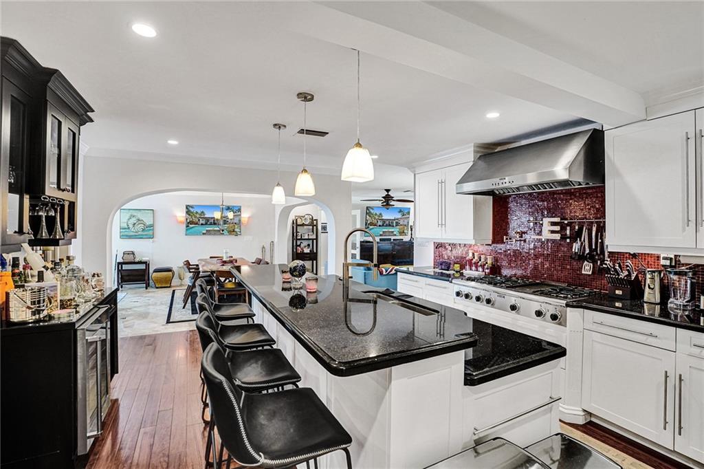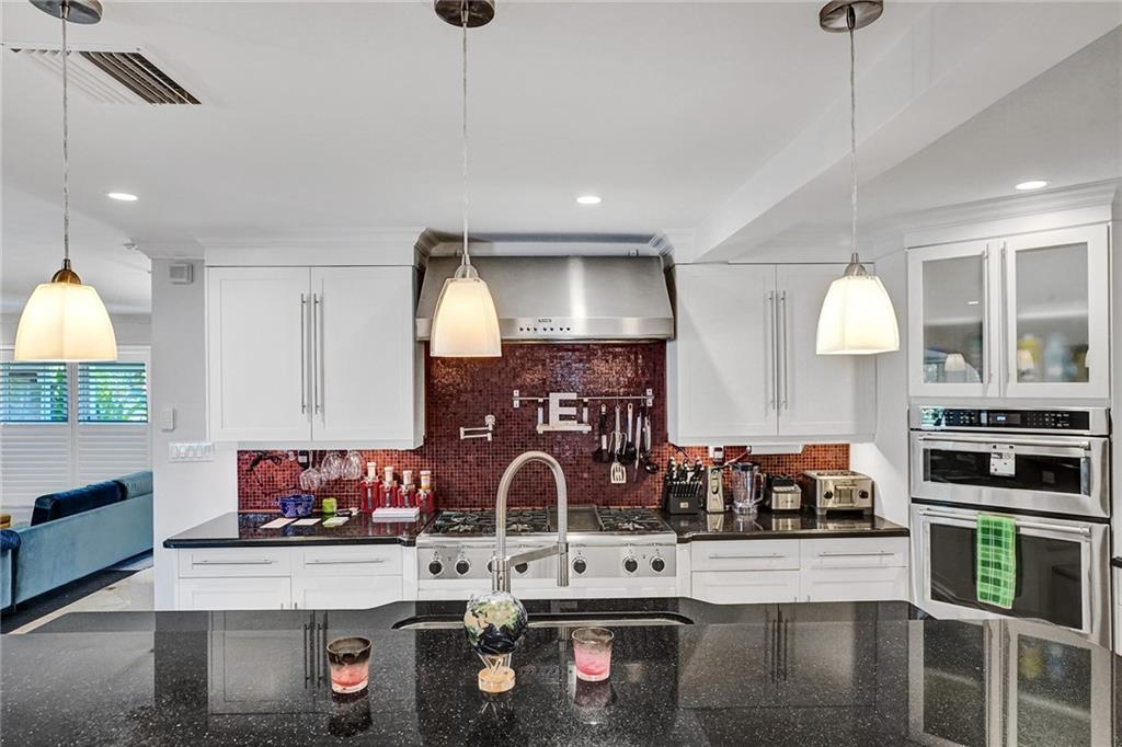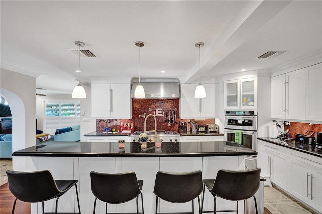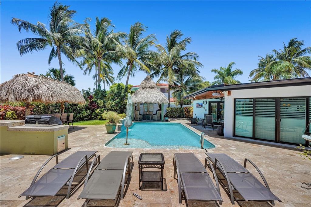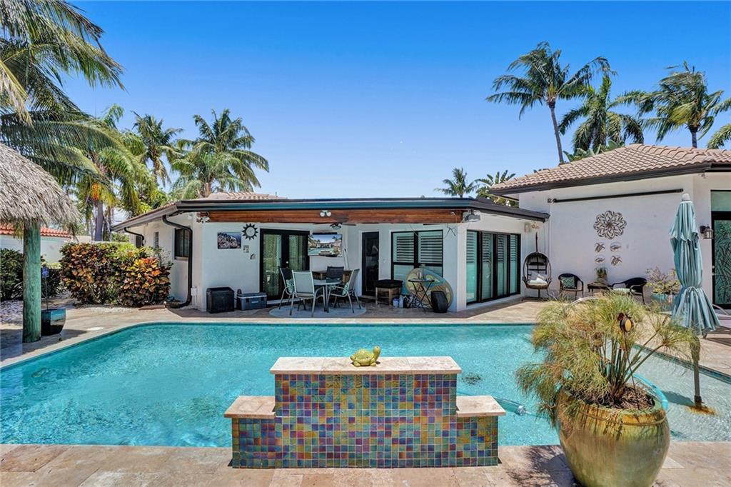 Wow on the Water A Breathtaking 190 foot Point lot w/180ft dock+10,000lb old boat lift. The backyard faces E,NE. There is a constant breeze to enjoy from your backyard. Over 50k in tropical landscaping. Complete privacy! You will find multiple private lounging areas as you explore the property.2 tiki hut fun zones overlooking the newly updated saltwater, heated pool with shallow swim area. Built in gas grill and WHOLE HOME GENERATOR. Travertine all around the exterior.Split&open plan Master suite with 12 ft ceilings, walk in his/hers closets, Updated bathroom,2 car garage, marble and real wood flooring in the bedrooms, Impact Glass throughout, chef's kitchen with Thermador gas cook-top and upgraded appliances,2 wine frig's laundry/espresso bar area off the kitchen.